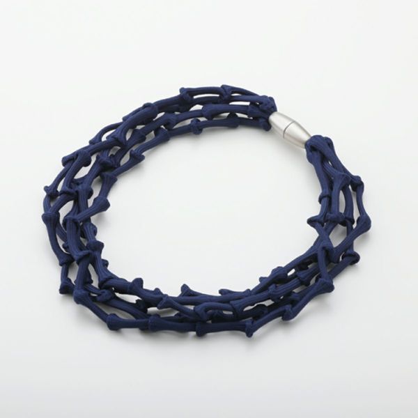 節のある特殊な編み紐を5連にしたネックレスです。紐は中空で驚くほど軽いです。