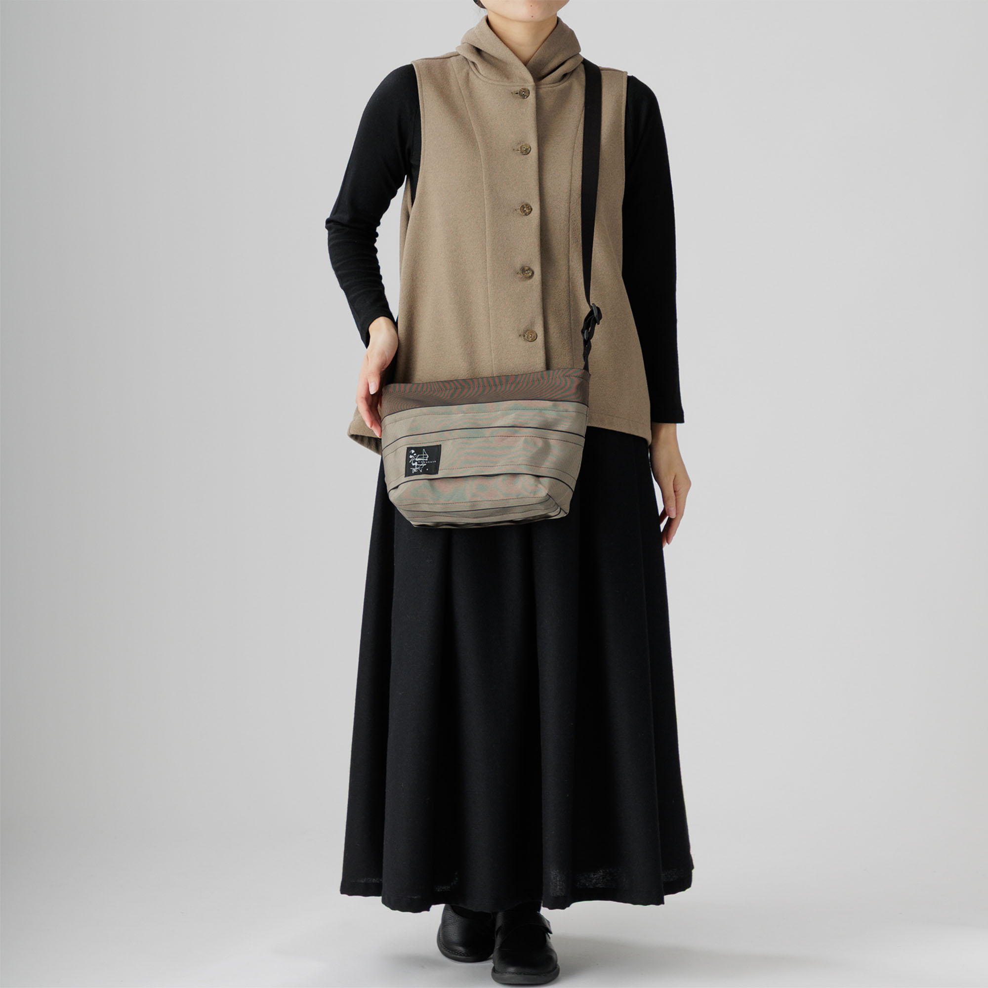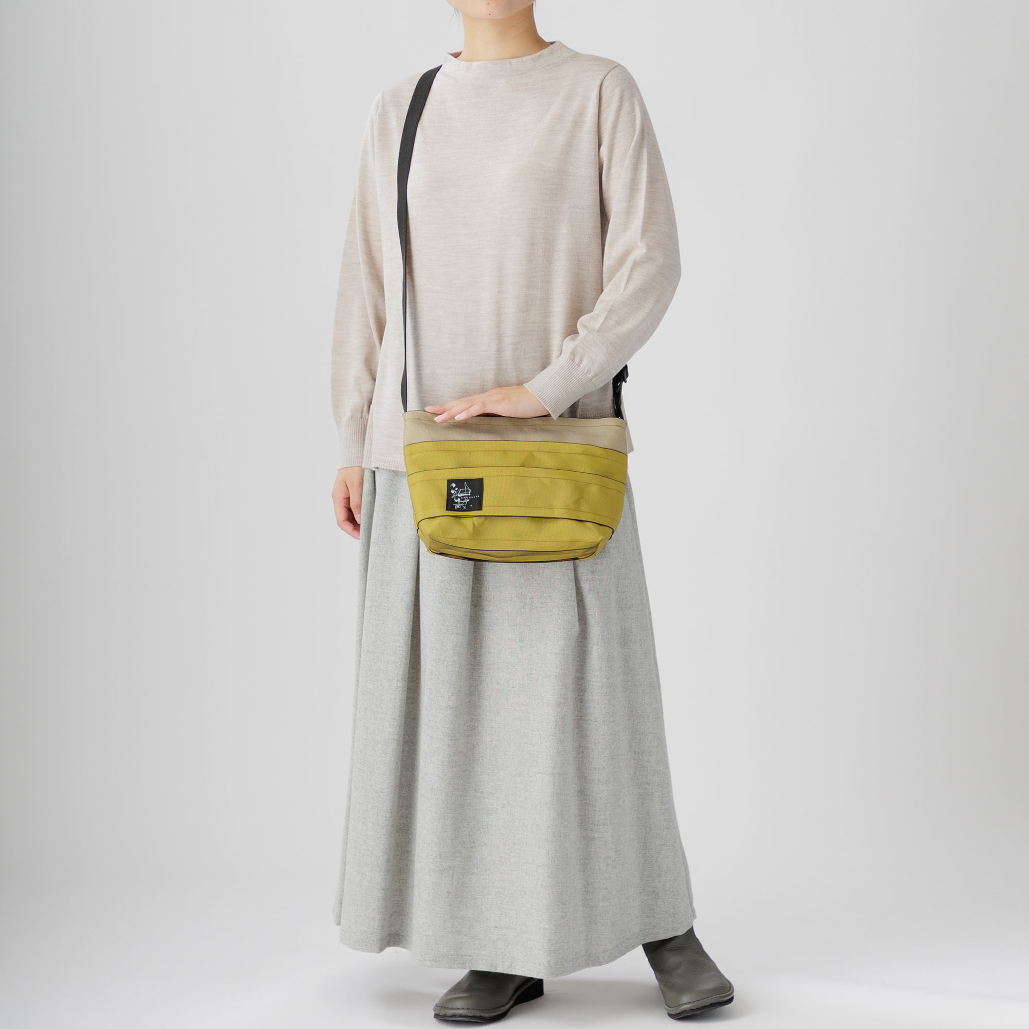 かぐらやバッグは、国内の職人が手作りで生産しております。バッグはランダムにタックをとる関係でひとつひとつサイズが異なりますので、表示の寸法はあくまでも目安のサイズとお考えください。