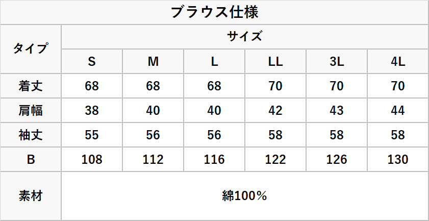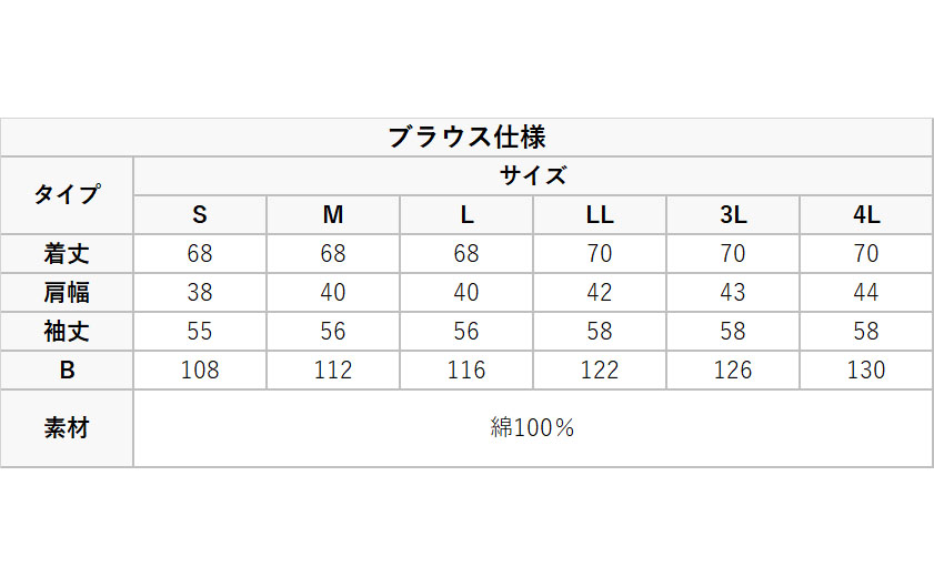 S/M/L/LL/3L/4Lの6タイプをご用意いたしました。
