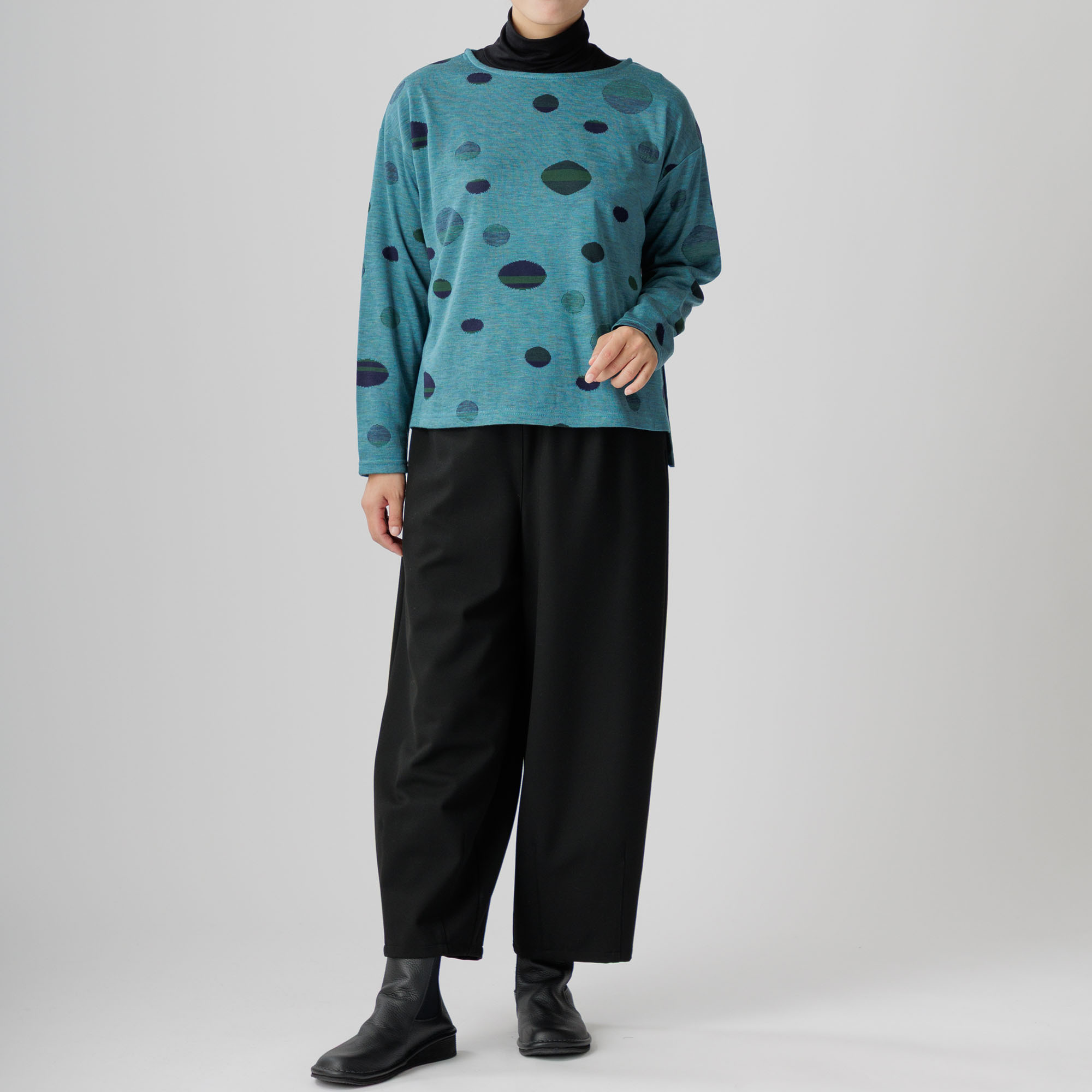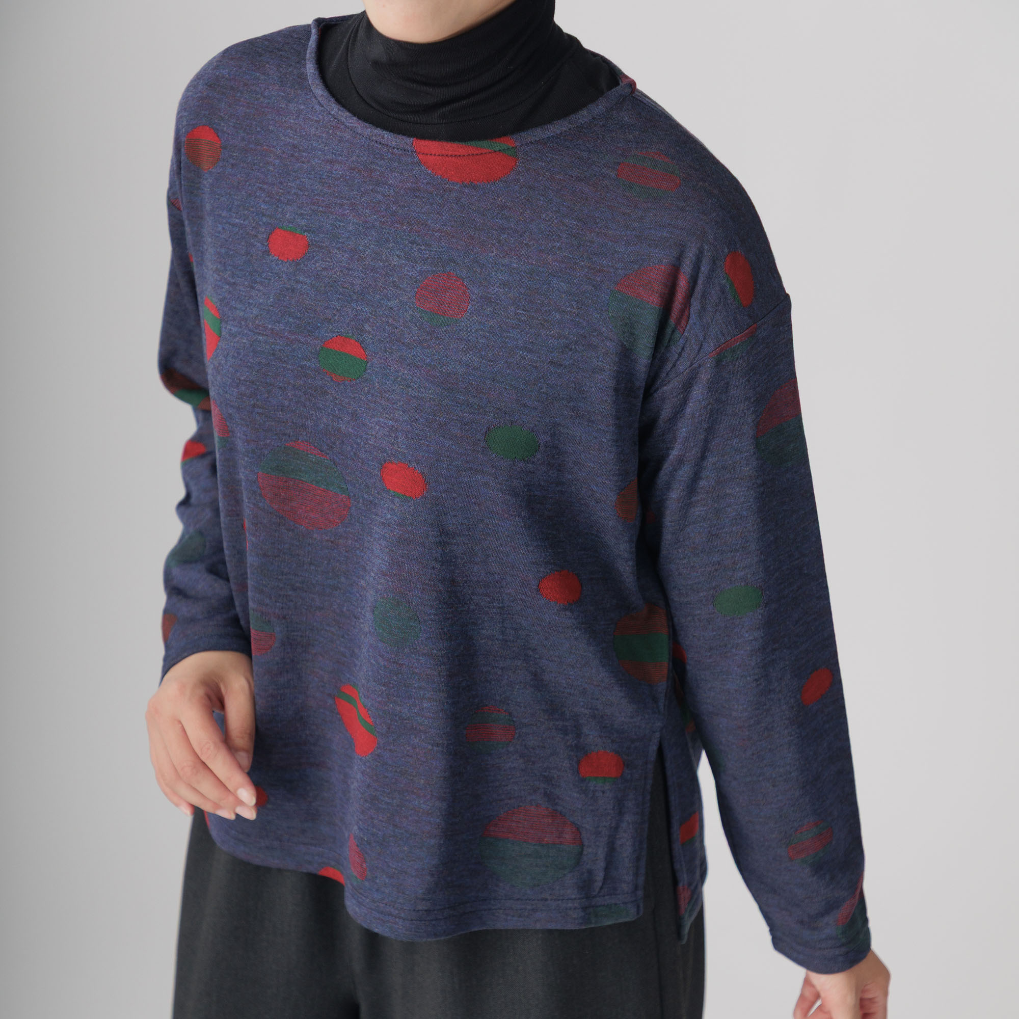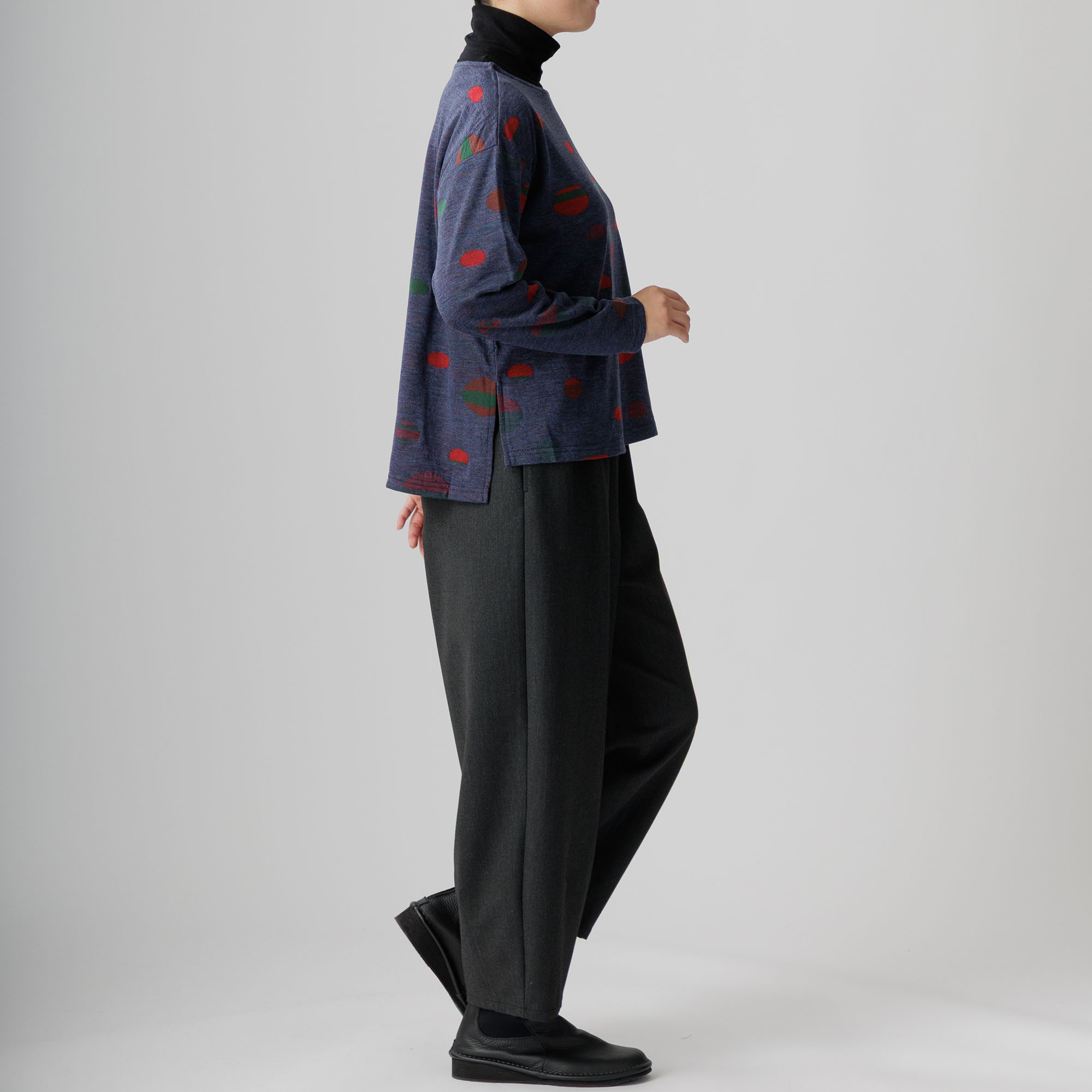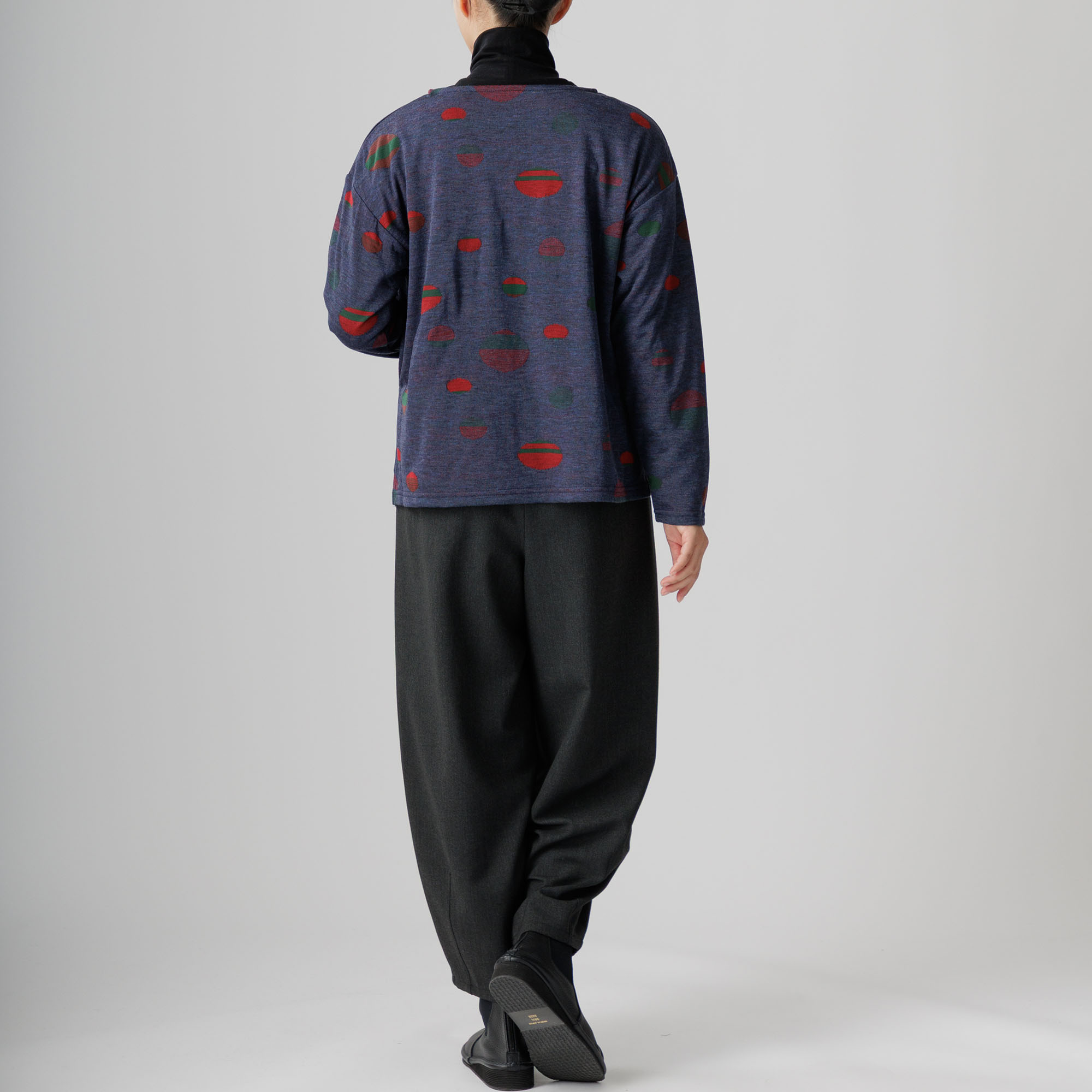 こちらは手の込んだ両面ジャガードで味わい深い色彩を楽しめるニットプルオーバー。