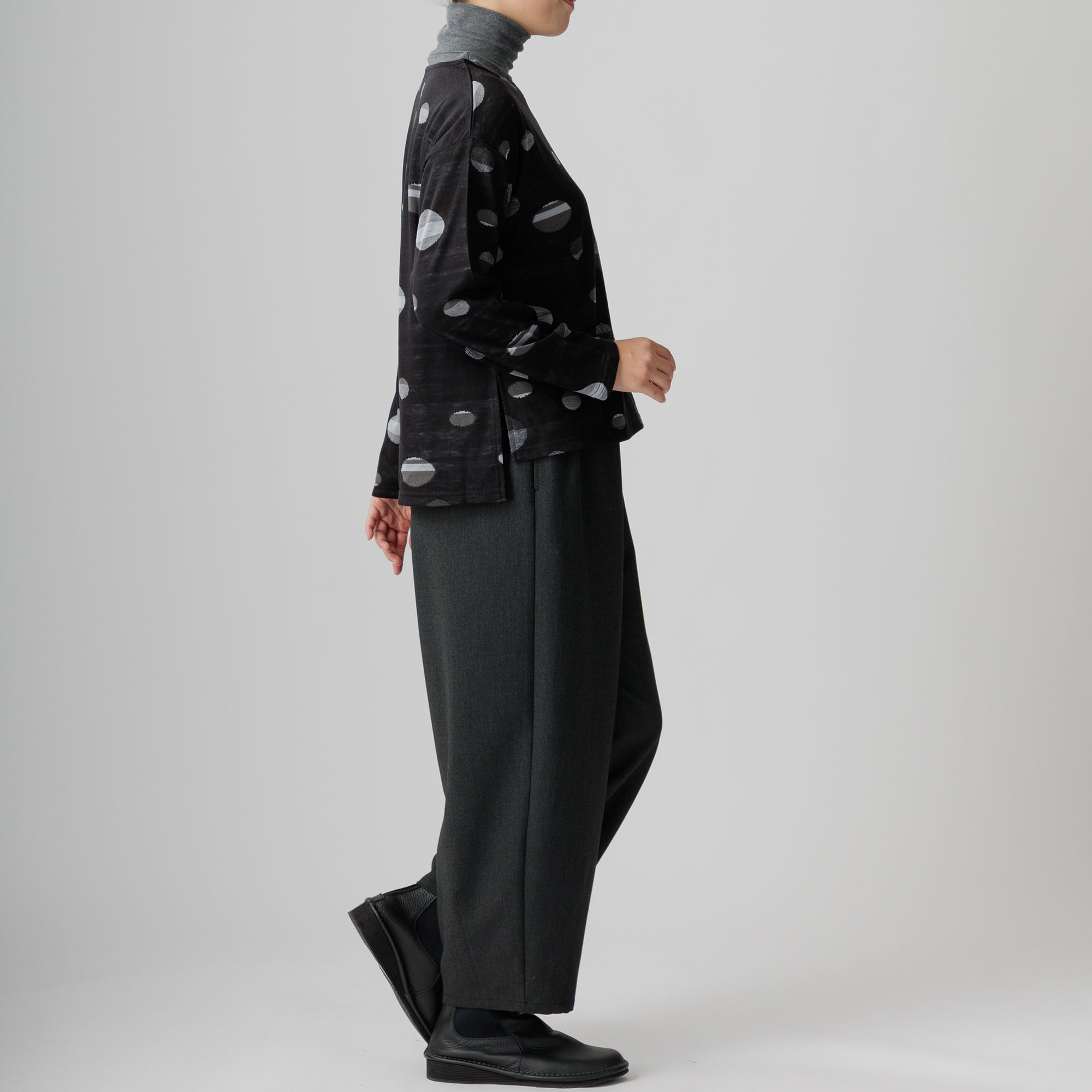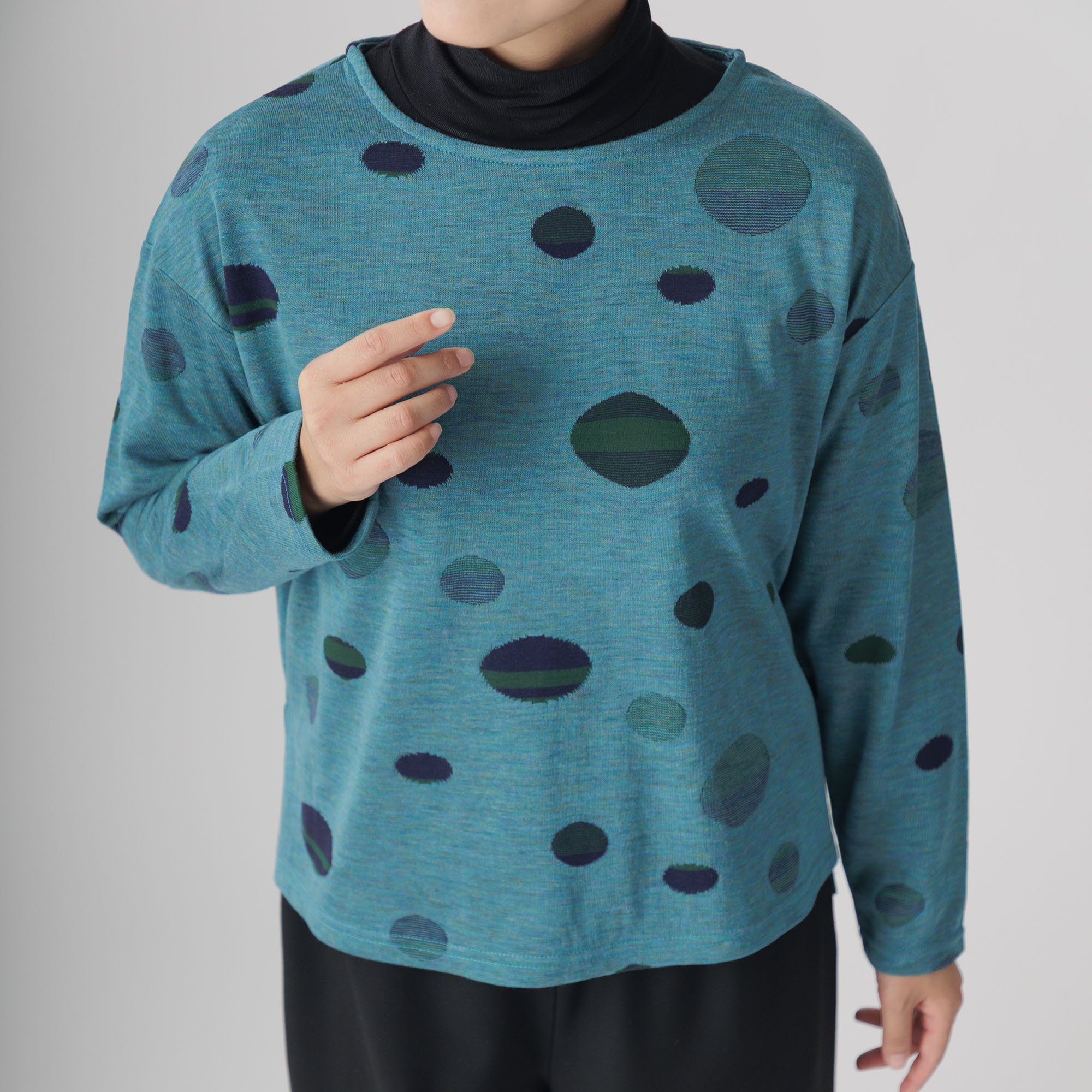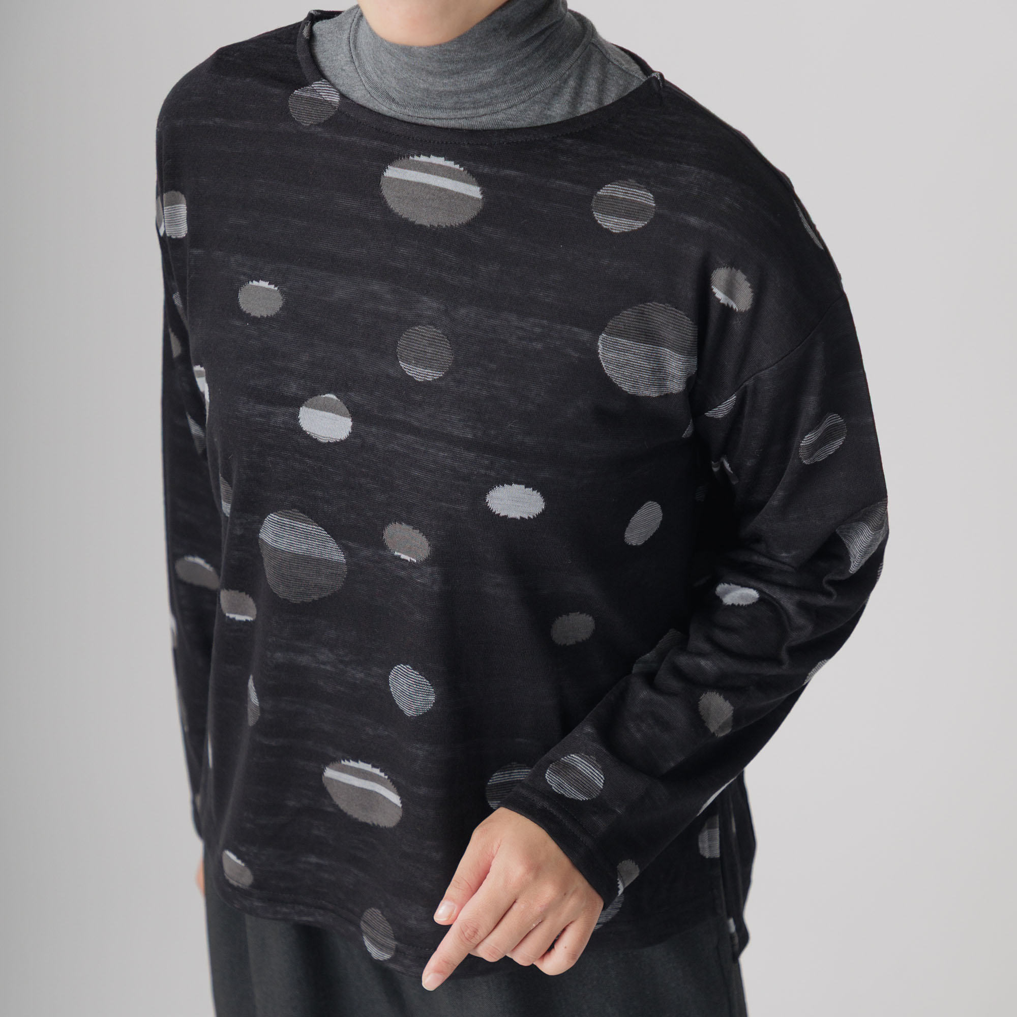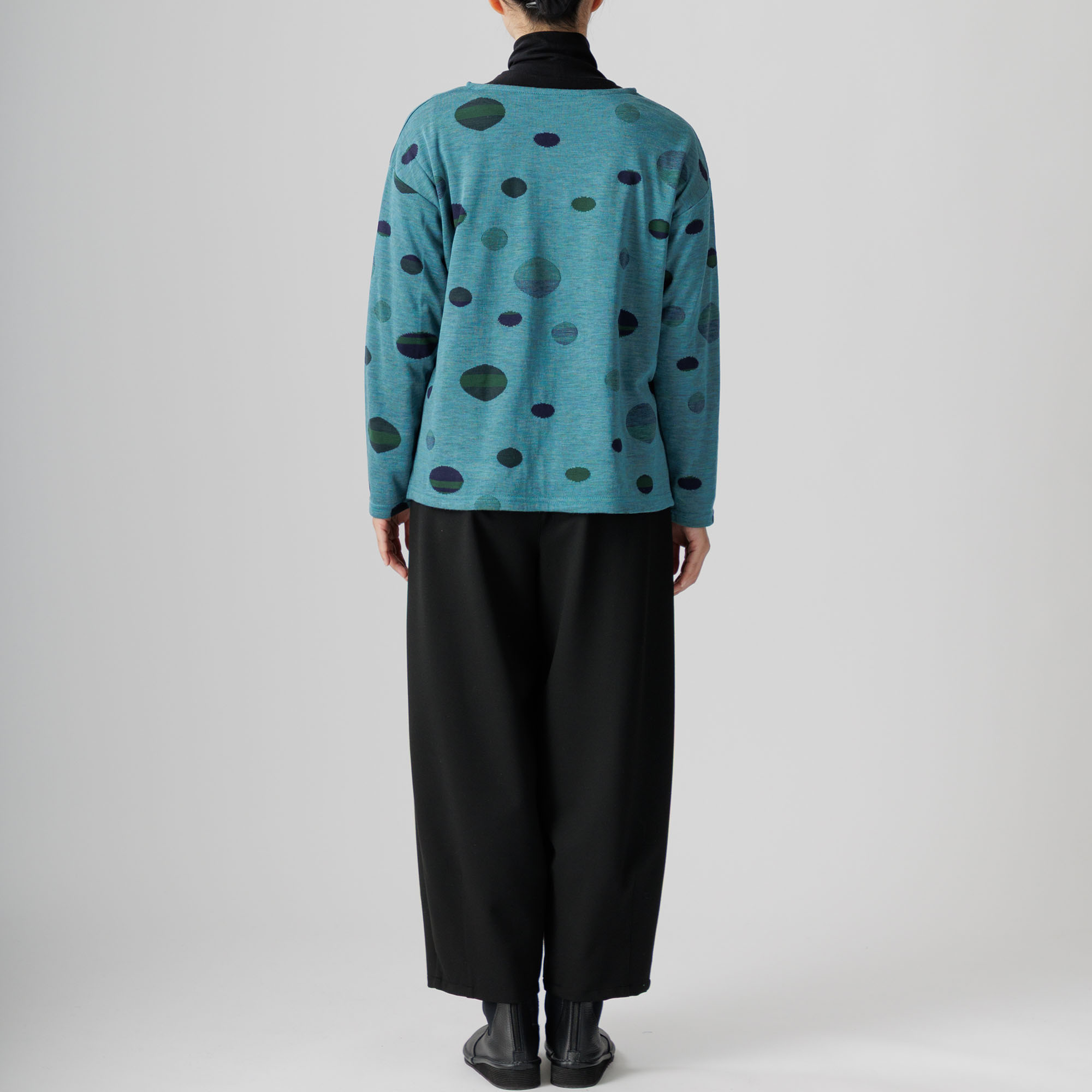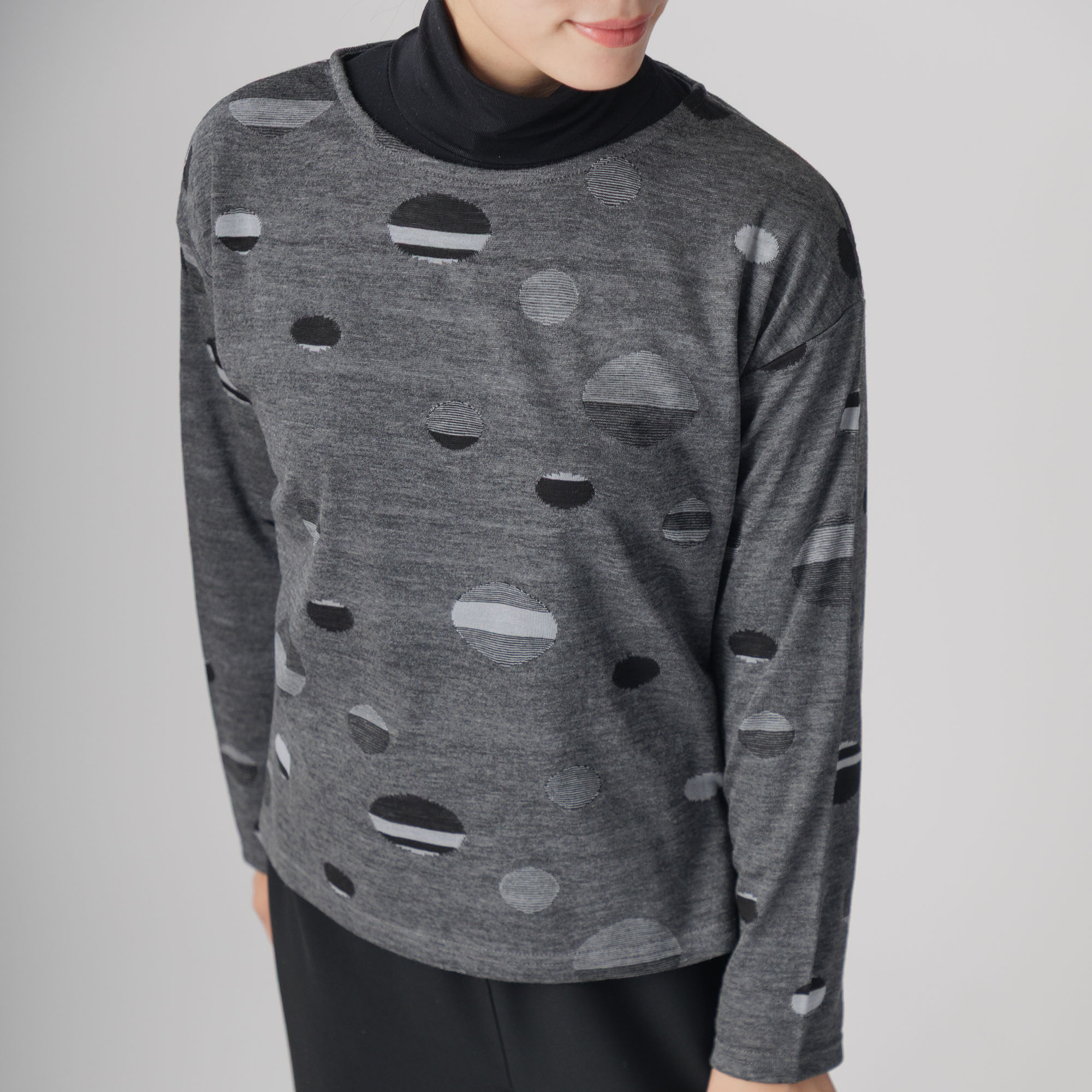 こちらは手の込んだ両面ジャガードで味わい深い色彩を楽しめるニットプルオーバー。