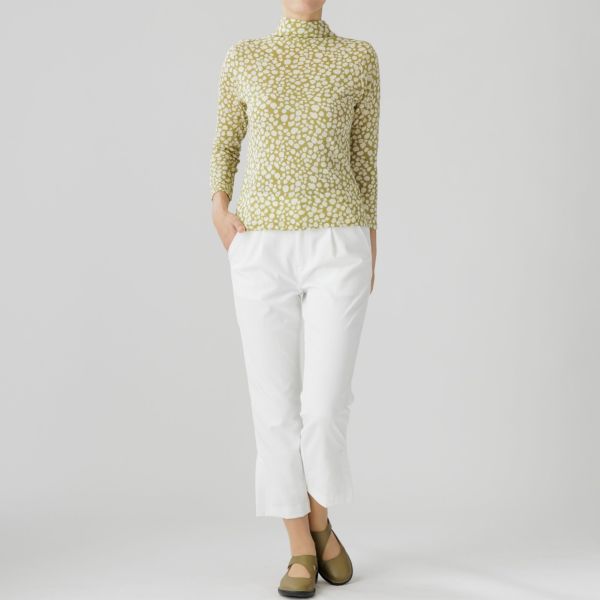 ソフトな肌触りのハイネックが首周りを優しく包み、