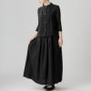 麻素材の後染めスカートとの組み合わせは、