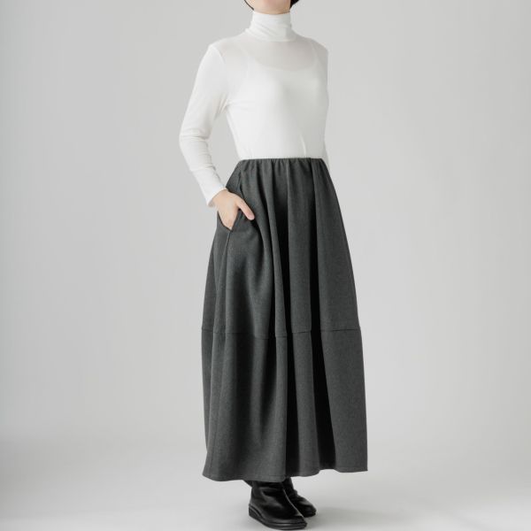 中程の切替ラインがデザインのアクセントになったスタイリッシュなバルーンスカート。