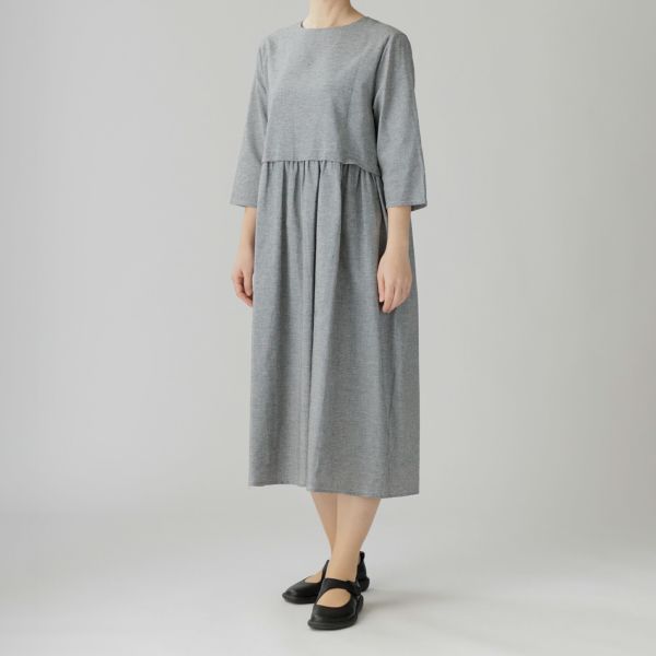 ウエストラインのギャザーから生まれるドレープが美しく、
