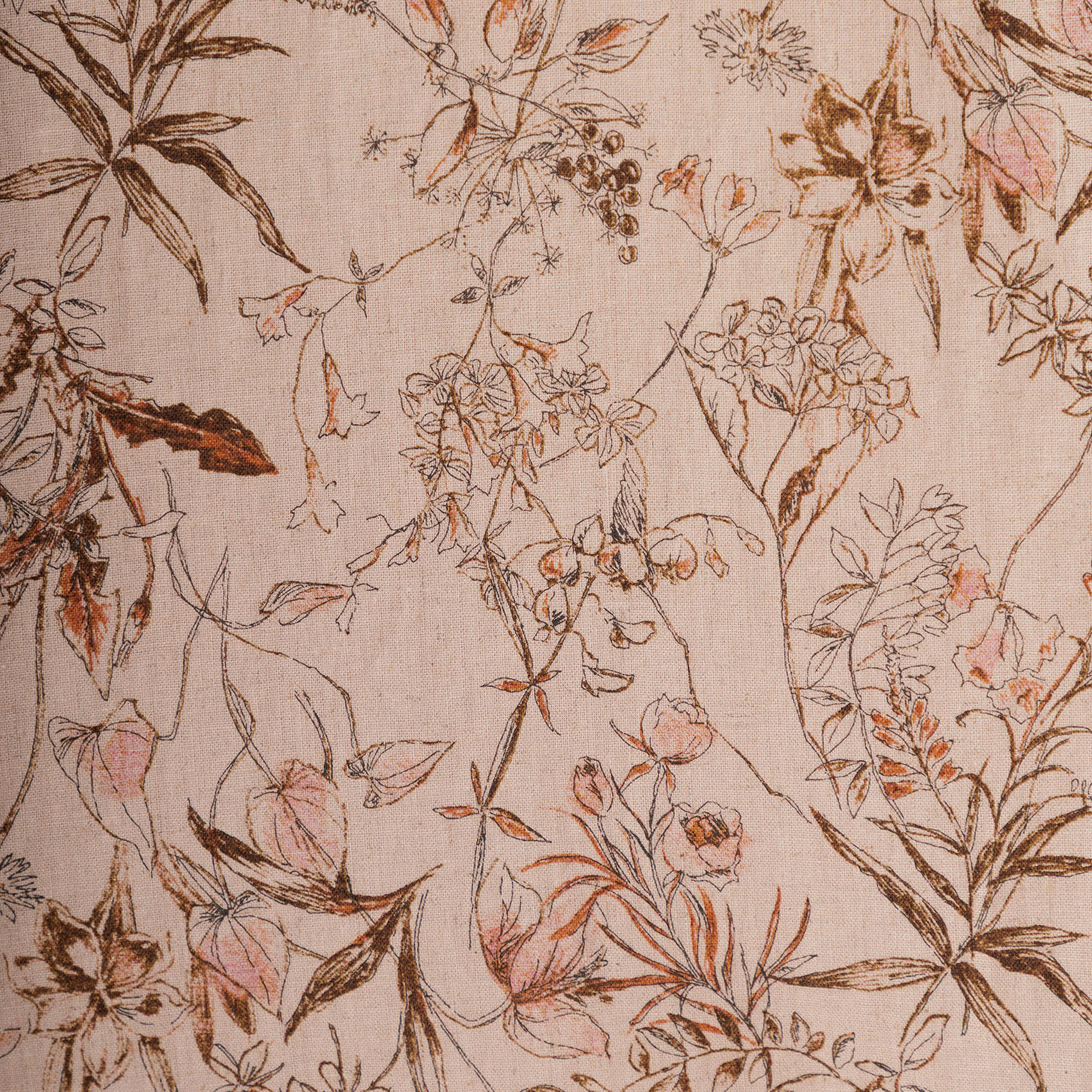 味わい深くナチュラルテイストあふれる素朴な色彩の草花柄が魅力です。