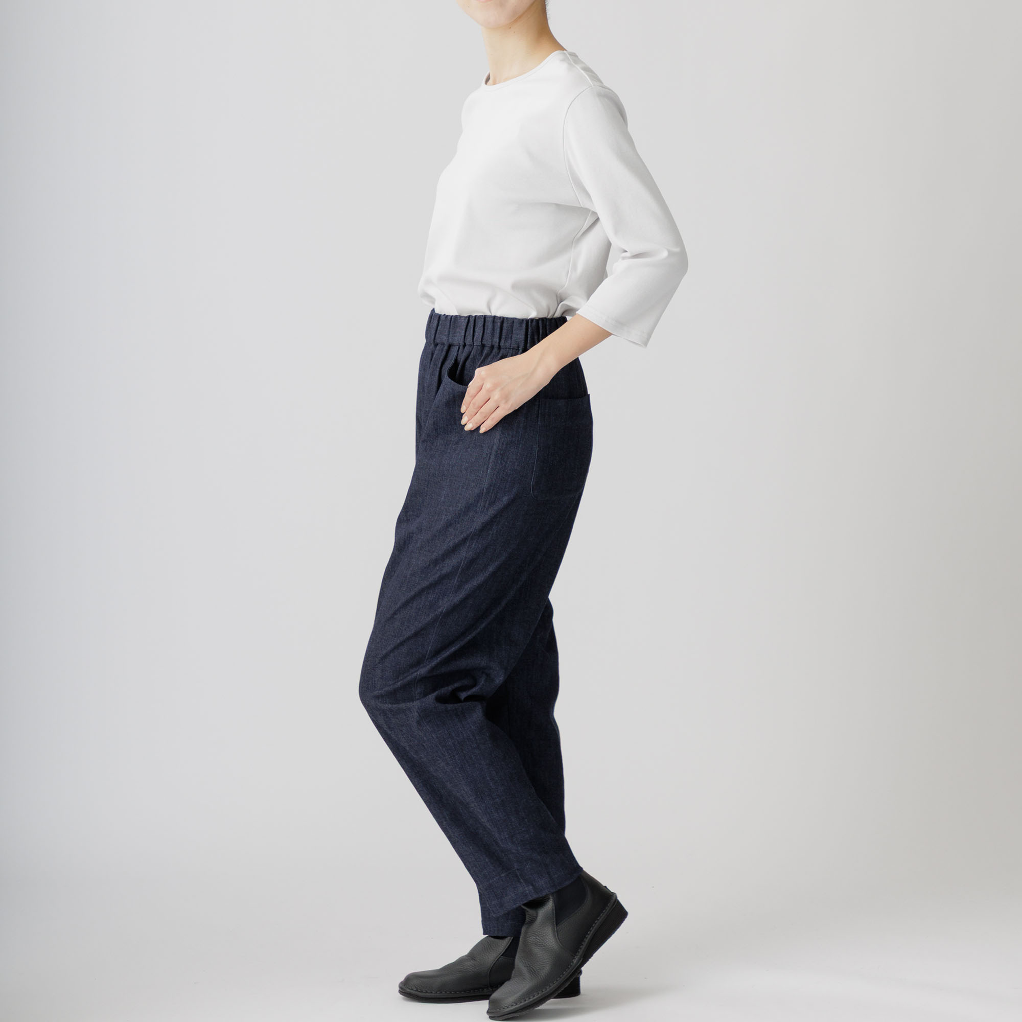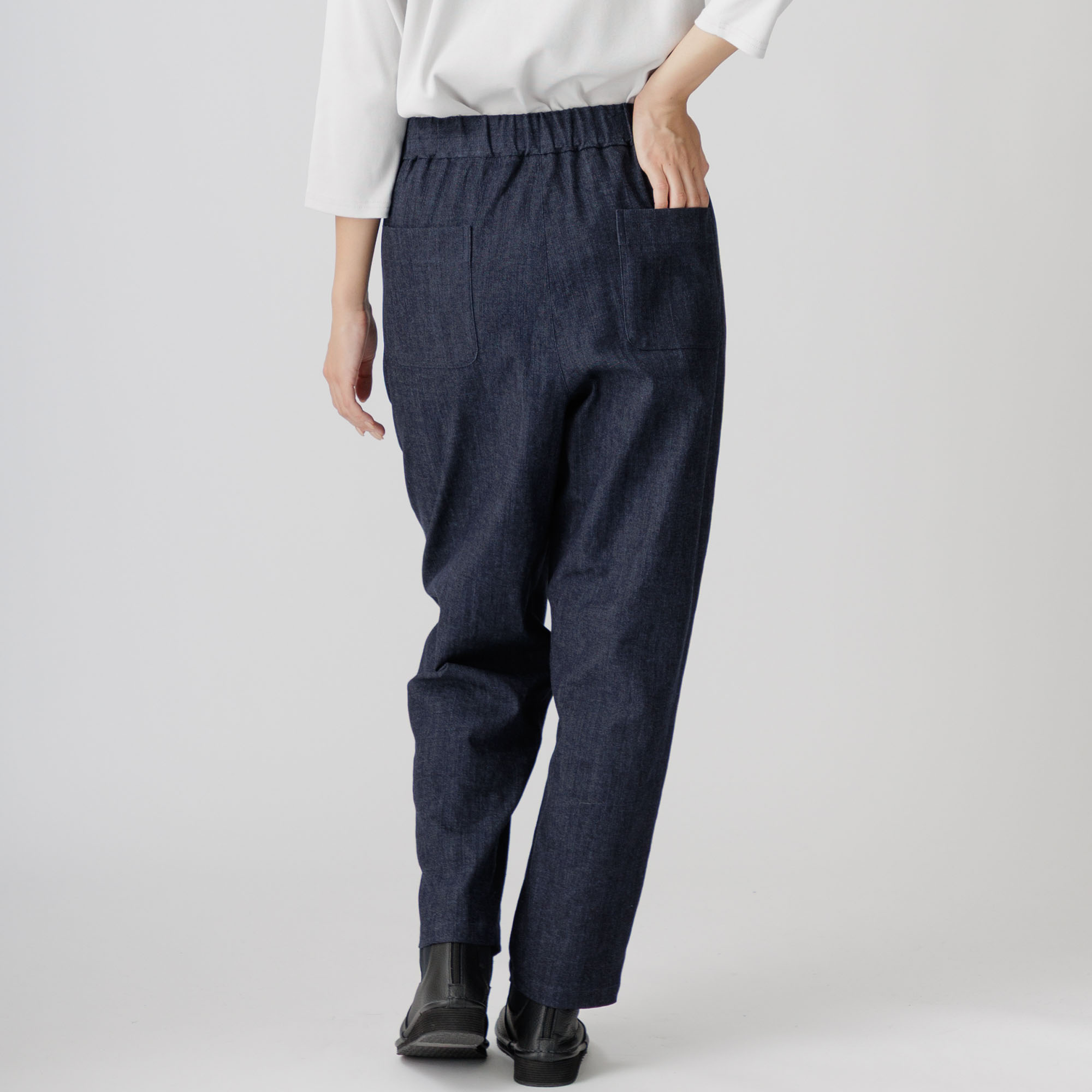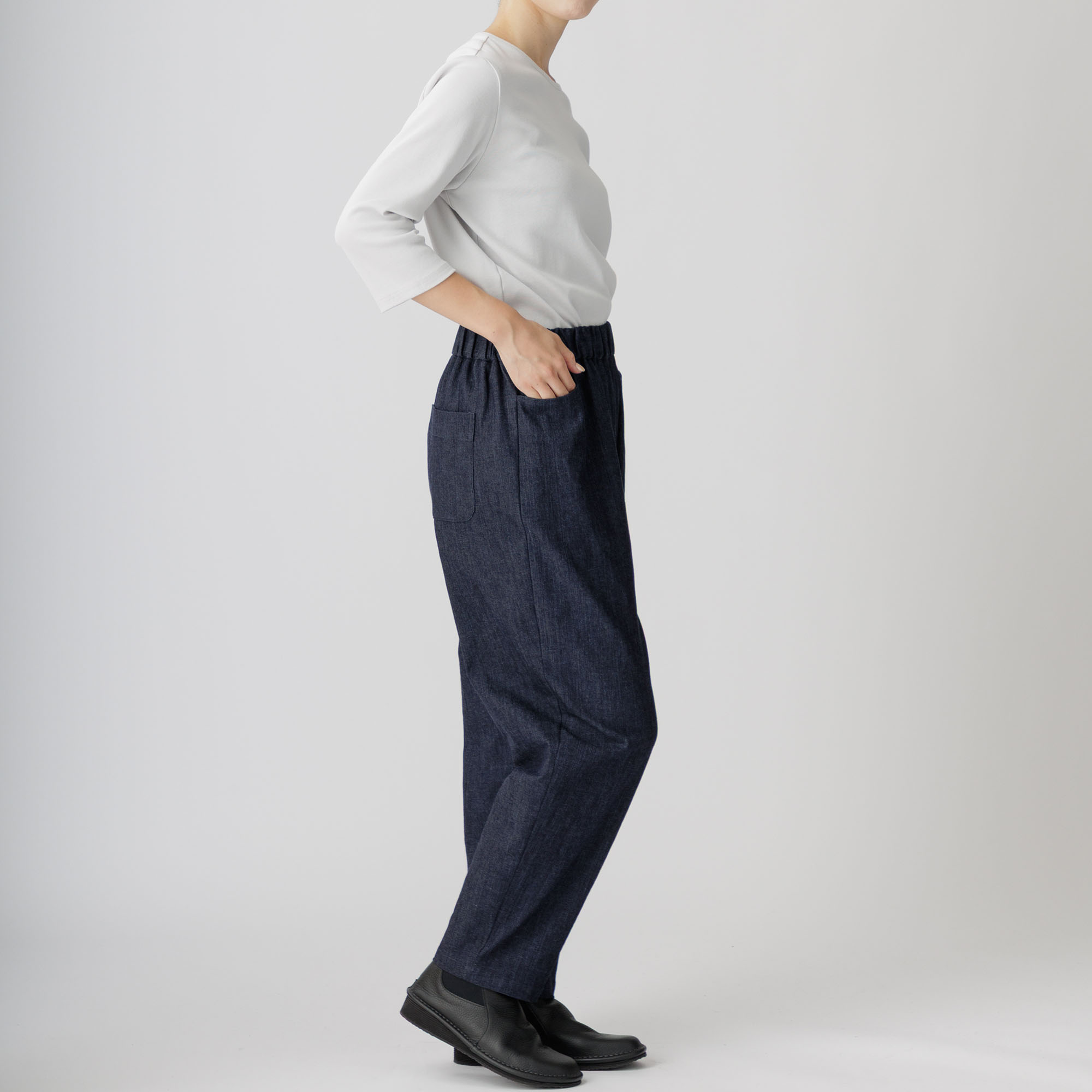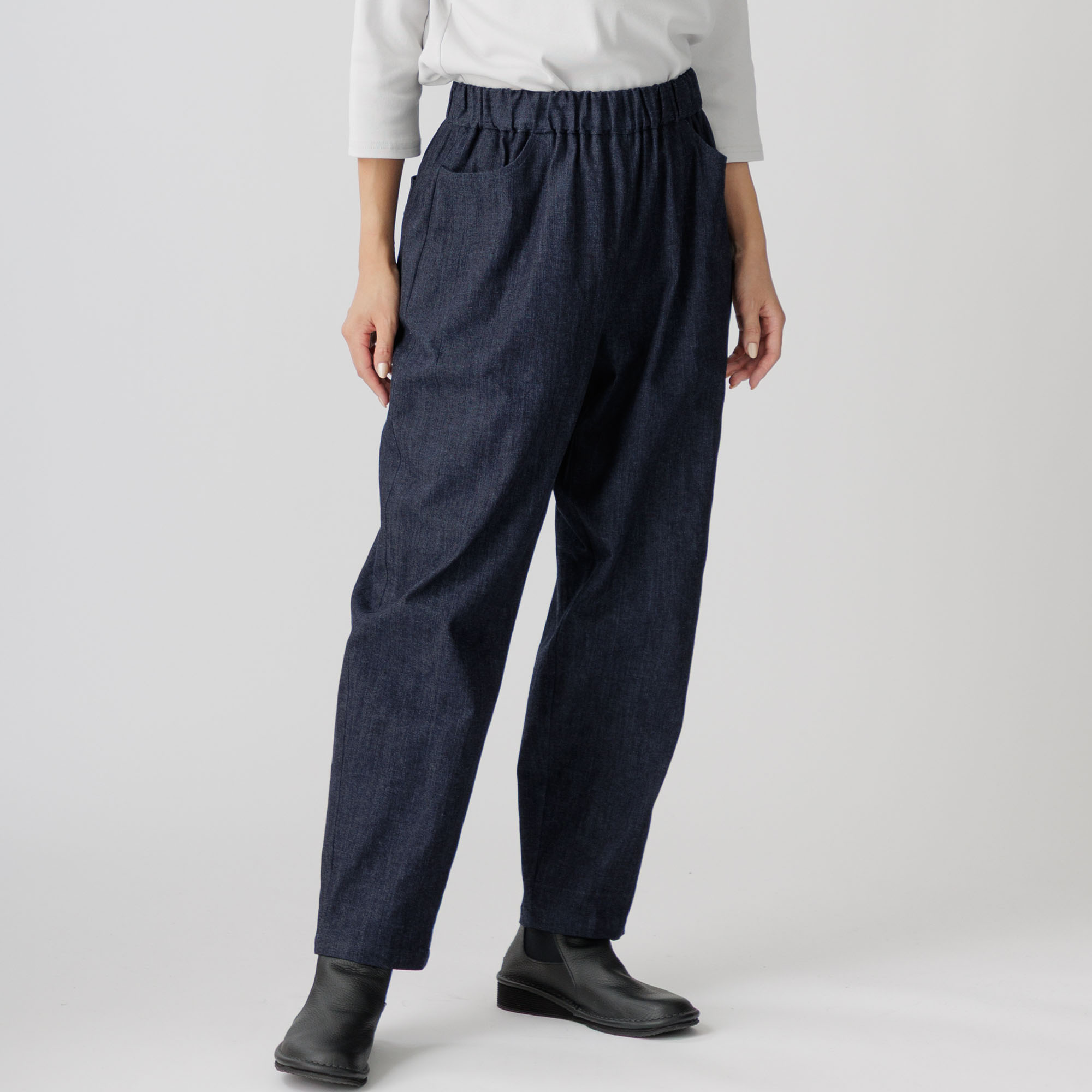 総ゴムのウエストでゆったりと楽に、ご着用できます。