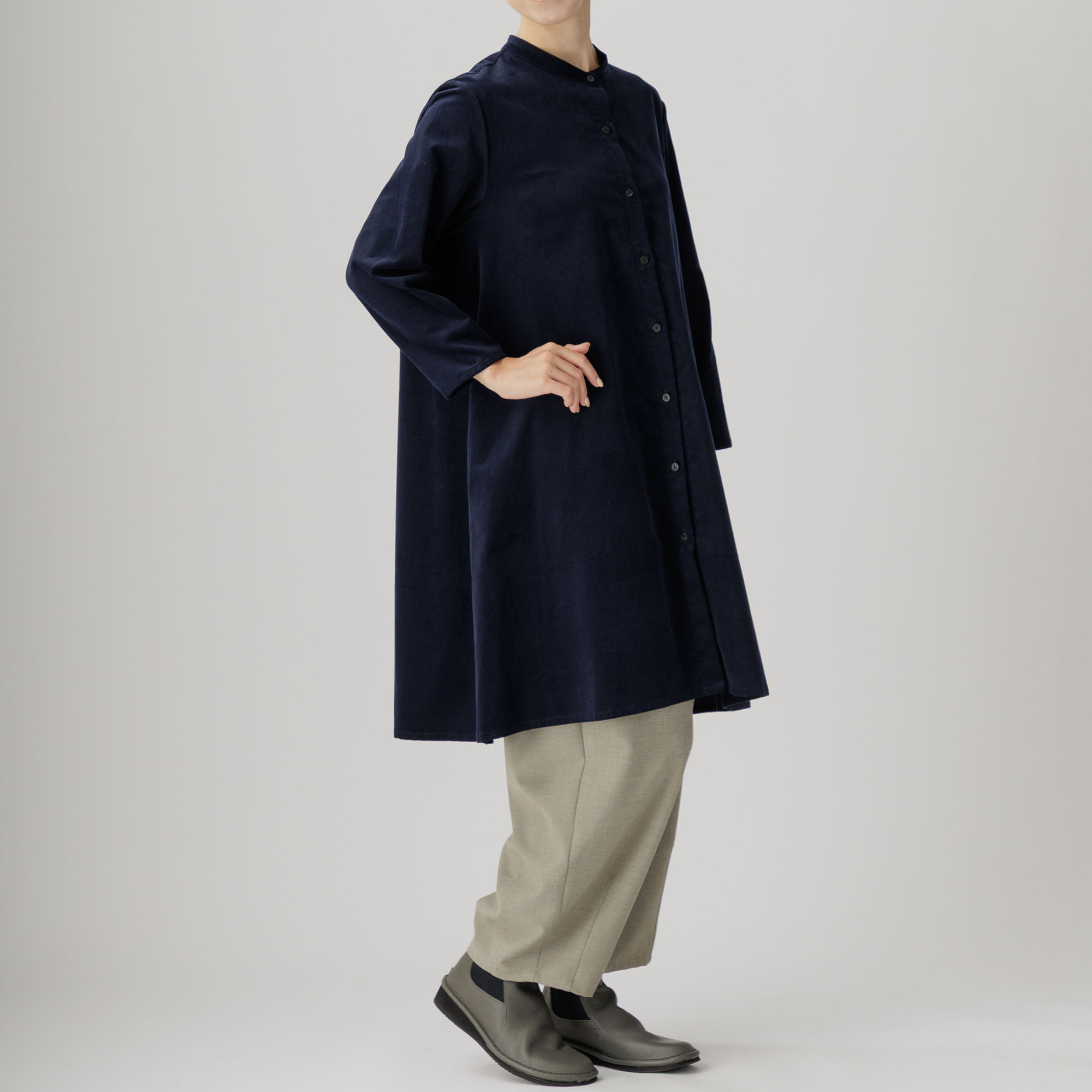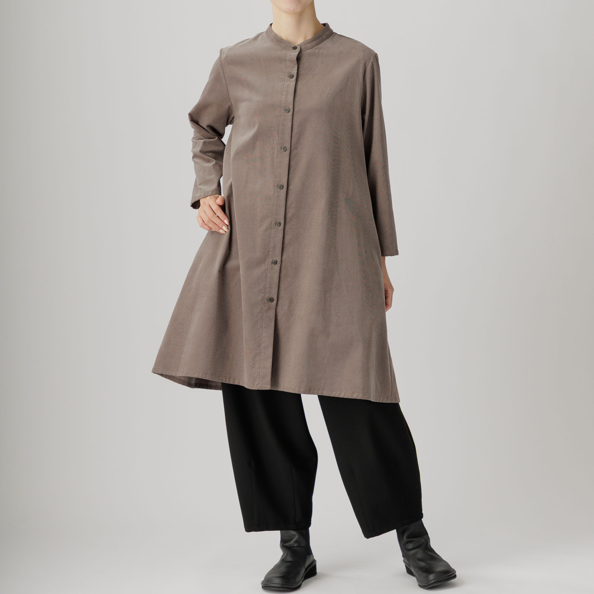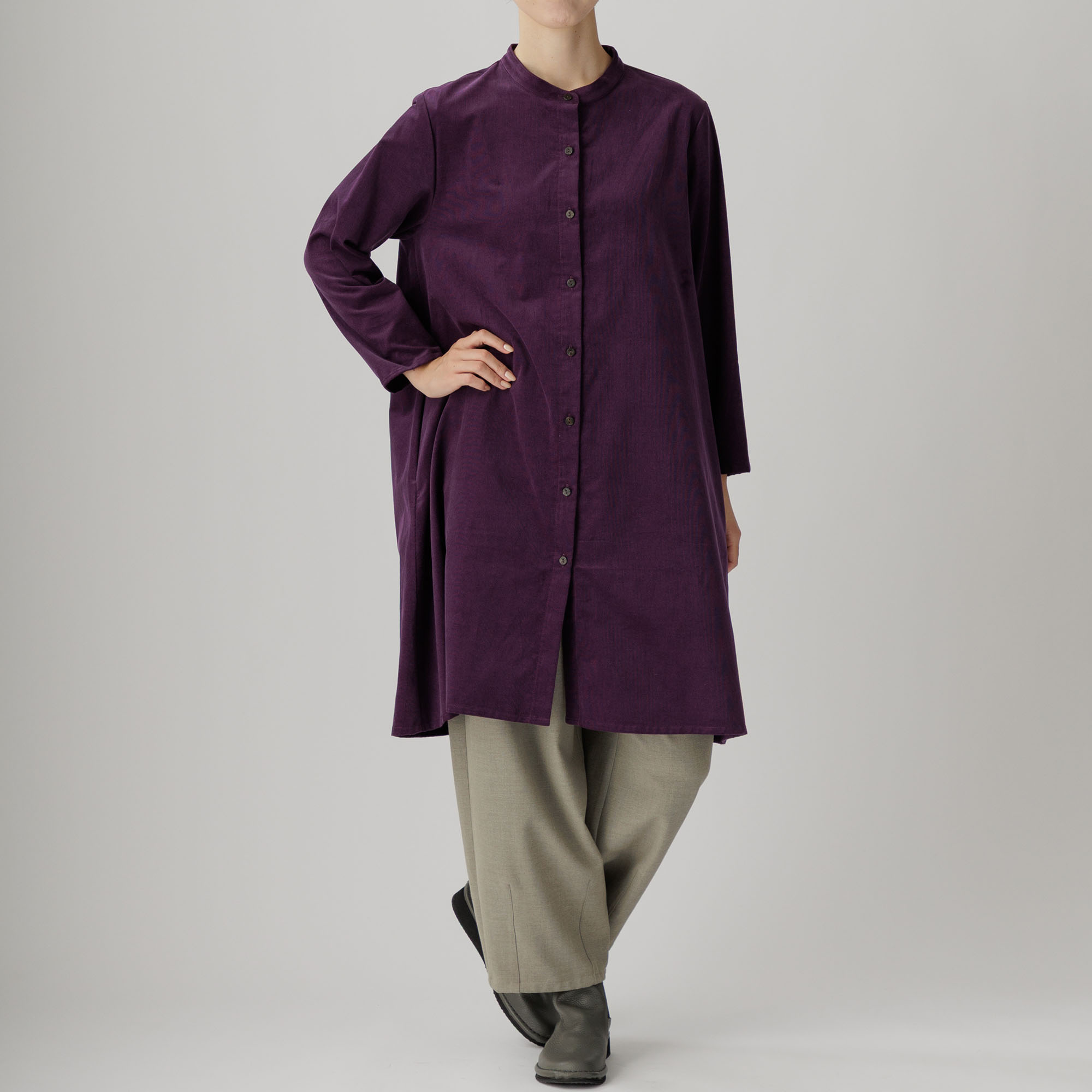 シンプルなデザインながらスタイリッシュな着姿が魅力のコーデュロイロングブラウスが新登場。