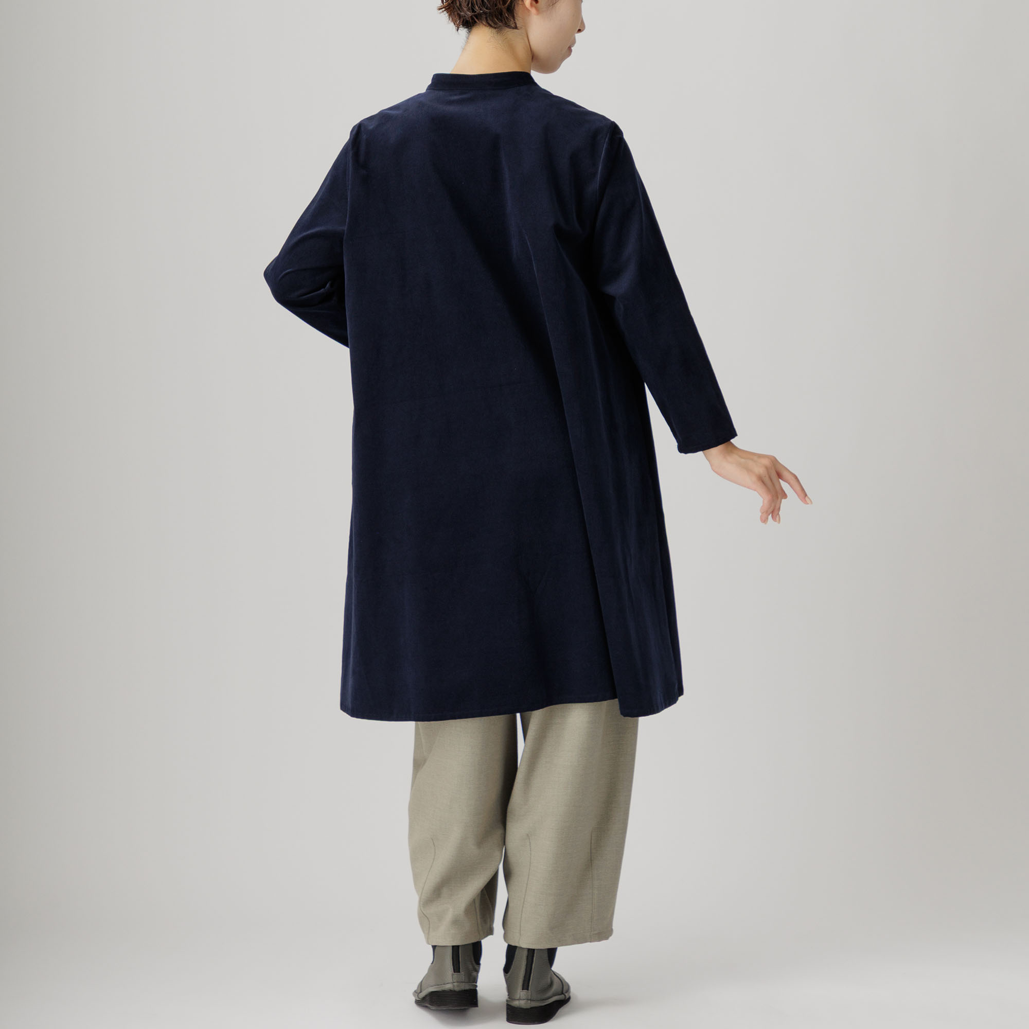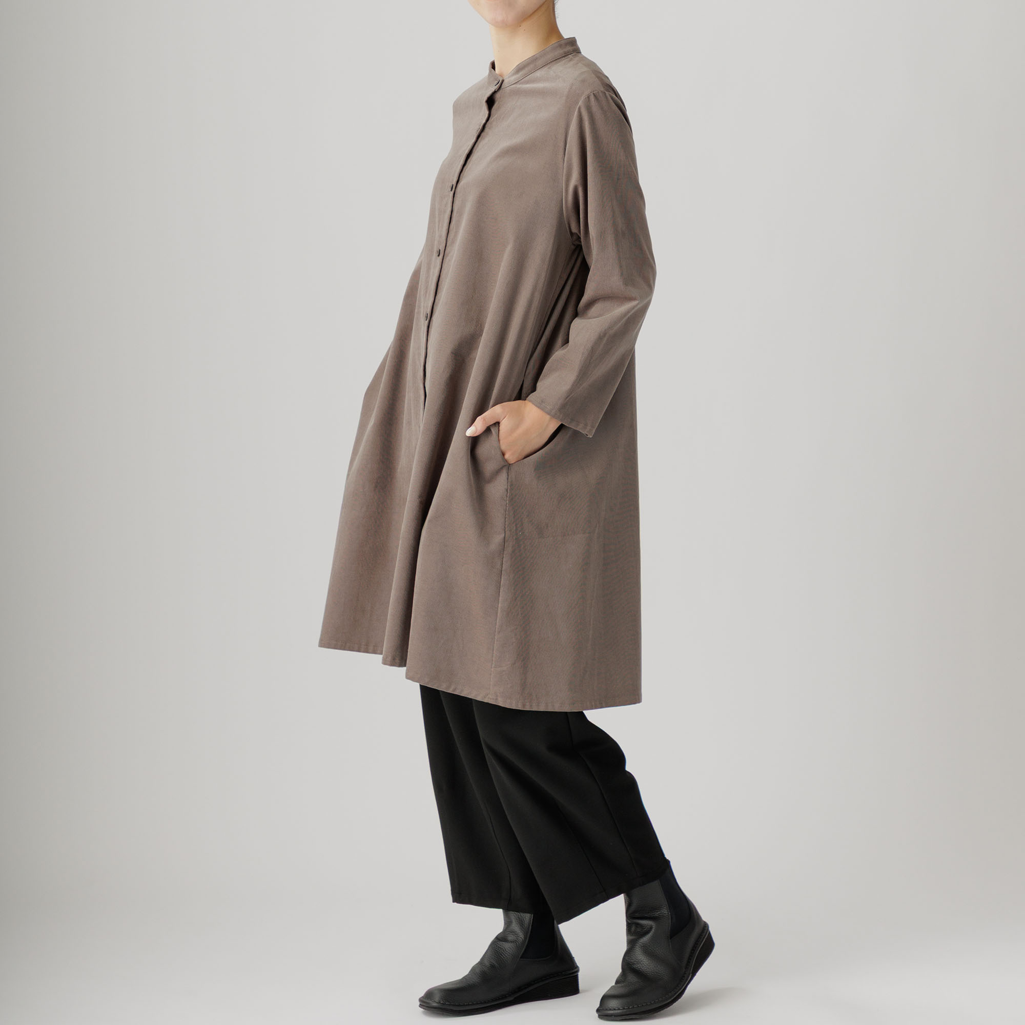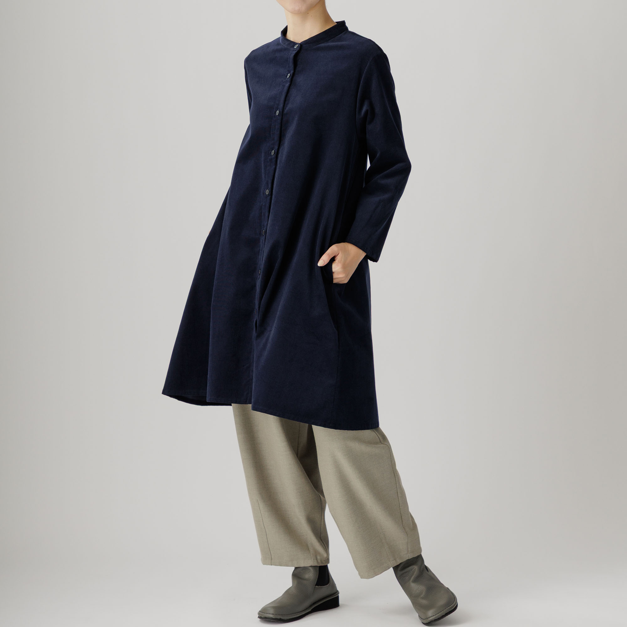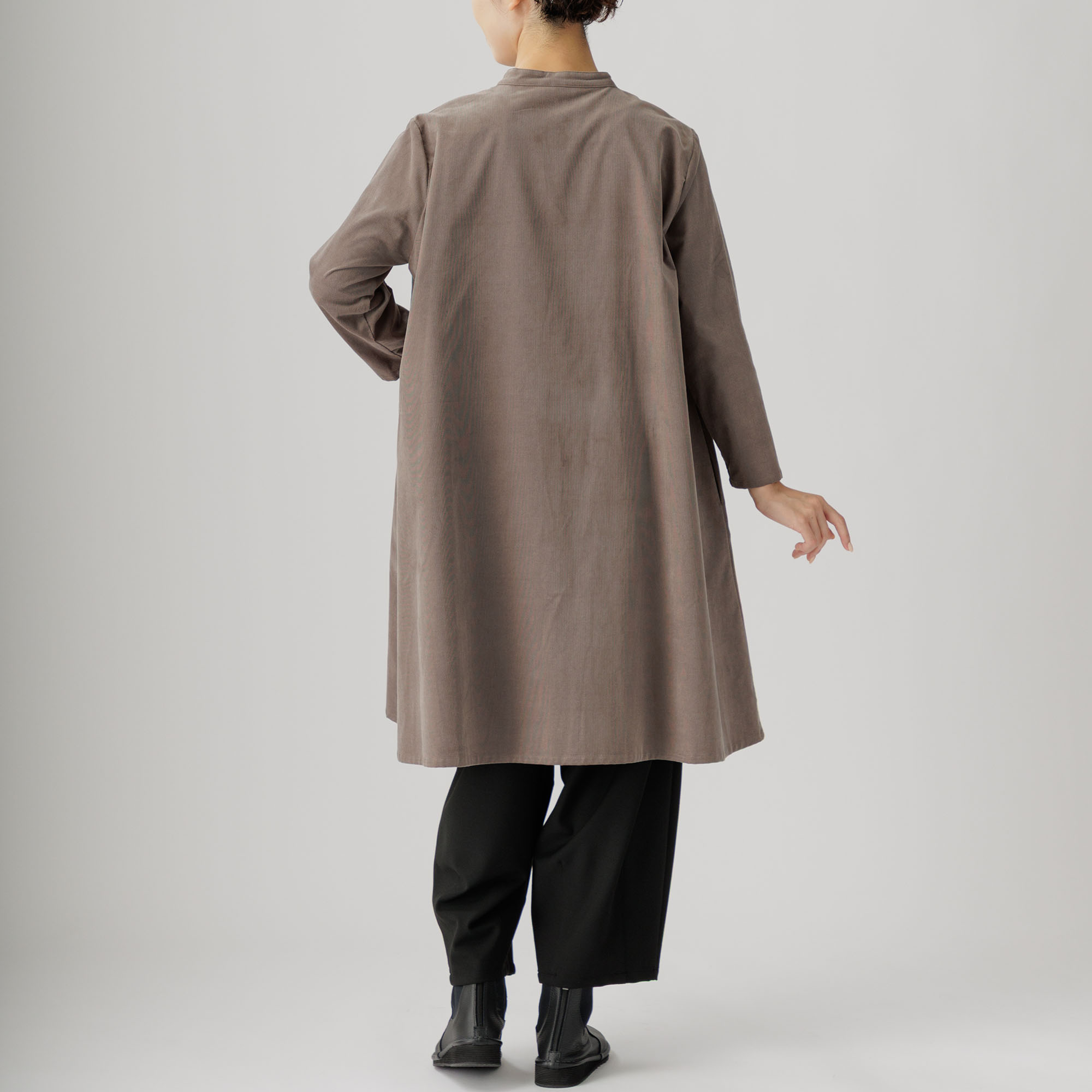 シンプルなデザインながらスタイリッシュな着姿が魅力のコーデュロイロングブラウスが新登場。