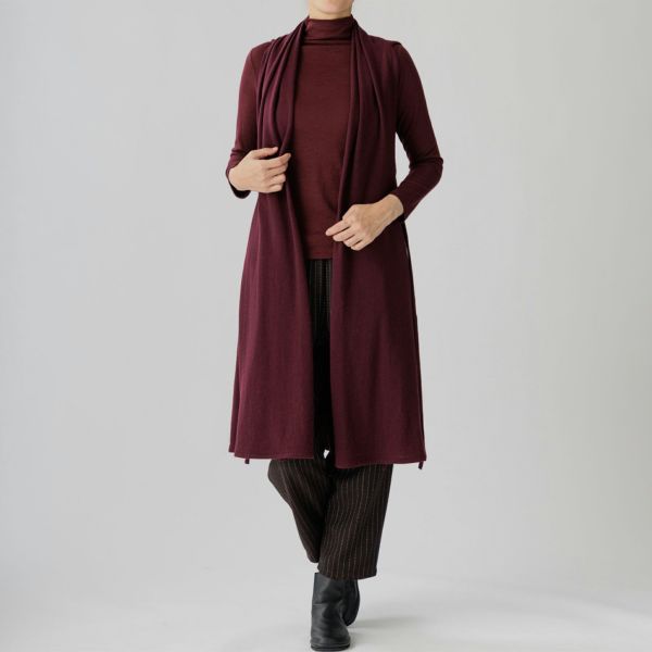 こちらはロングタイプの新作ベストで、存在感あふれる着姿と暖かな風合いが冬の装いに最適。