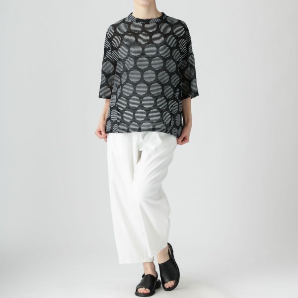 ストライプの水玉模様が目に美しく鮮烈な印象を放つジャガードチュニックが新登場。