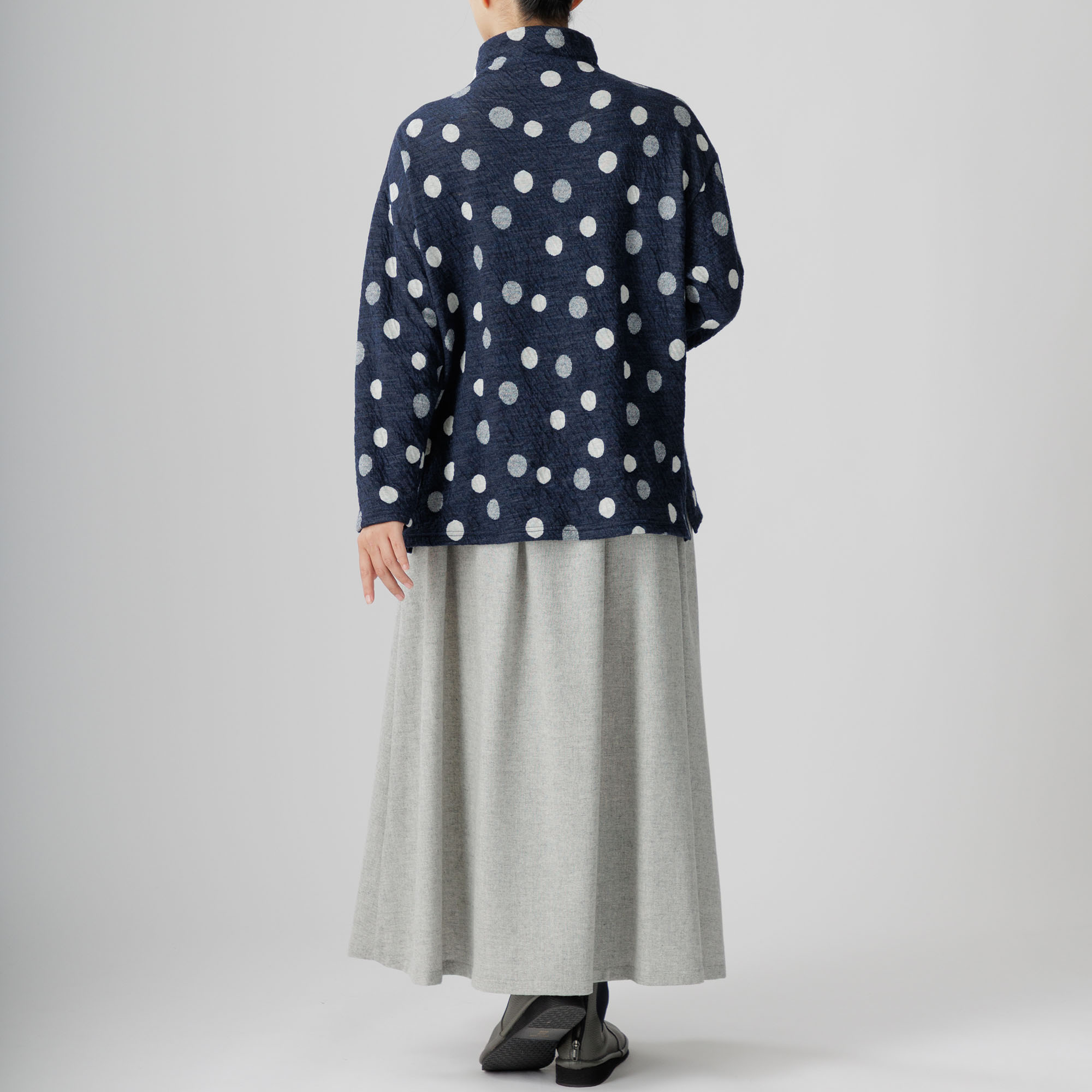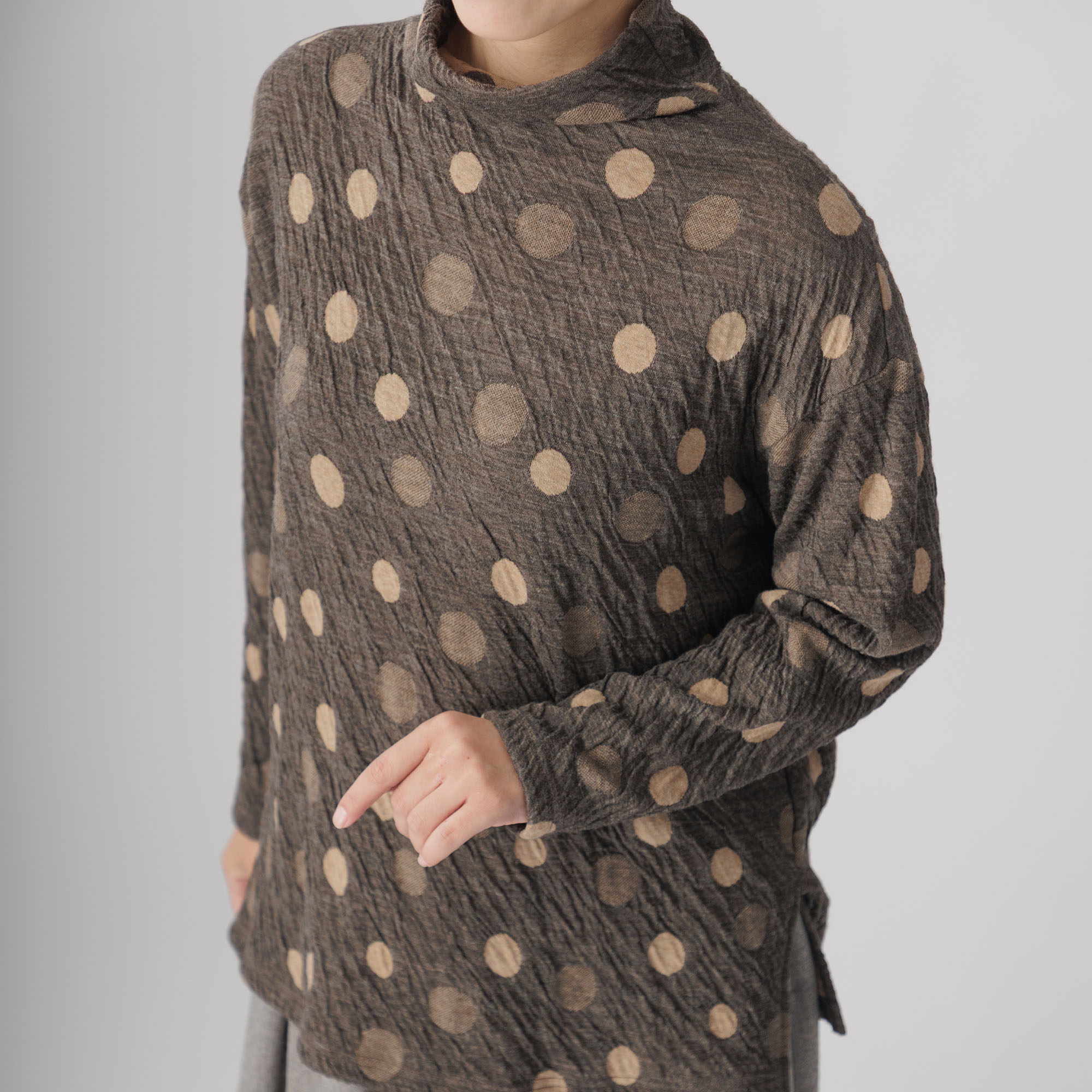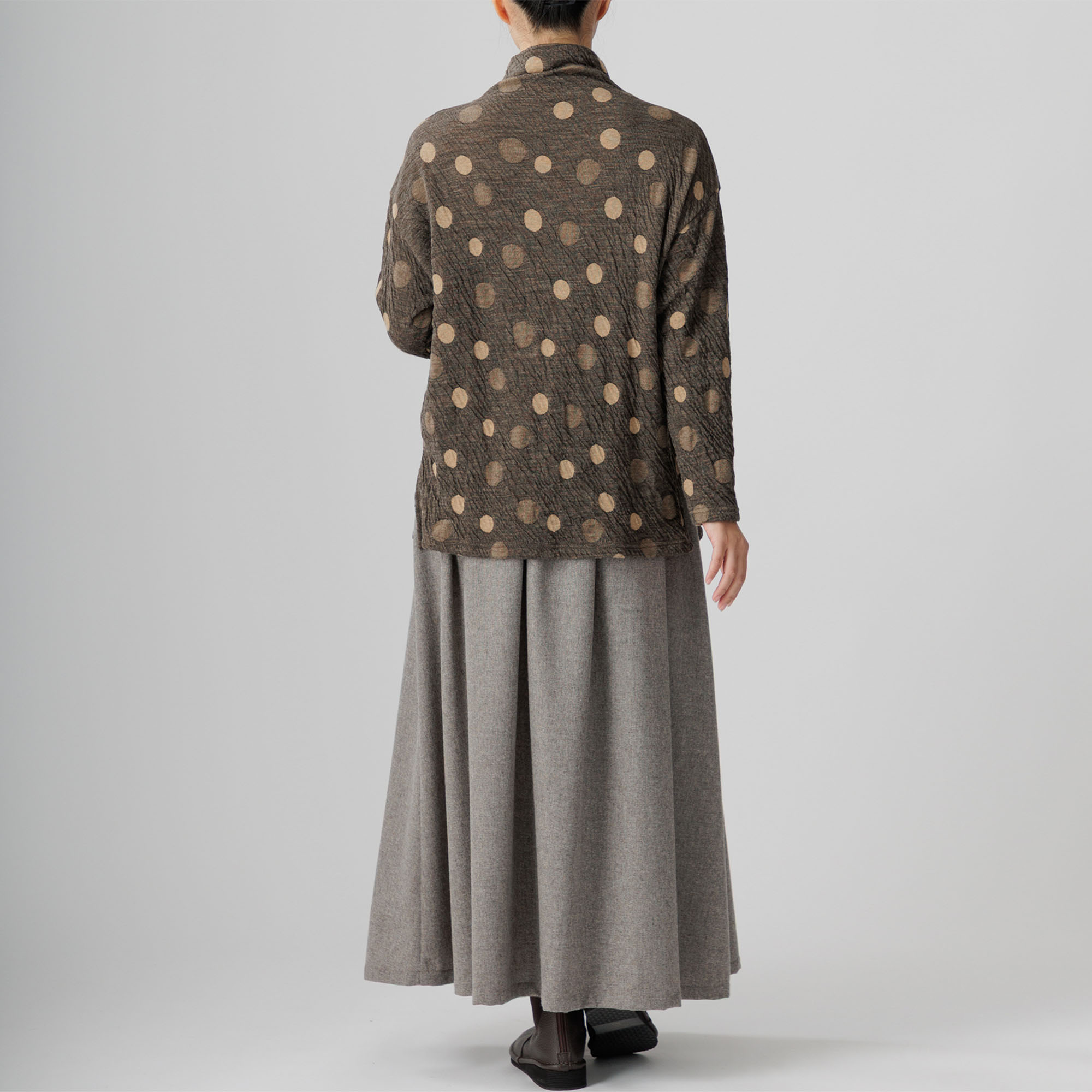 味わい深いシワ感と素朴な水玉柄が装いを優しく個性的に引き立たせます。