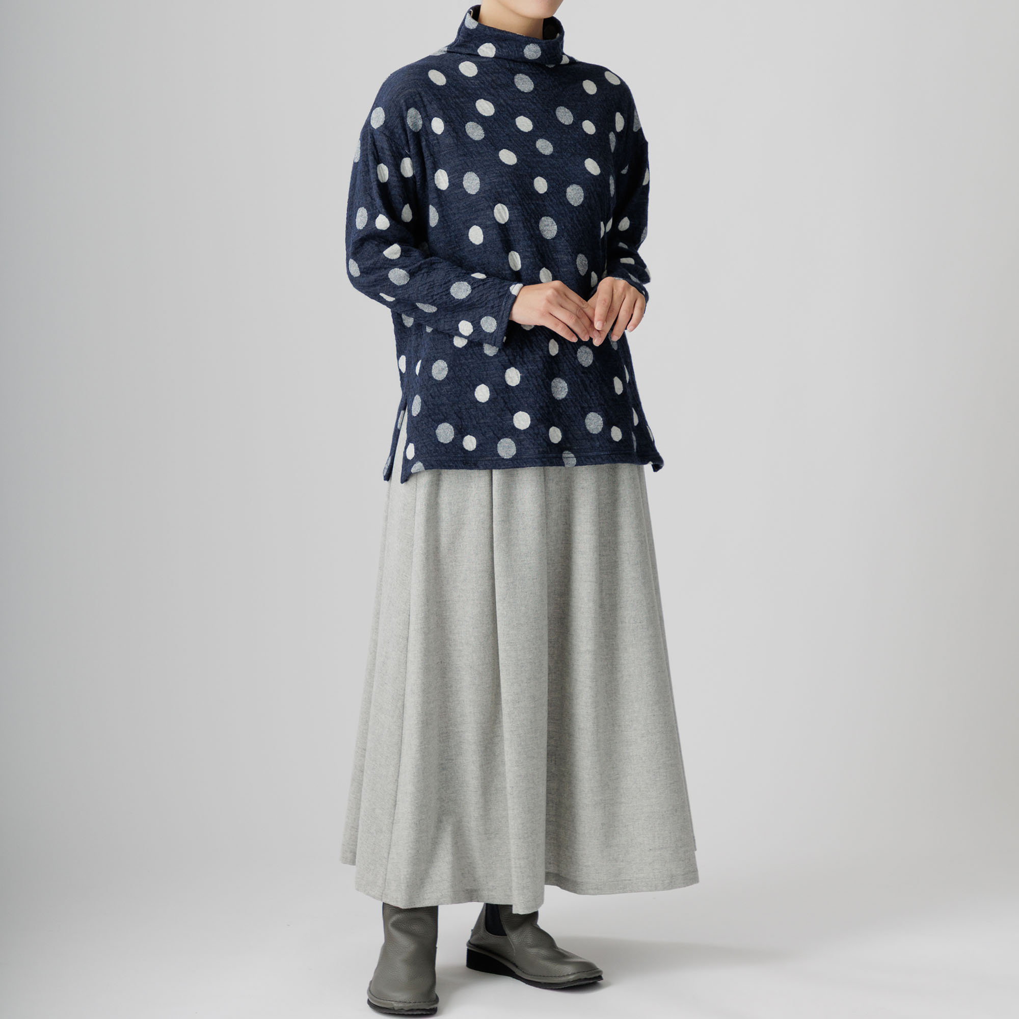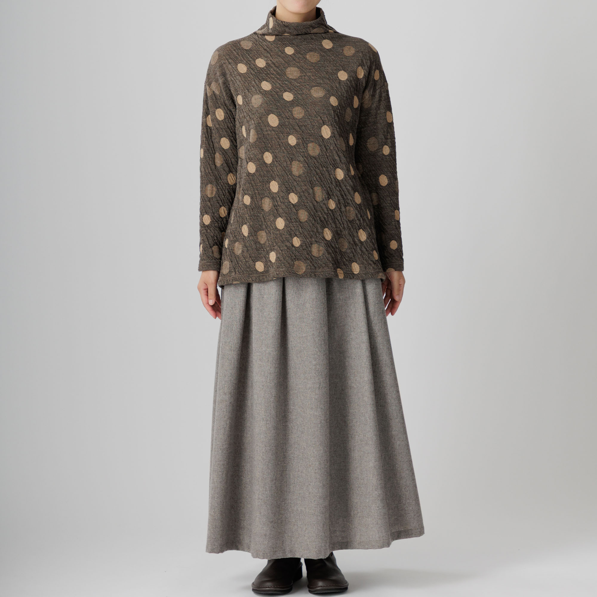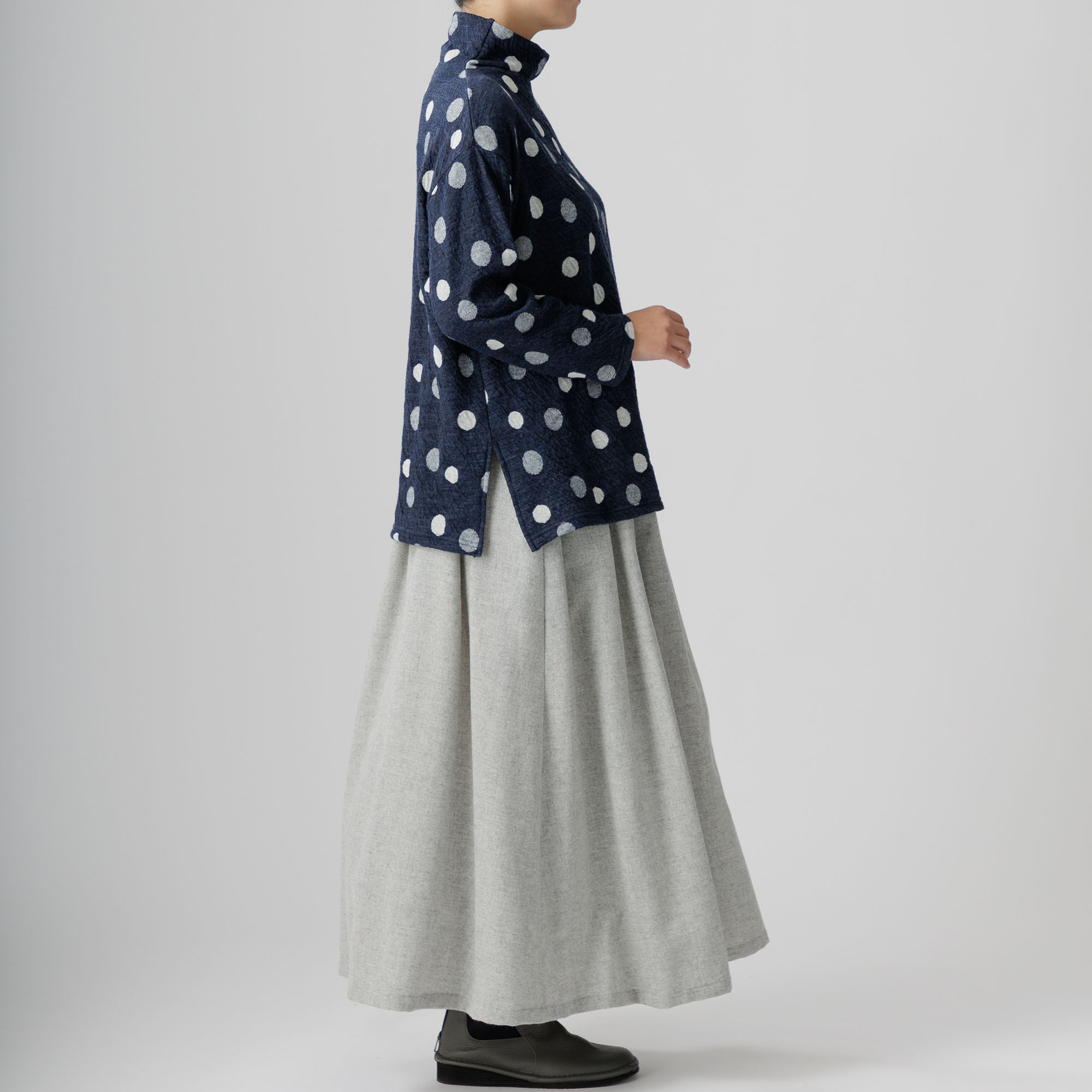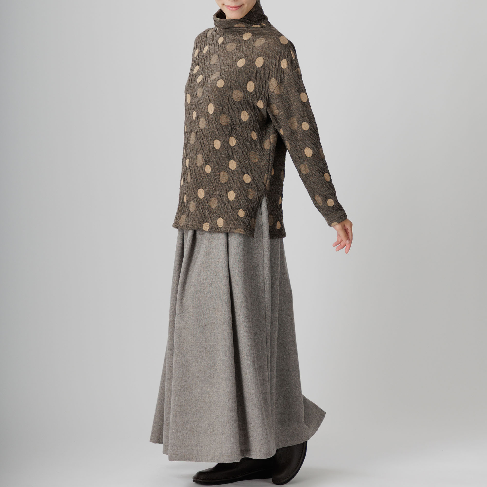 味わい深いシワ感と素朴な水玉柄が装いを優しく個性的に引き立たせます。