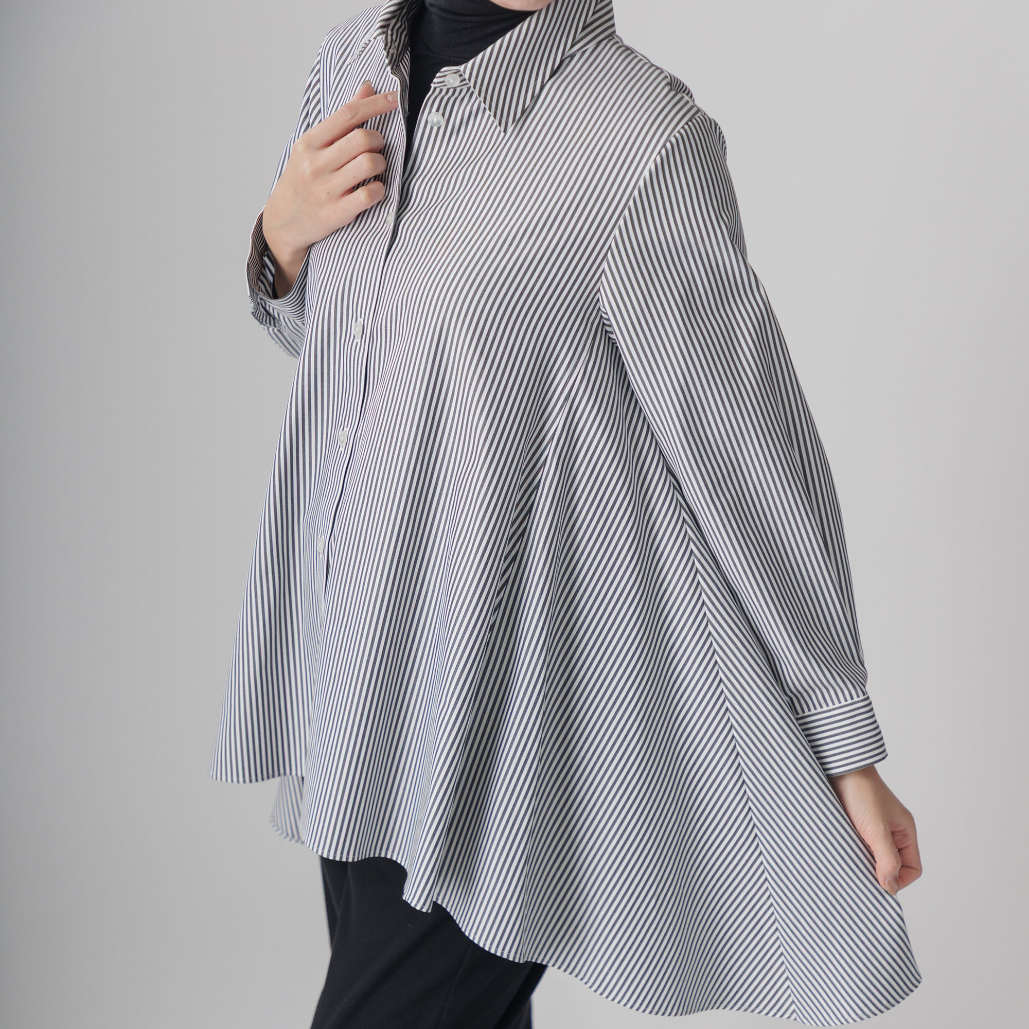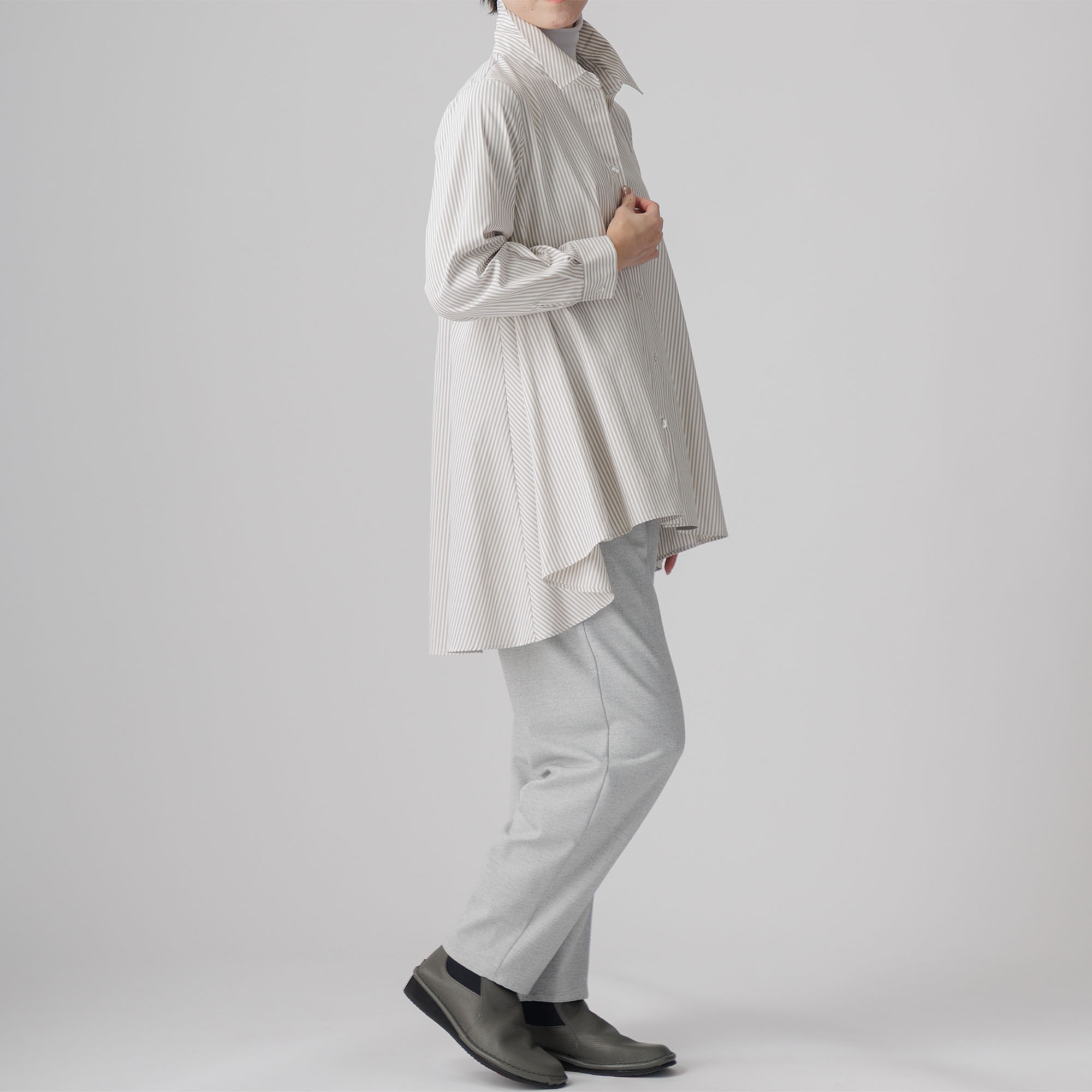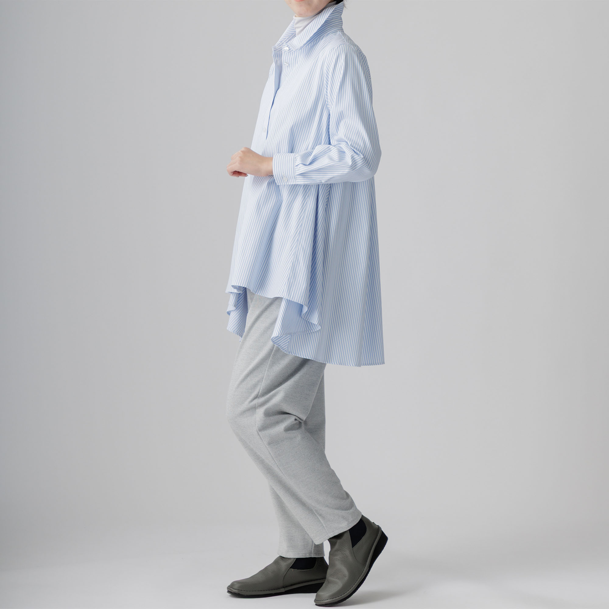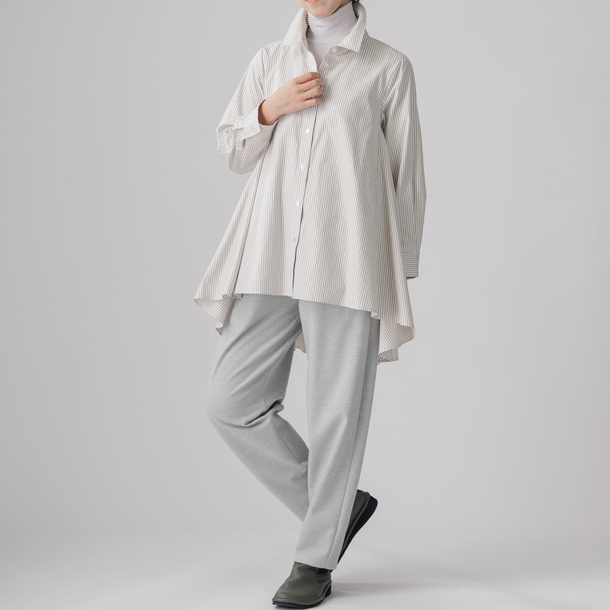 ゆったりと裾が広がったデザインでスタイリッシュな着姿を楽しめる