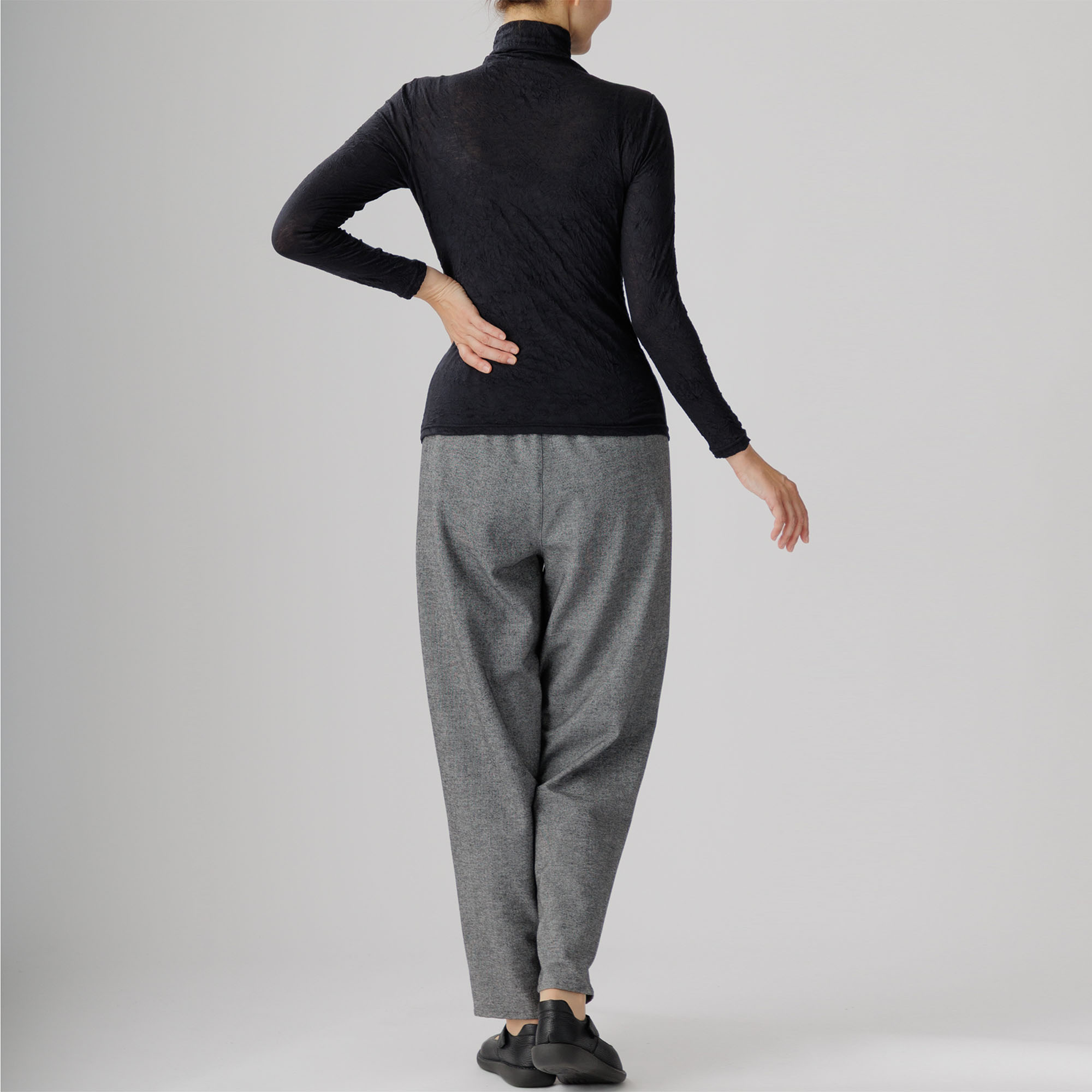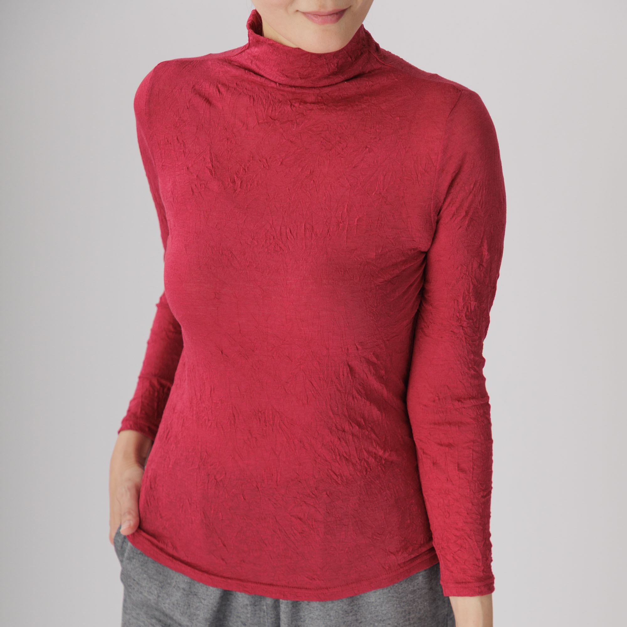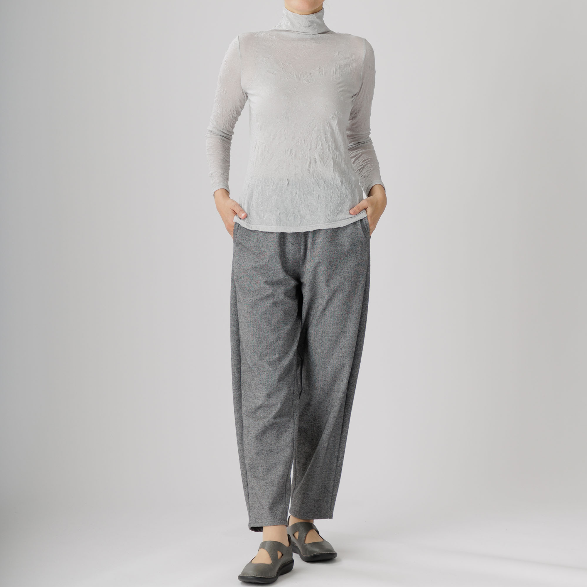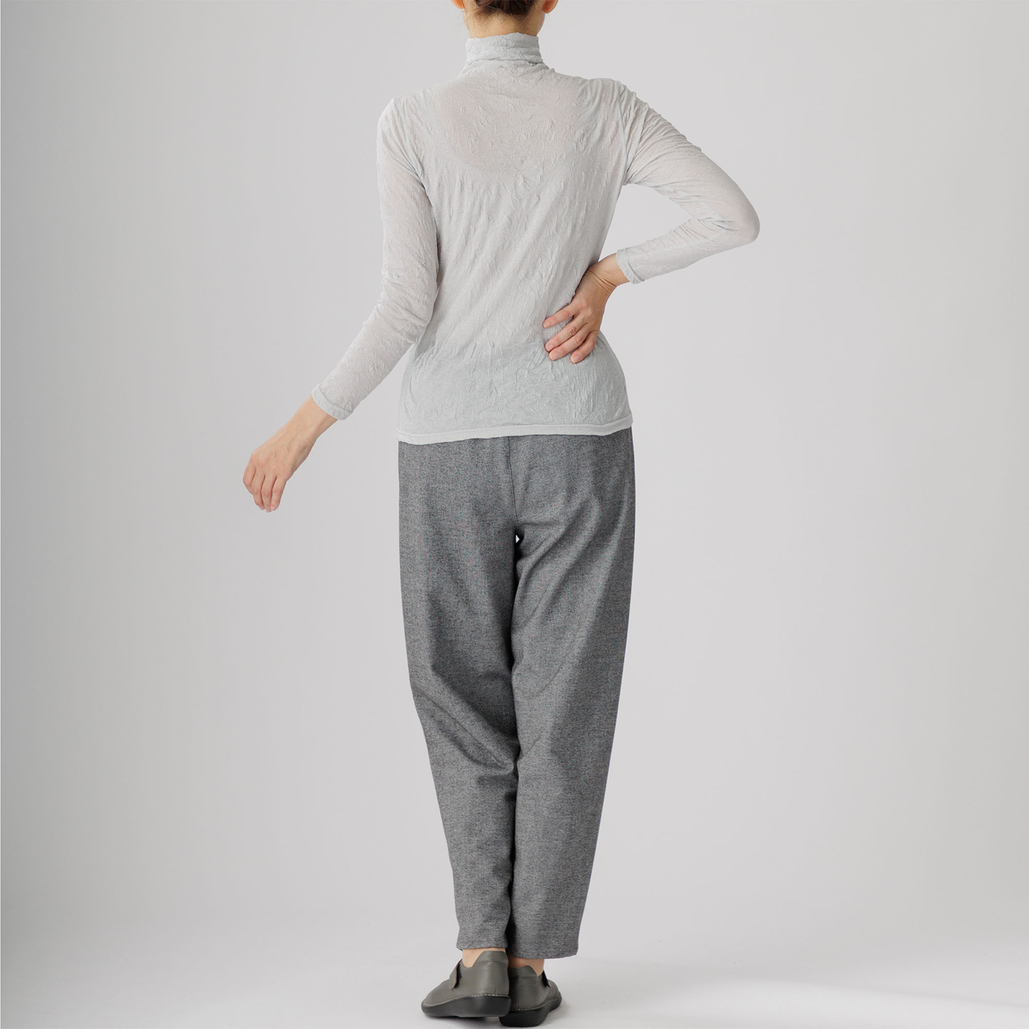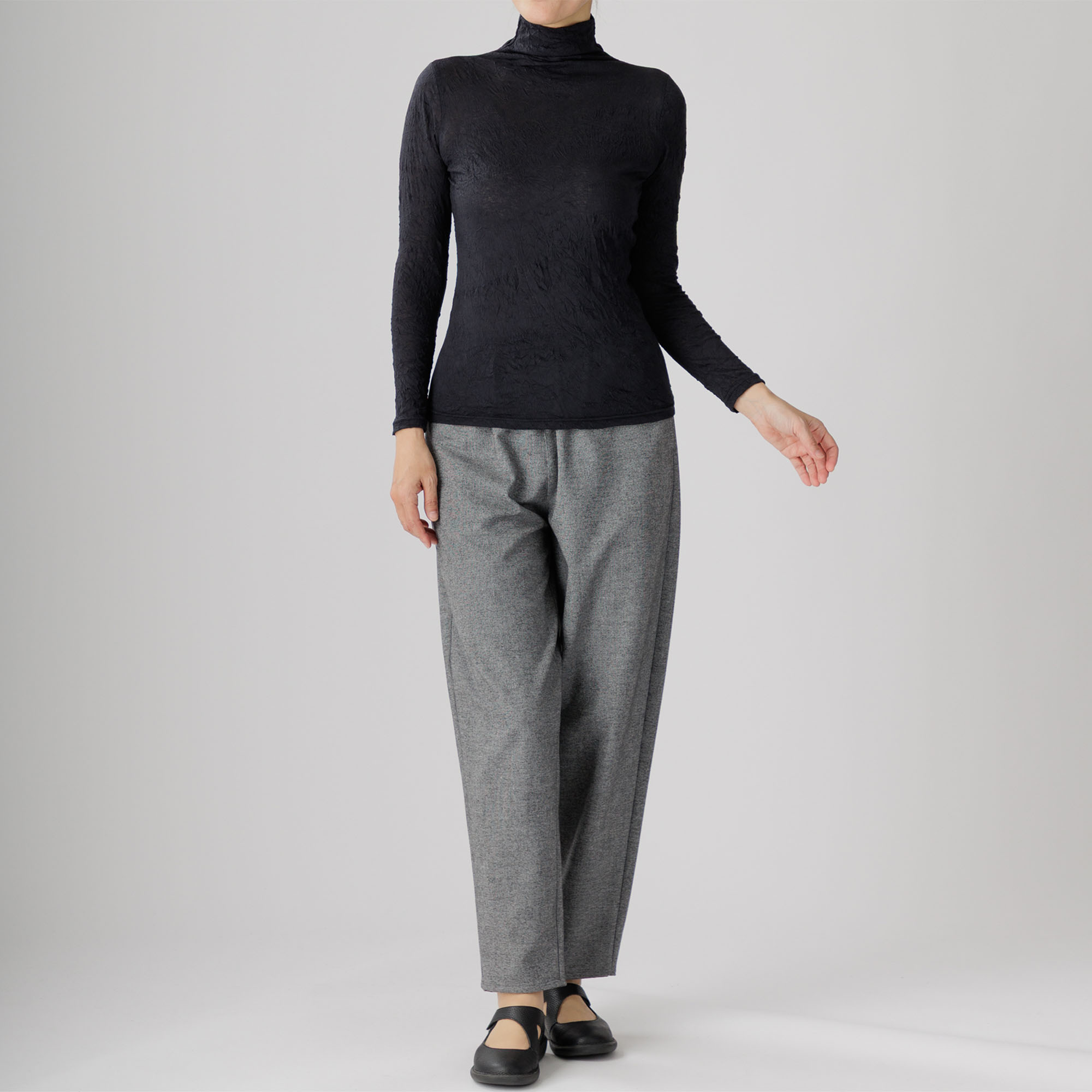ワッシャー加工による味わい深いシワ感がセンスを放つ新作ハイネックインナーはいかがですか。