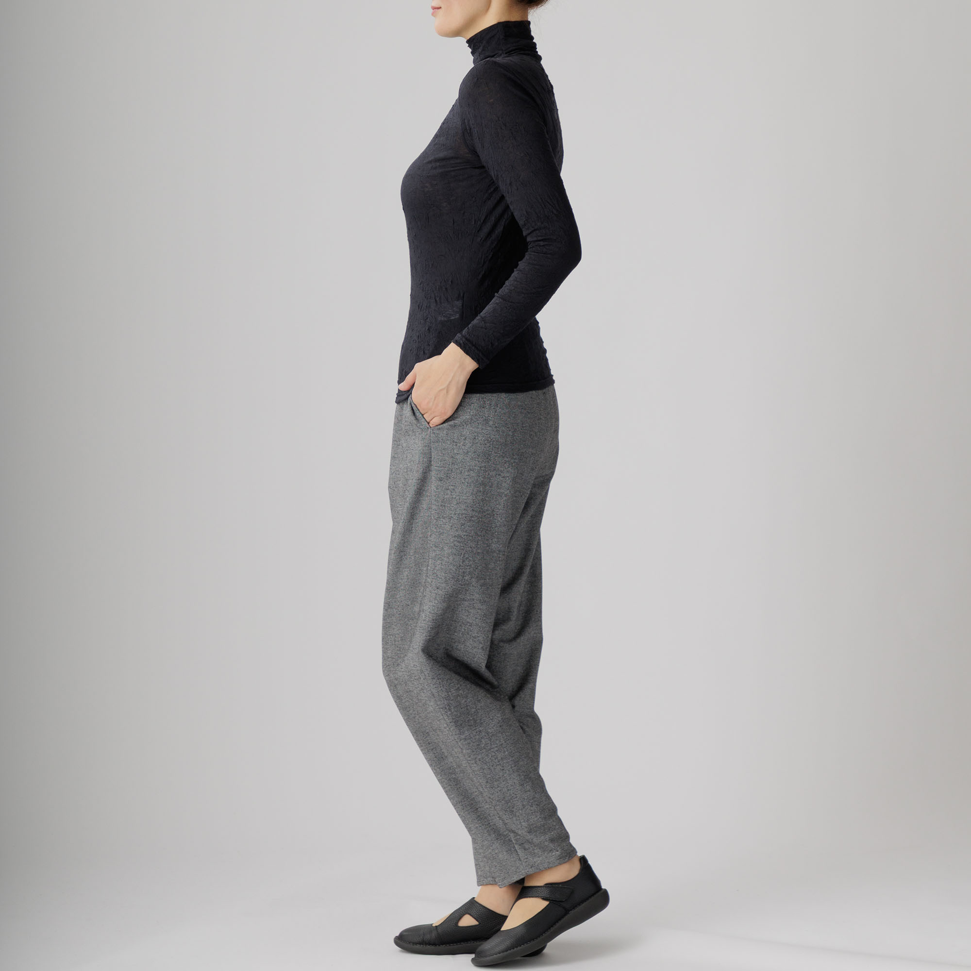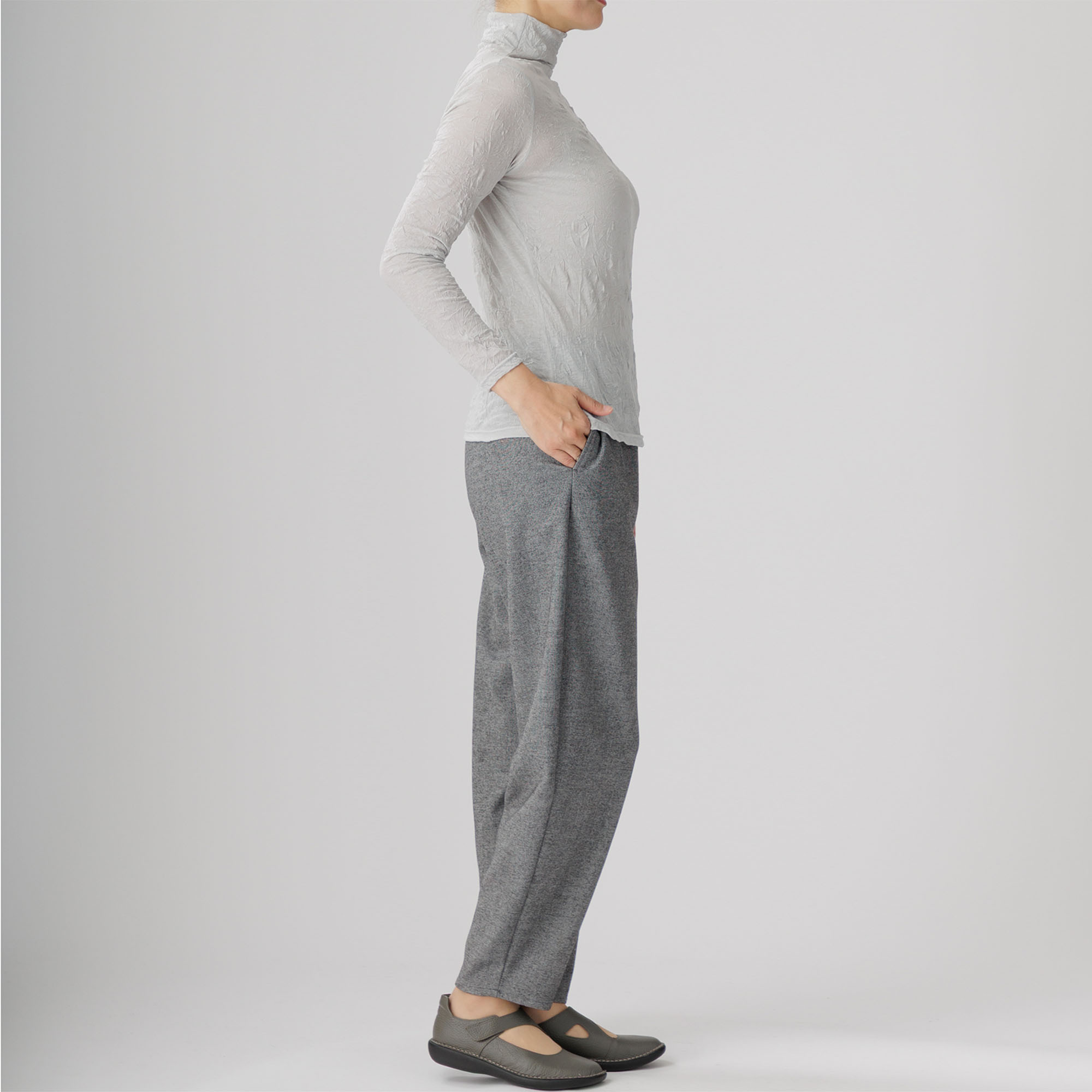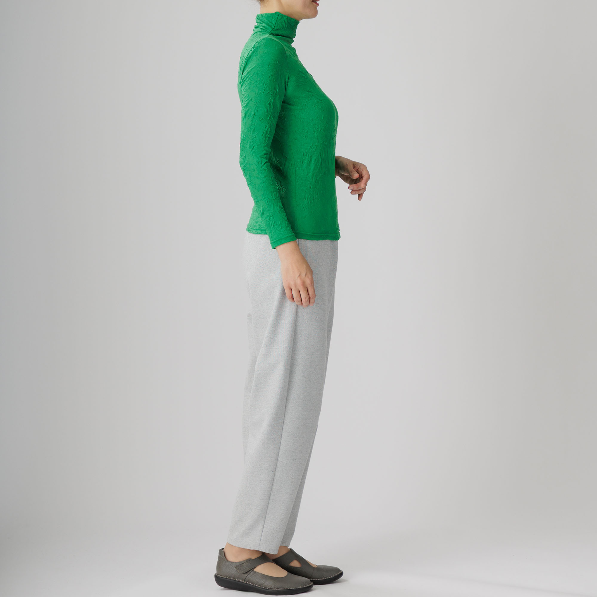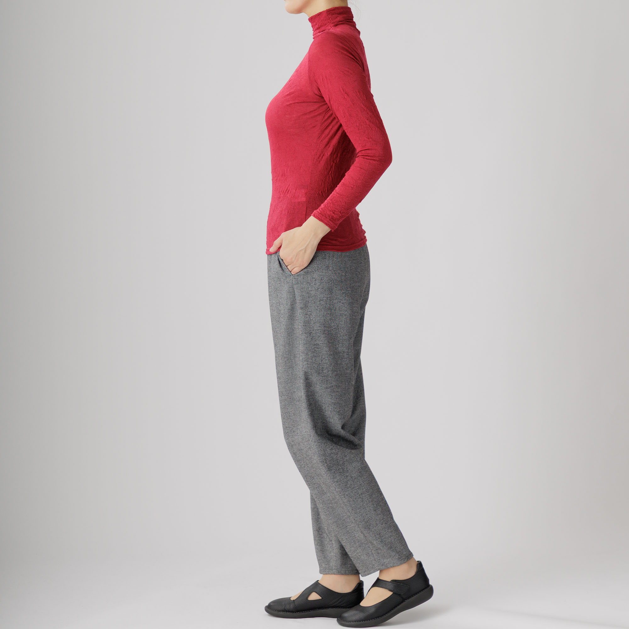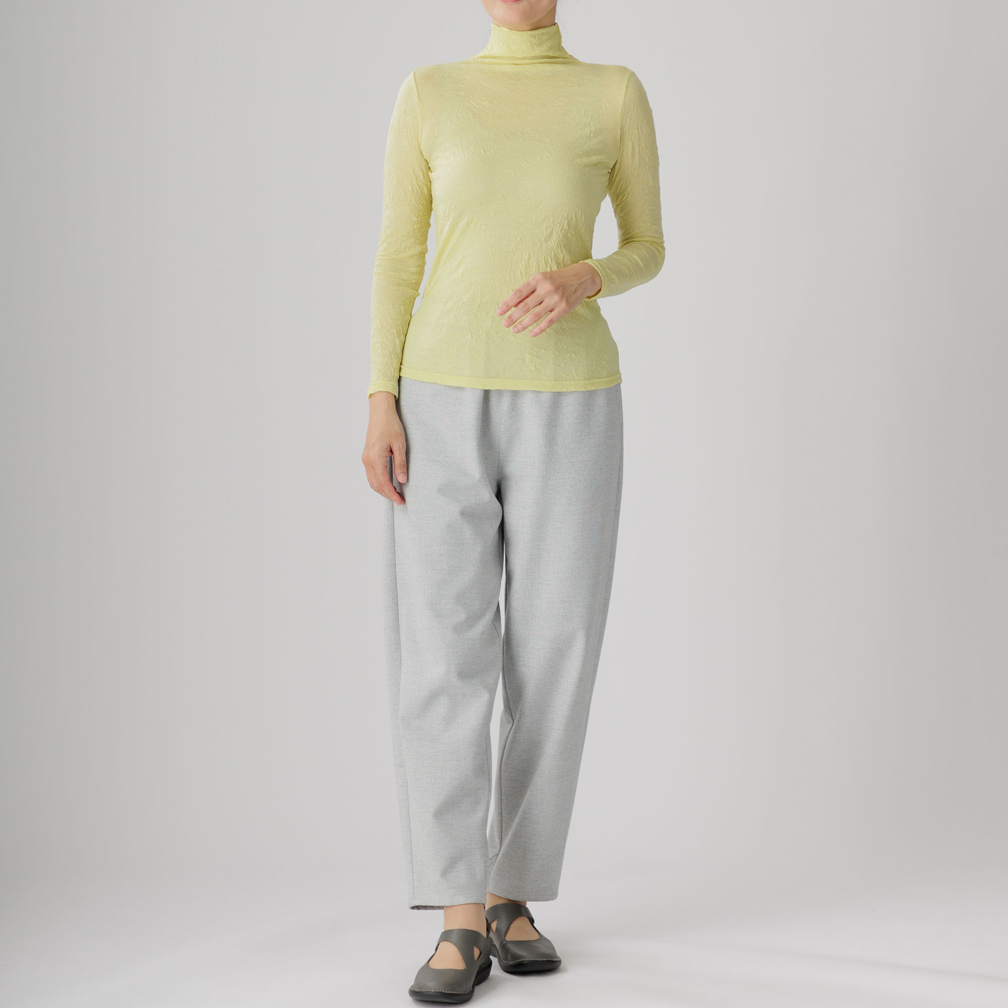 ワッシャー加工による味わい深いシワ感がセンスを放つ新作ハイネックインナーはいかがですか。