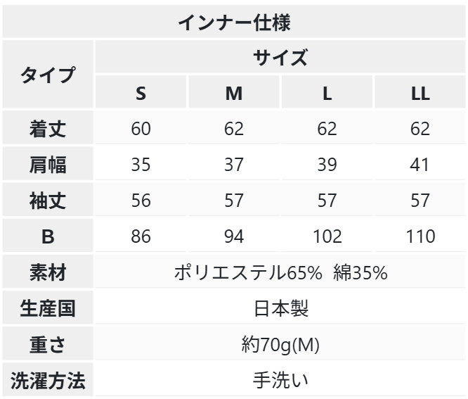 S/M/L/LLの4サイズをご用意しました。