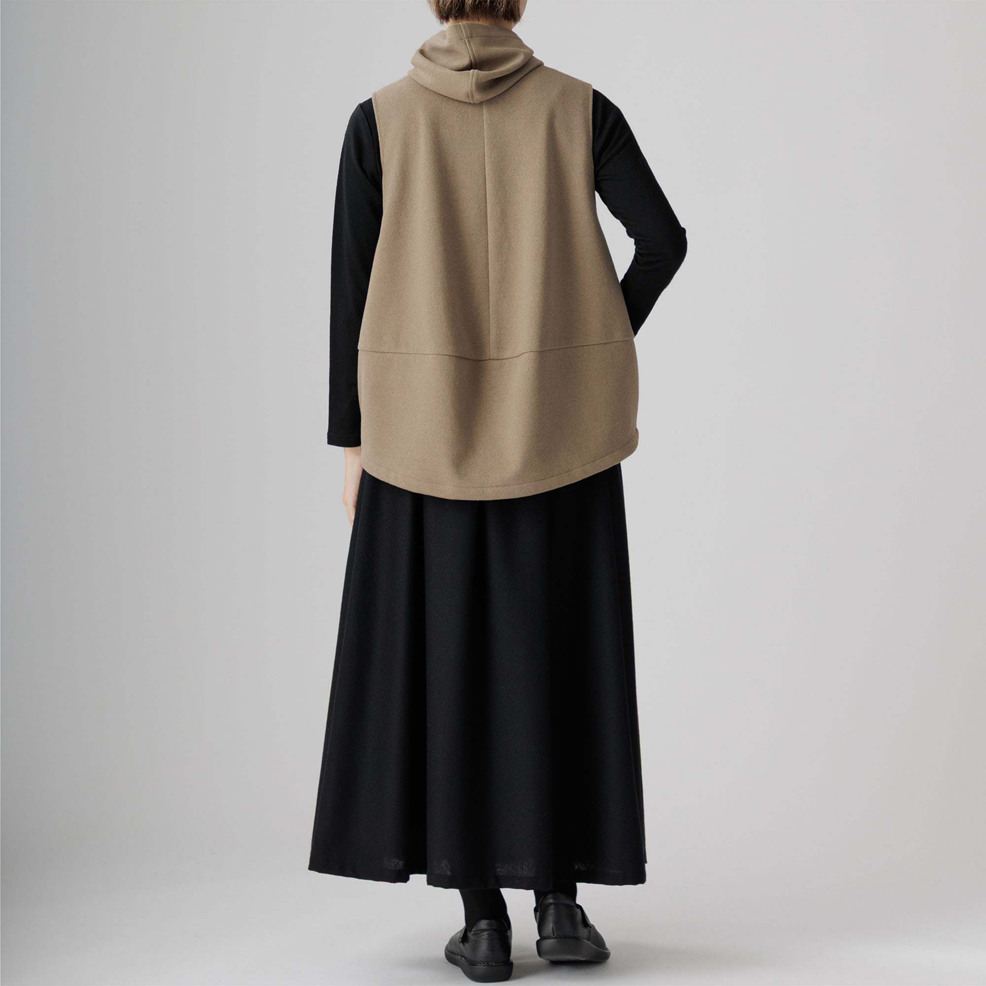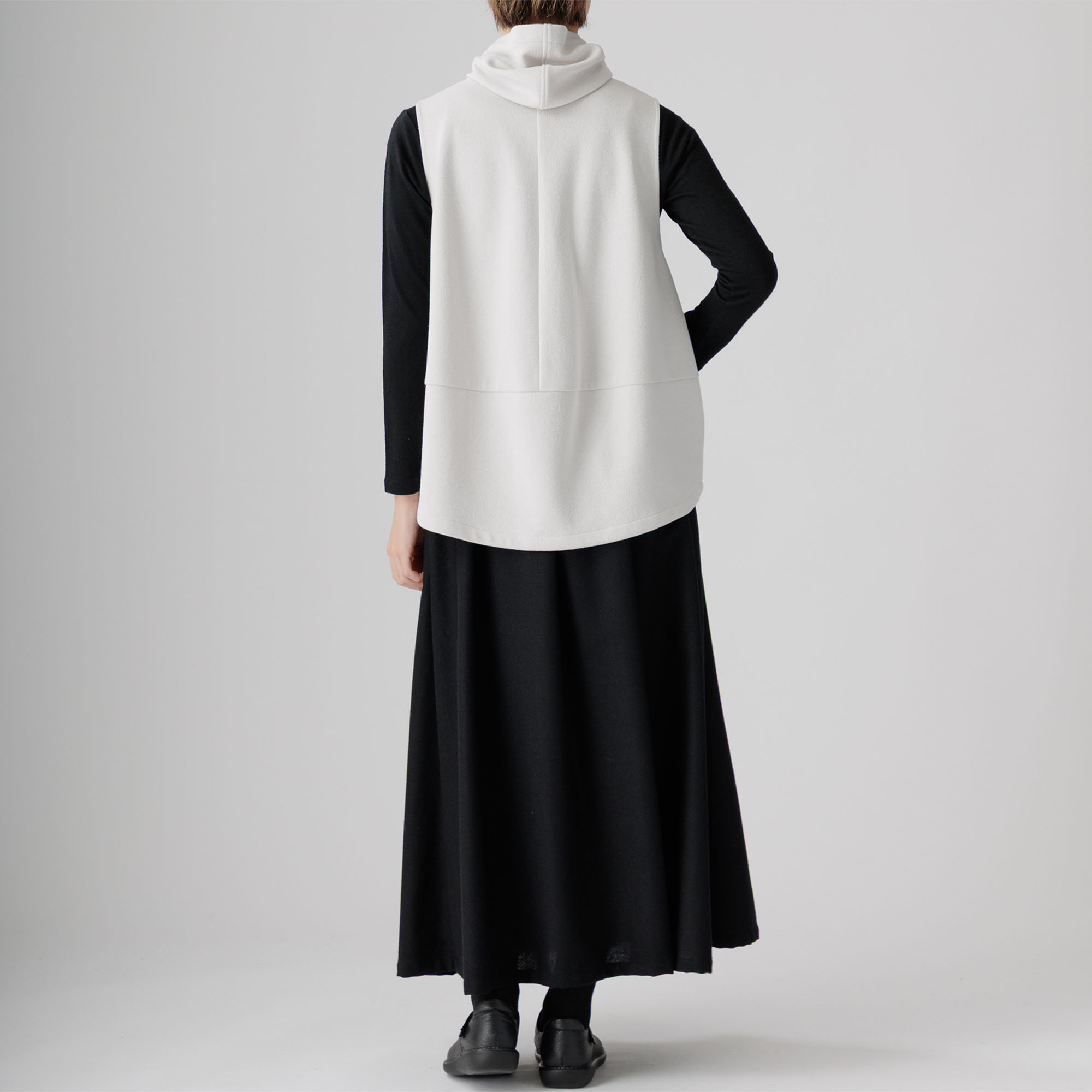 膨らみのあるブークレ糸を使用した、味わい深い表情と軽く快適な着心地が魅力のベストが新登場。