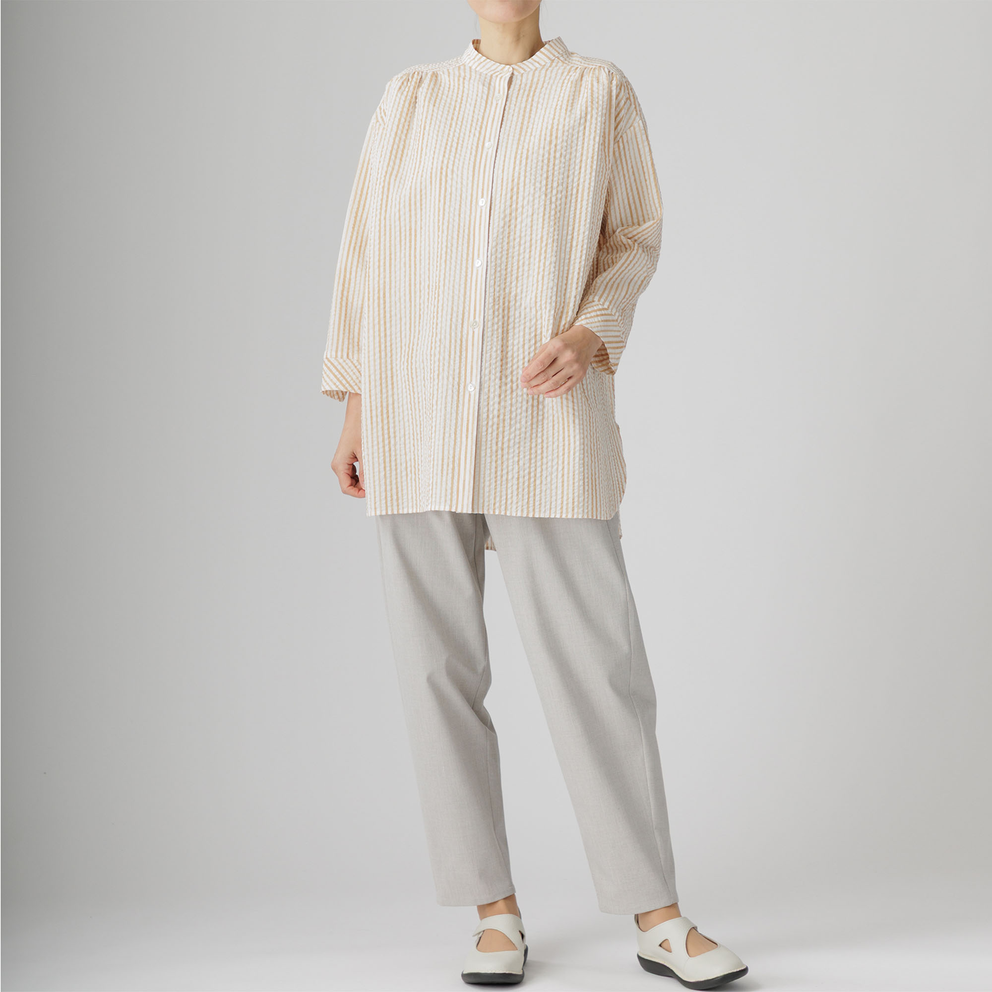 お手入れのしやすいアイロンいらずで、初夏にかけての装いとしてもおすすめです。