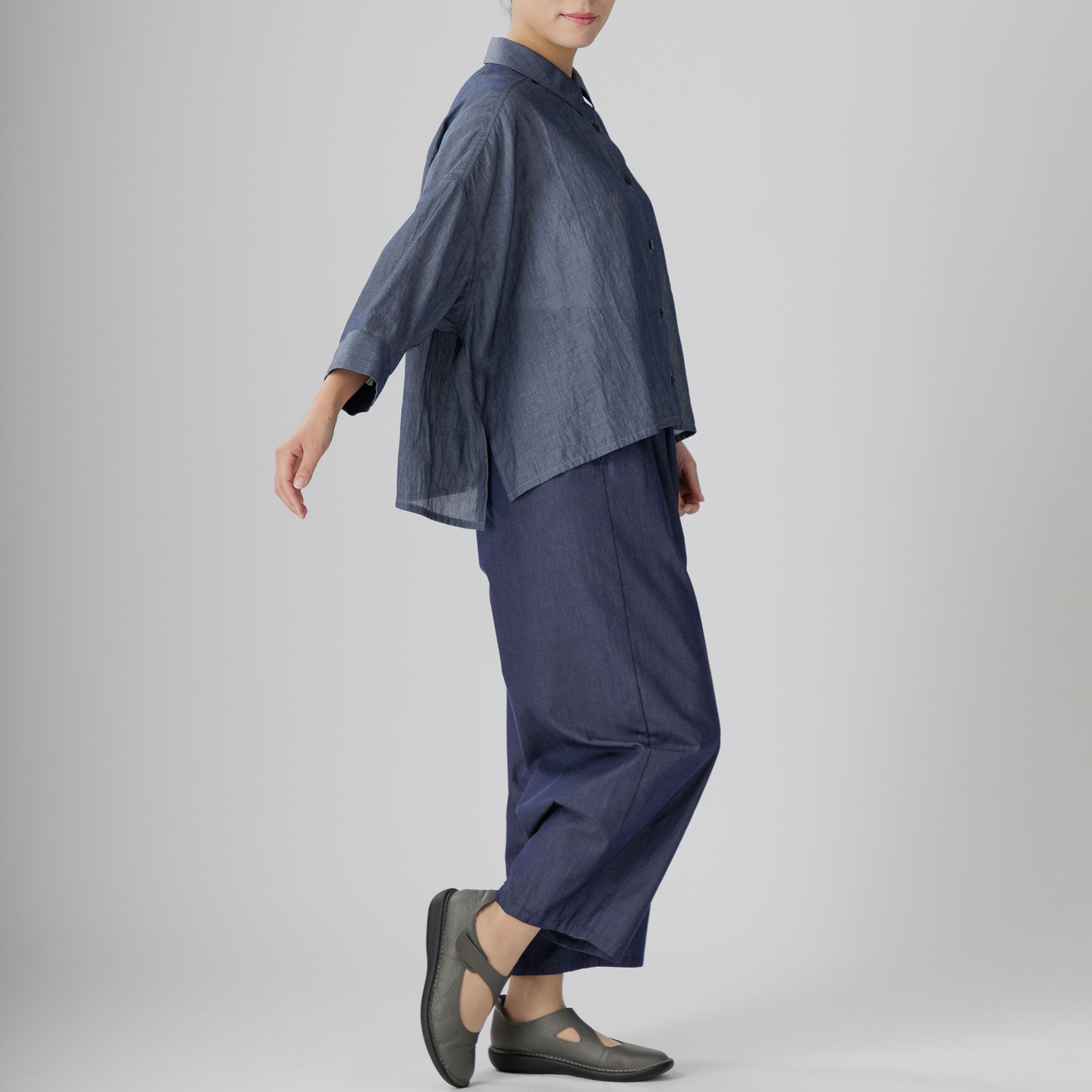 程よい透け感の薄手デニムを使用しており、軽く爽やかな着心地が魅力。