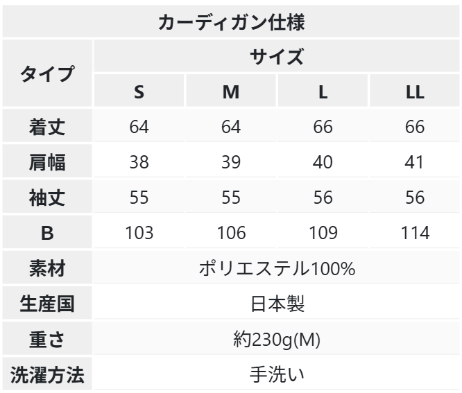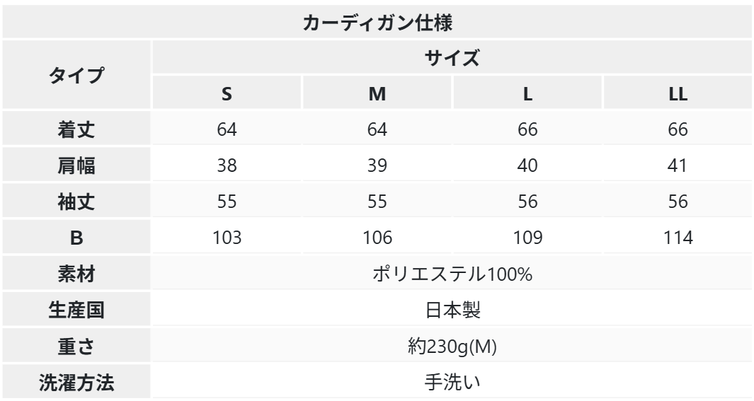 S/M/L/LLの4サイズをご用意しました。