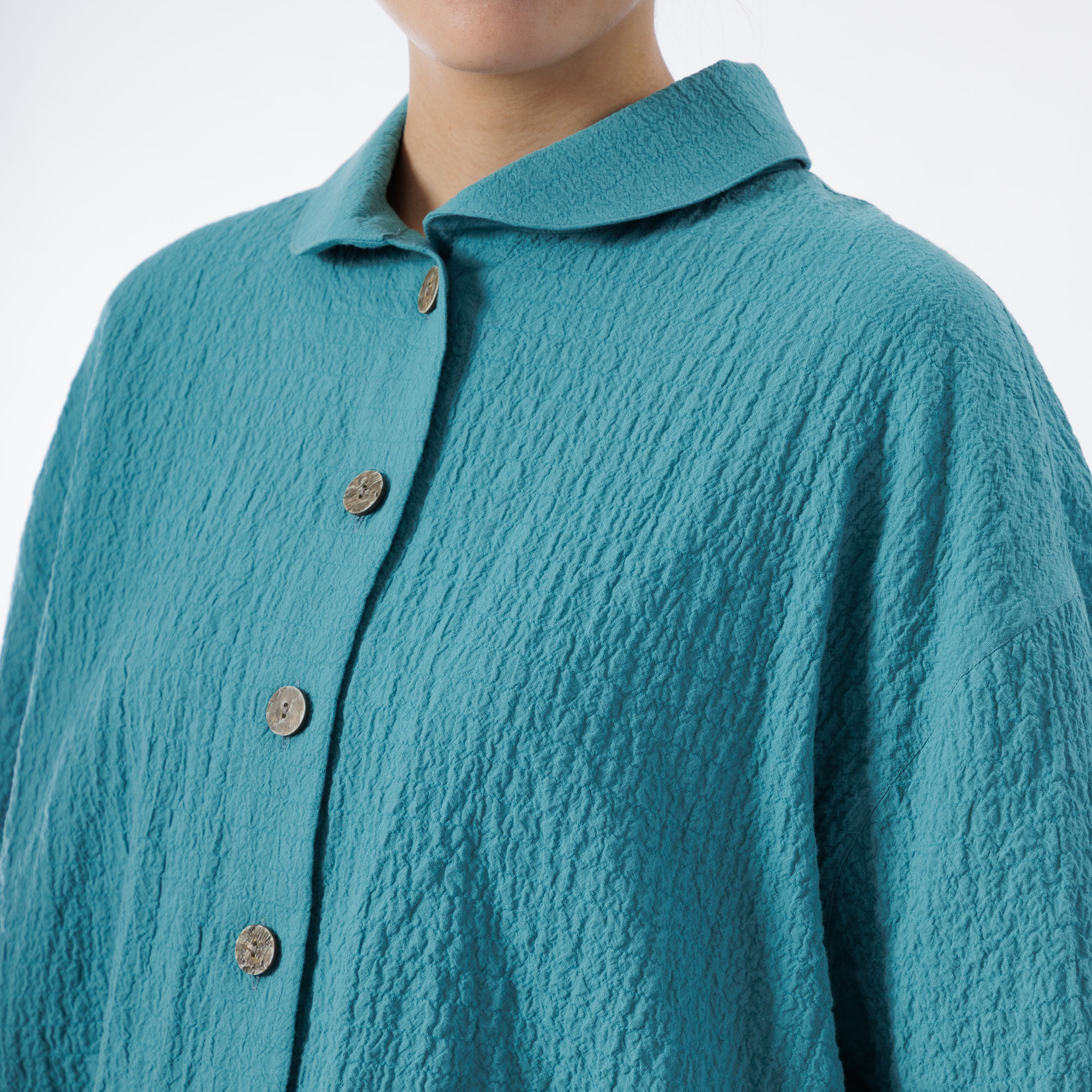 綿を主素材とした生地にシャーリングと洗いをかけて生み出した、
