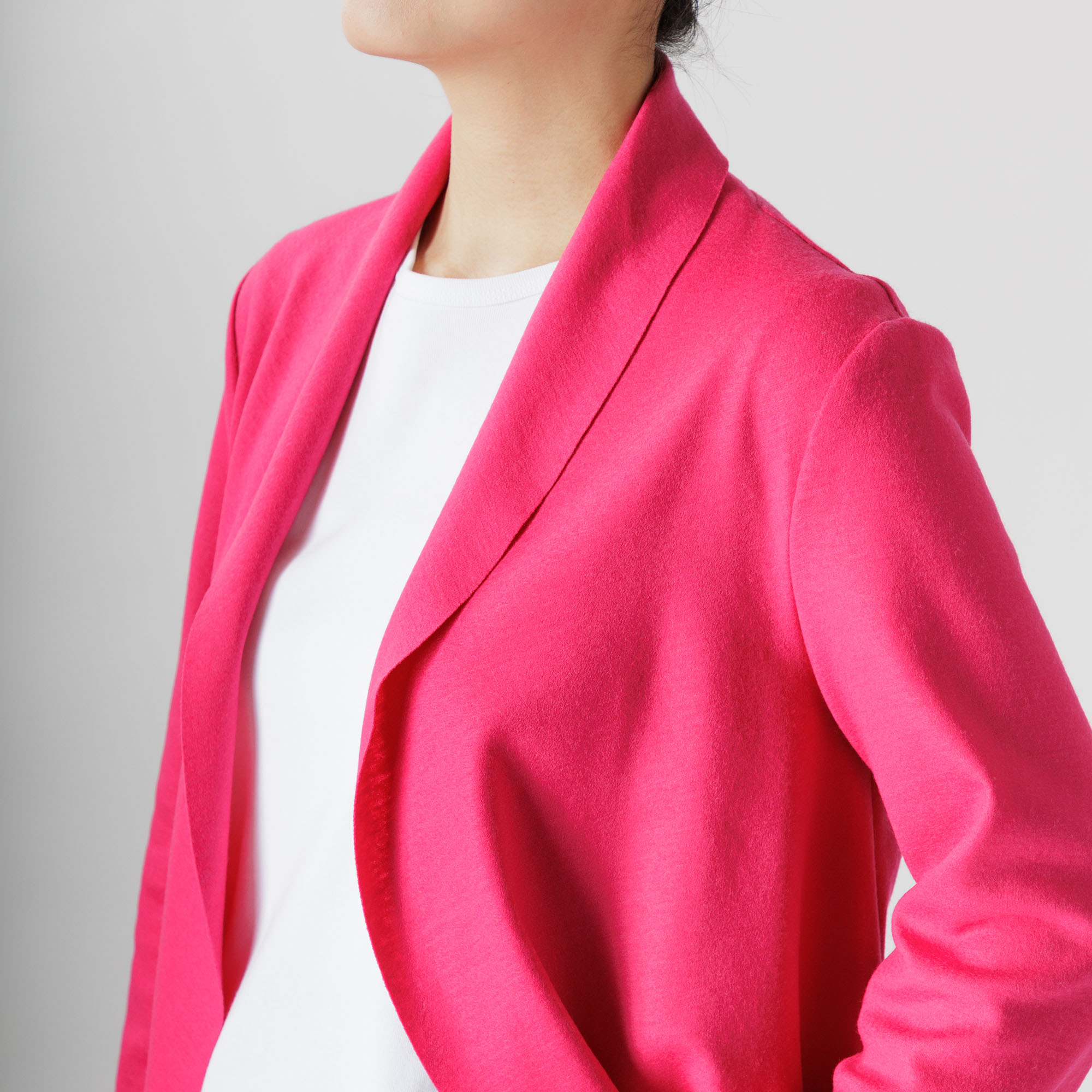 装いを艶やかに彩る圧縮ウールのジャケットはいかがですか。