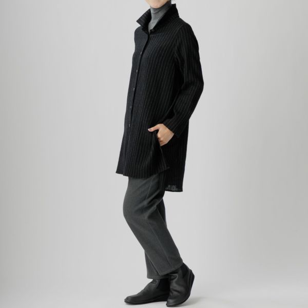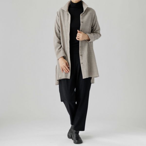 空気感のある生地は柔らかく軽い着心地とともに暖かさも抜群で肌寒い季節の装いに最適。