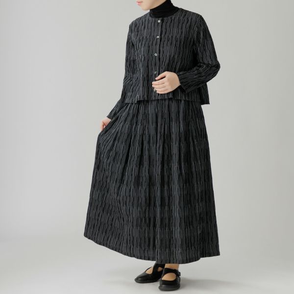 波柄ストライプが圧倒的な個性を放つショート丈ブラウス。