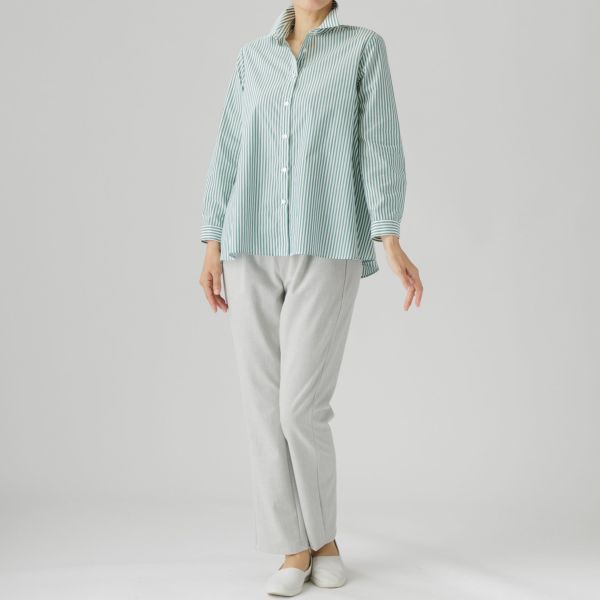 カジュアルな装いを爽やかに彩るストライプブラウスが新登場。