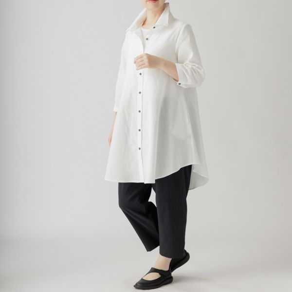 麻綿素材のナチュラルな風合いがお楽しみいただけるロングブラウスが新登場。