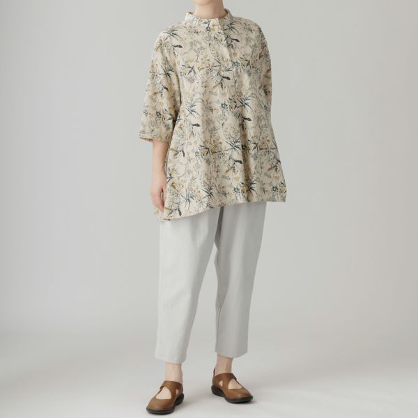 こちらは味わい深い色彩の草花プリントが魅力の新作ブラウス。