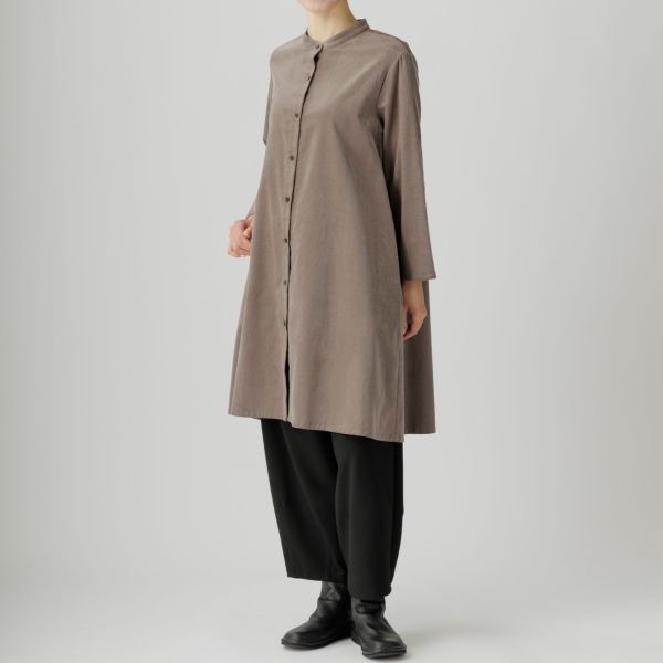 シンプルなデザインながらスタイリッシュな着姿が魅力のコーデュロイロングブラウスが新登場。