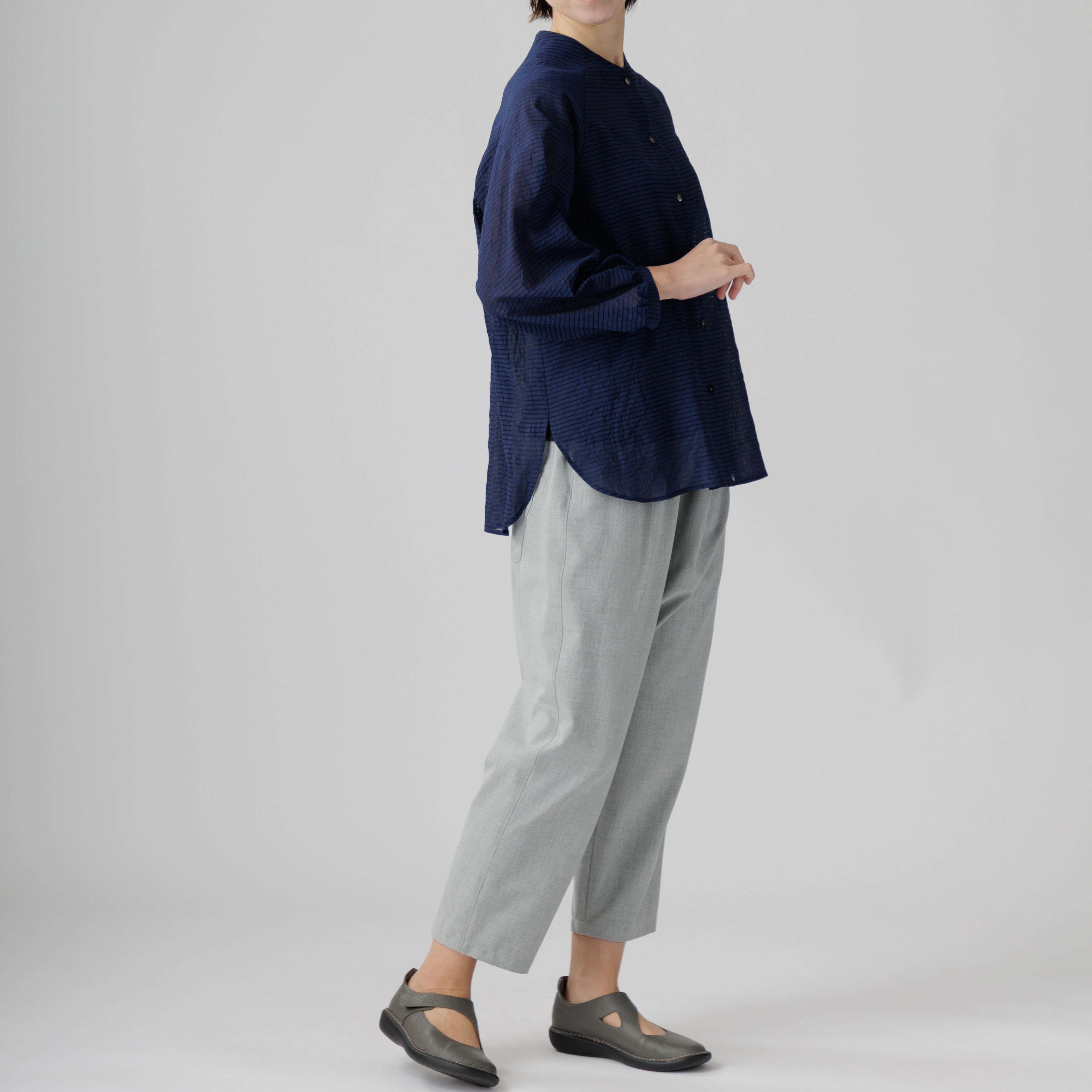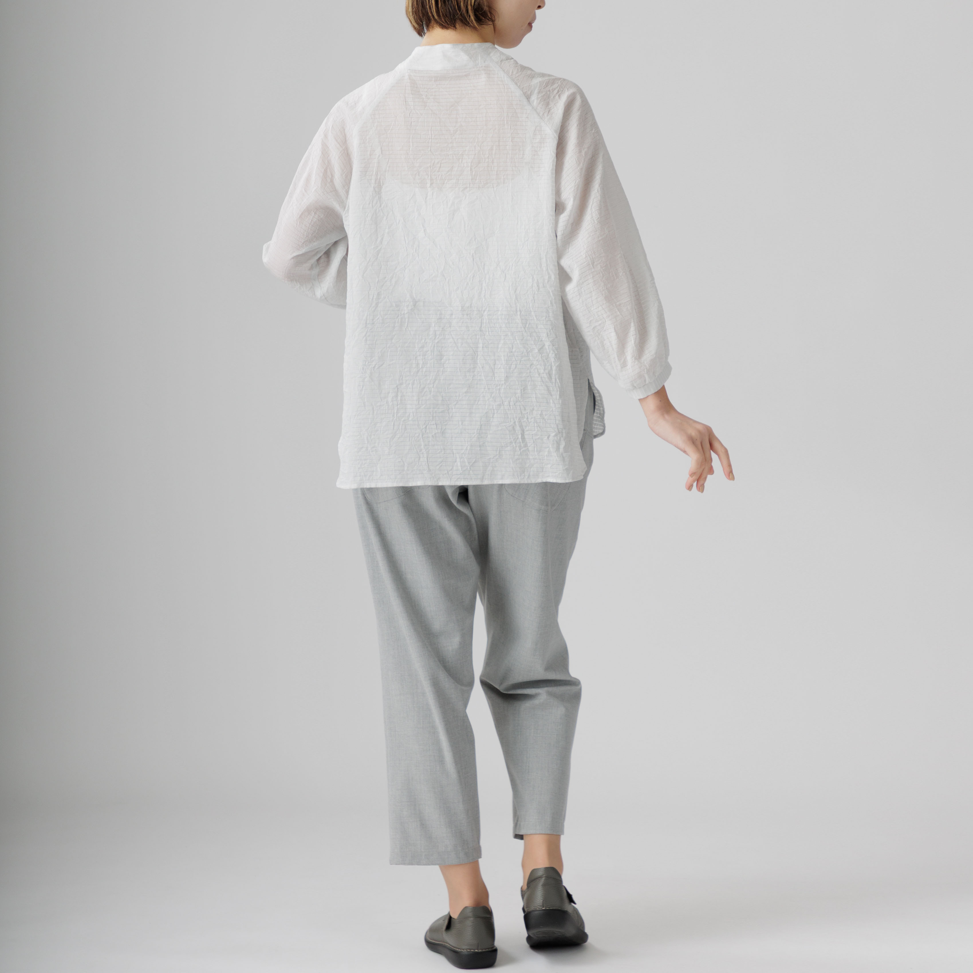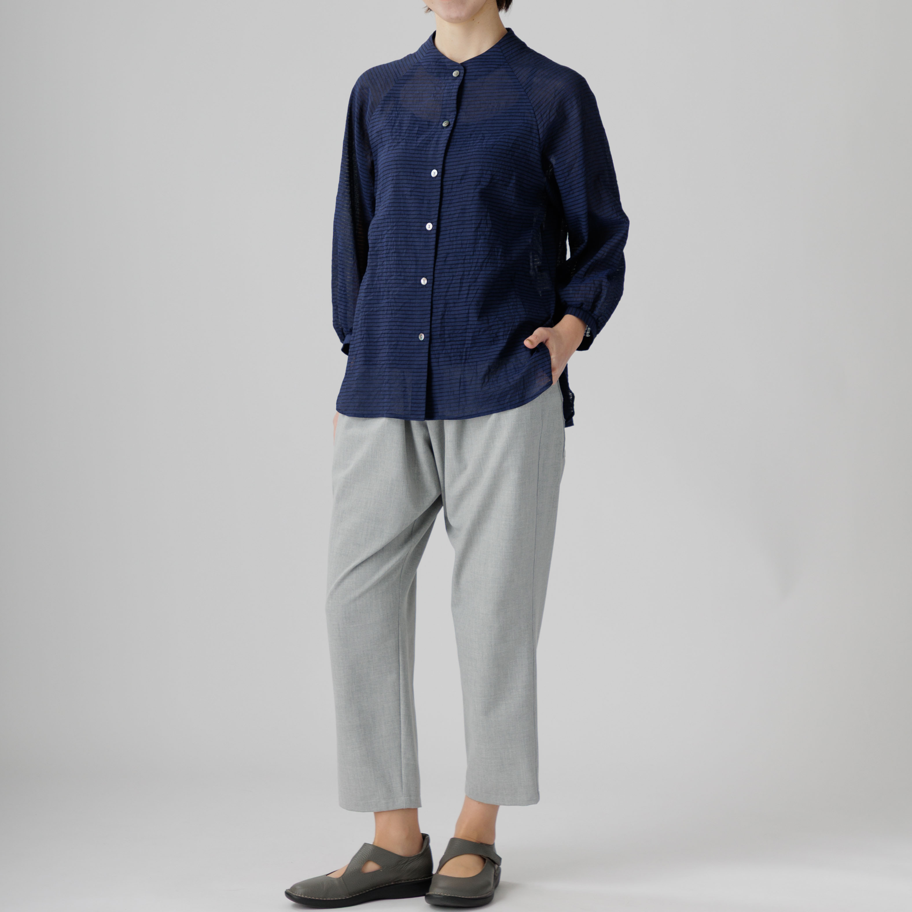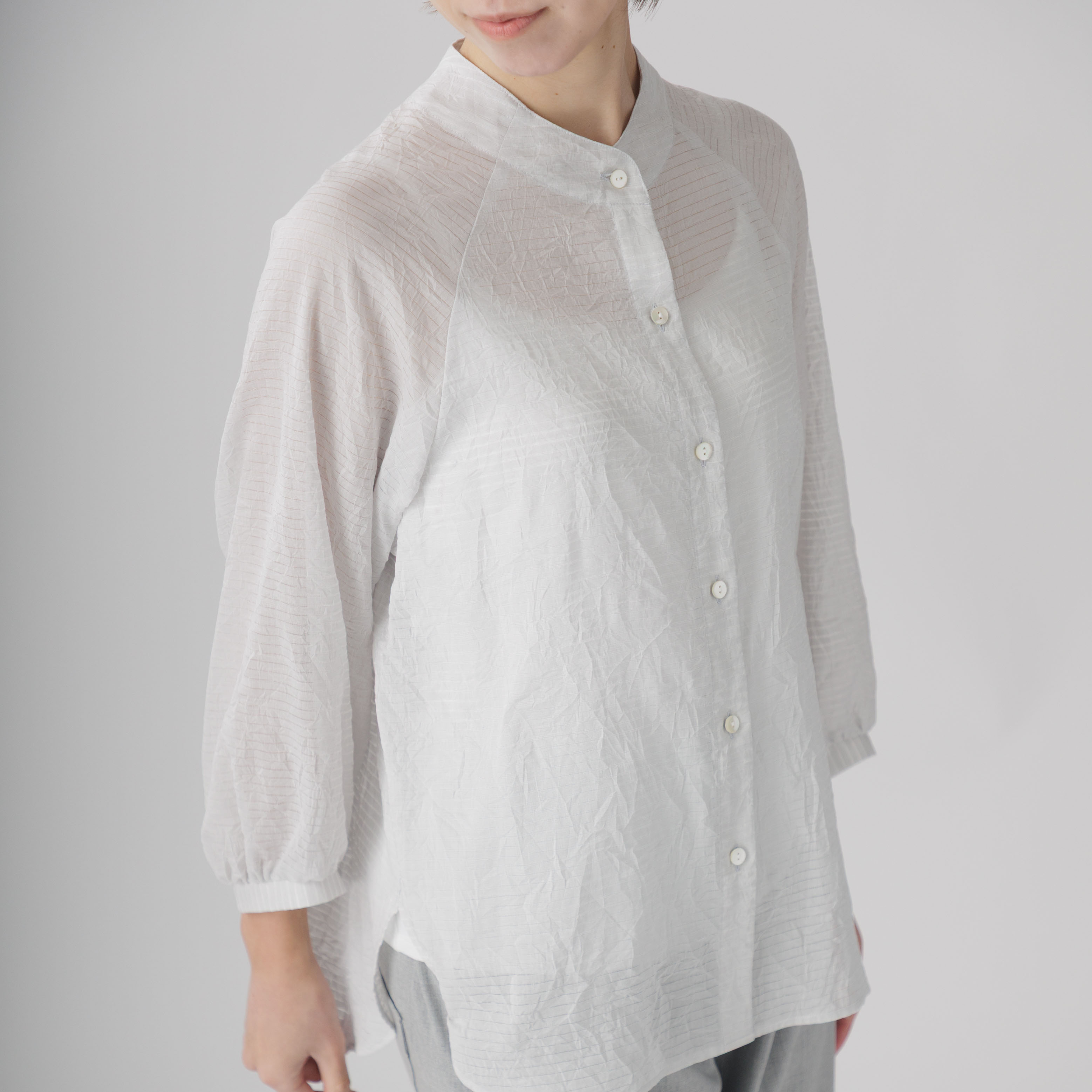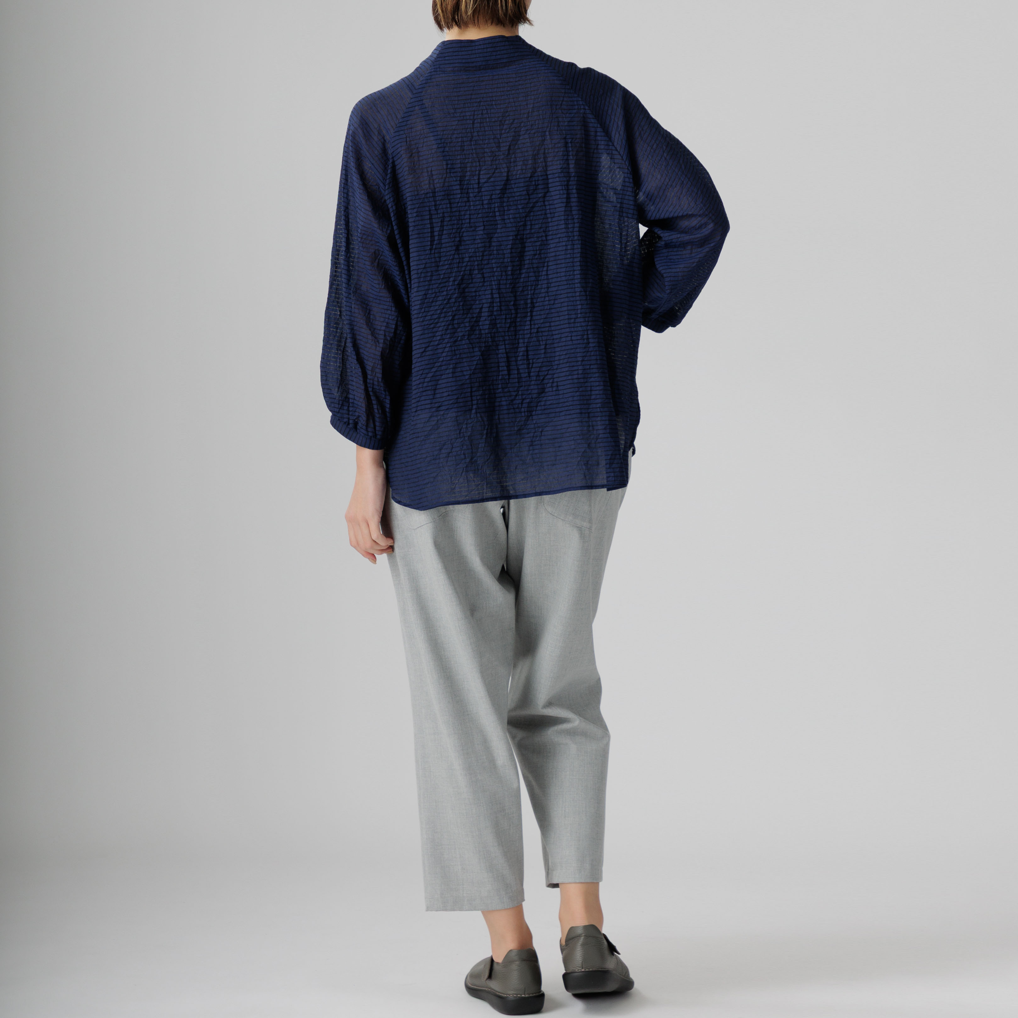 こちらのブラウスは薄手の綿100%を使用した涼しげなタッチが特徴の新作アイテム。