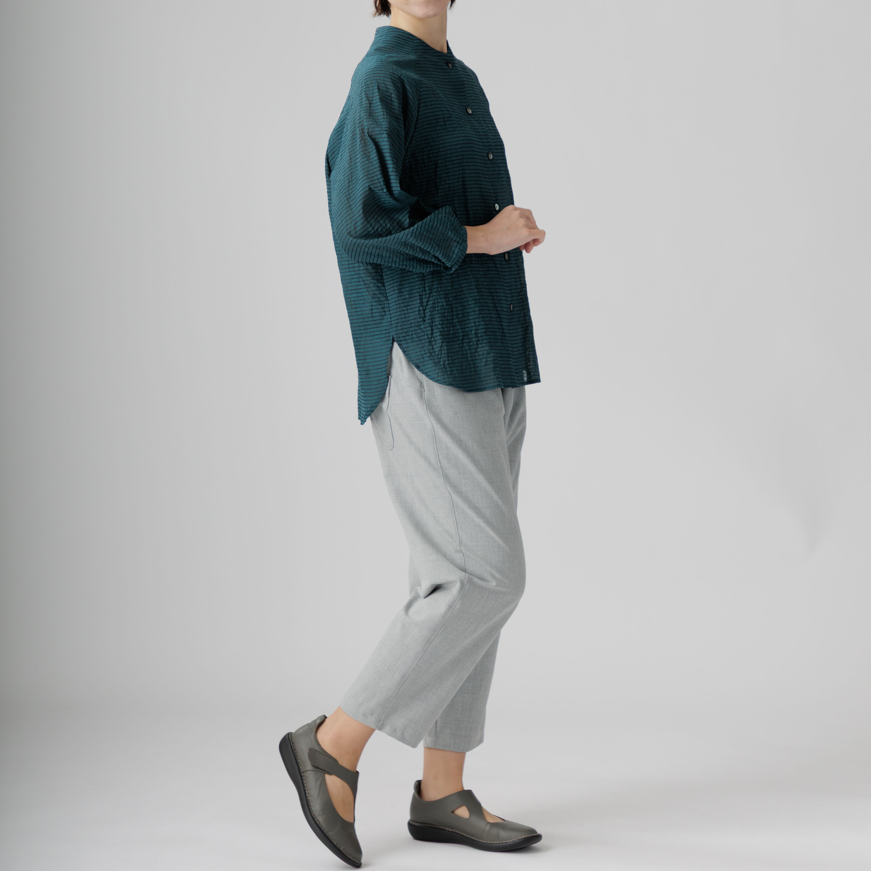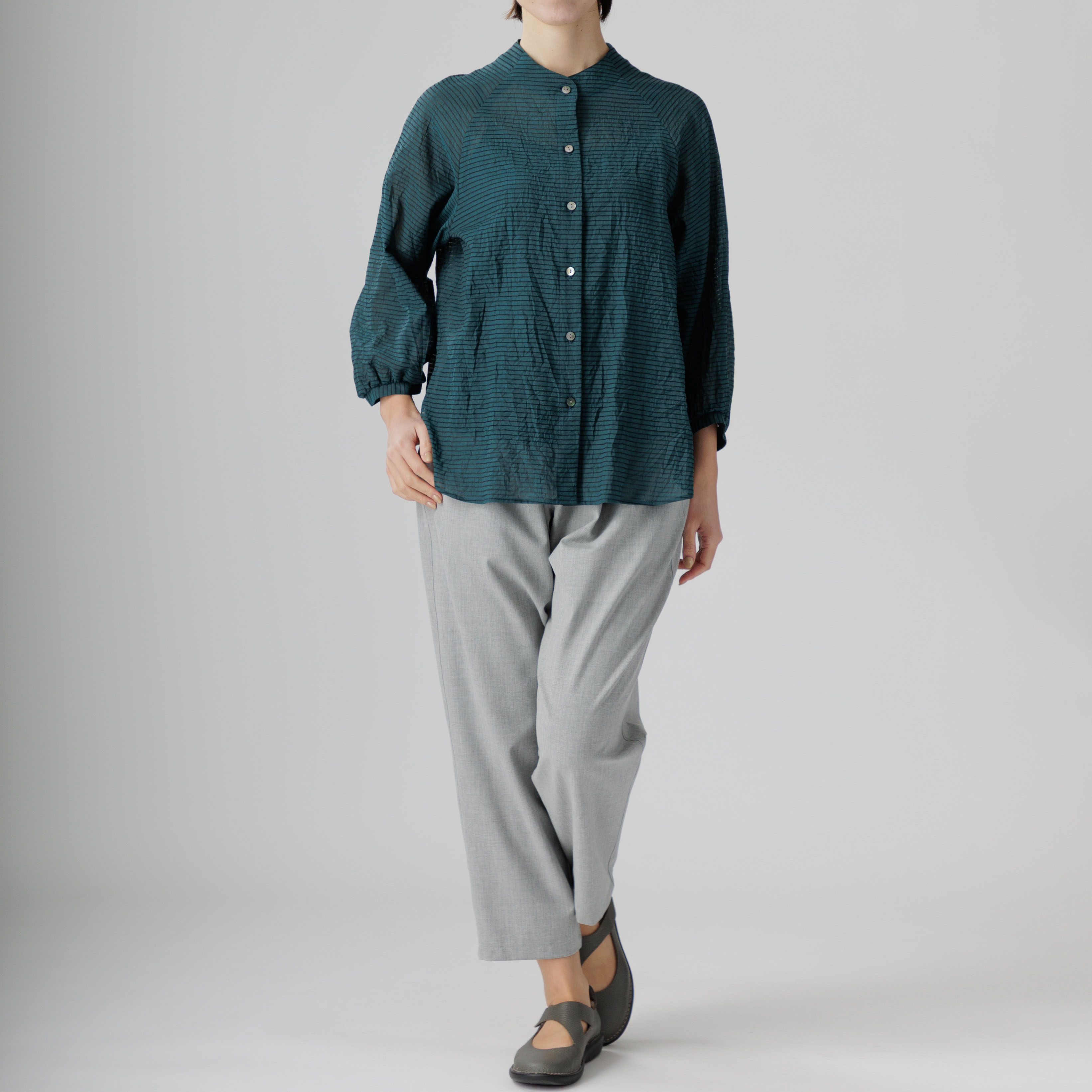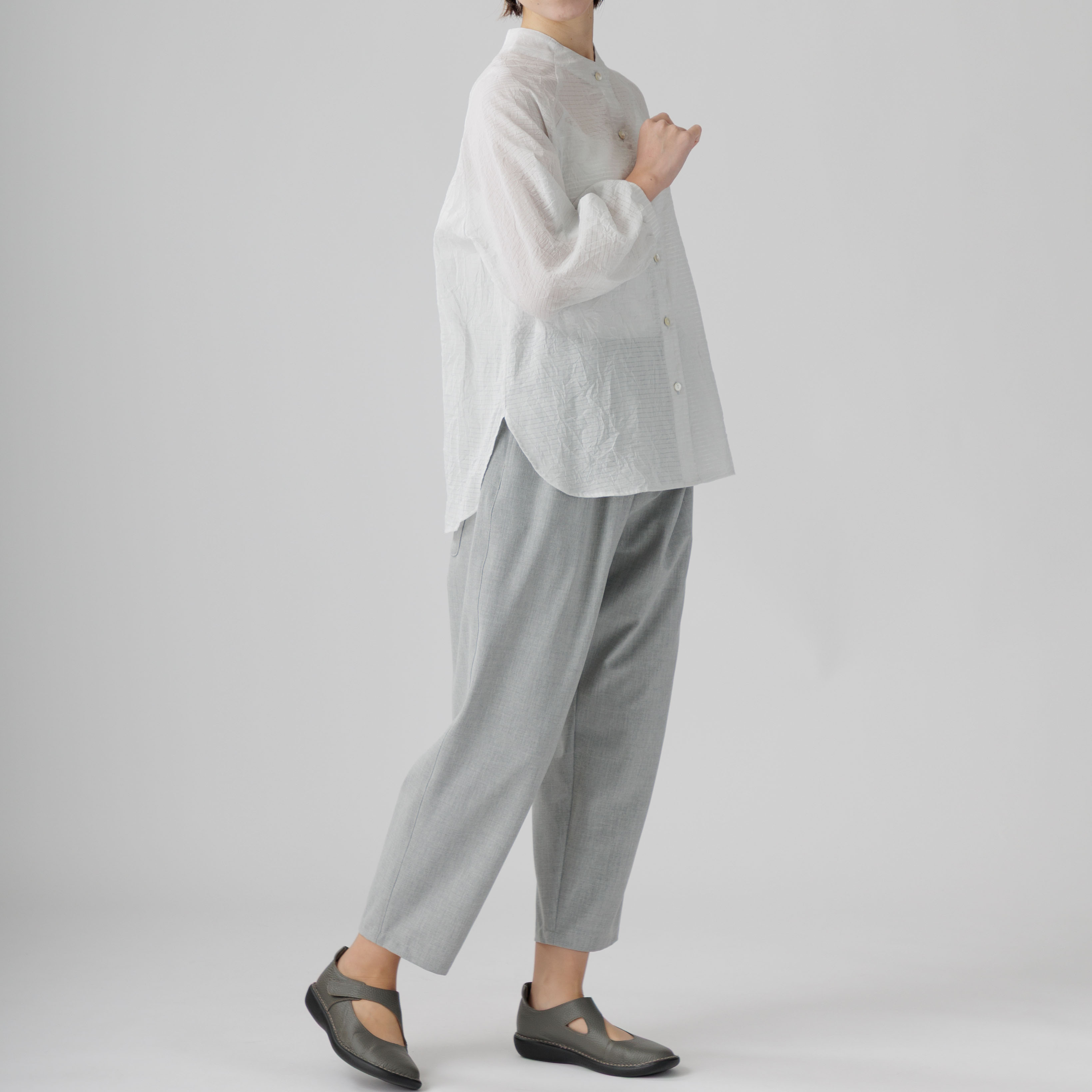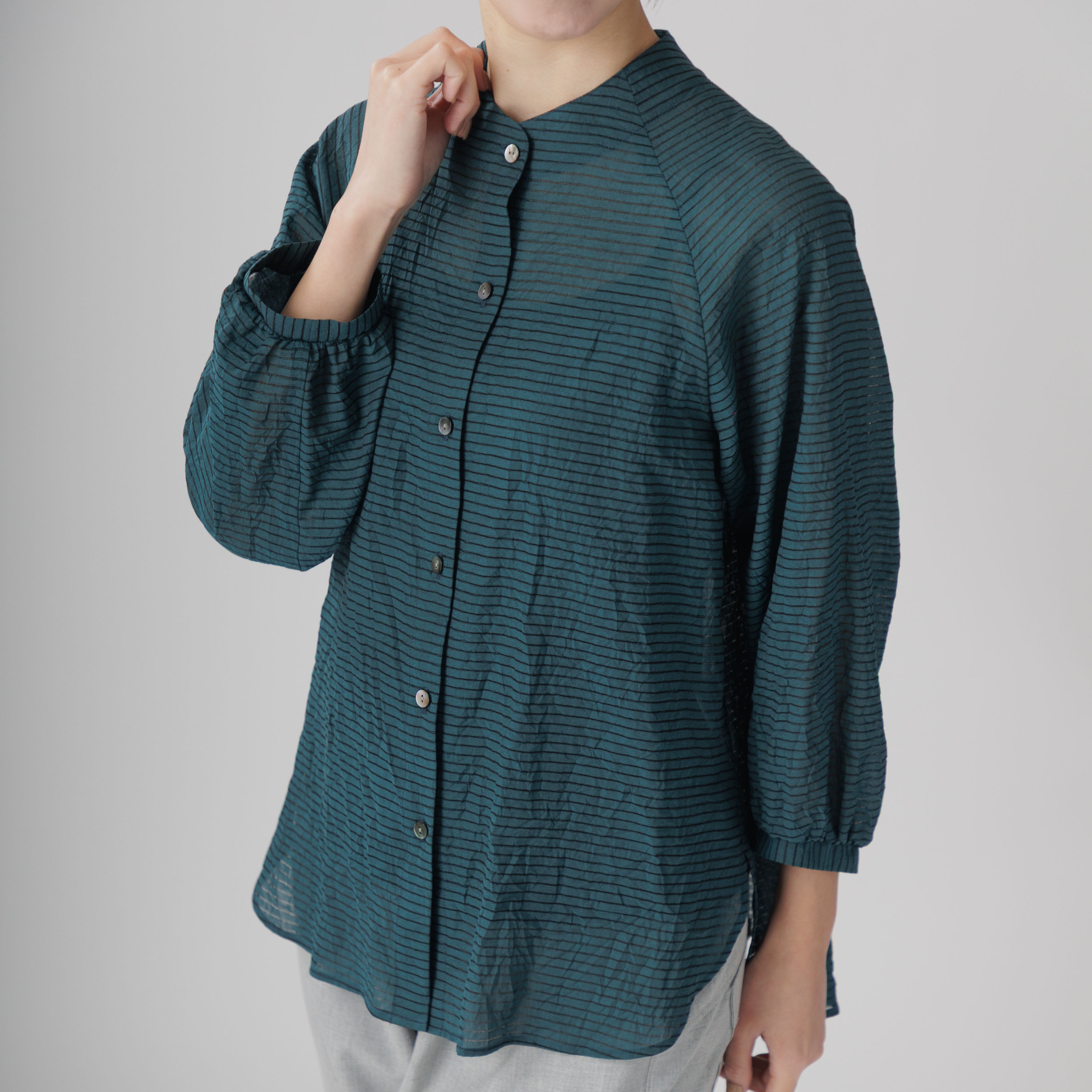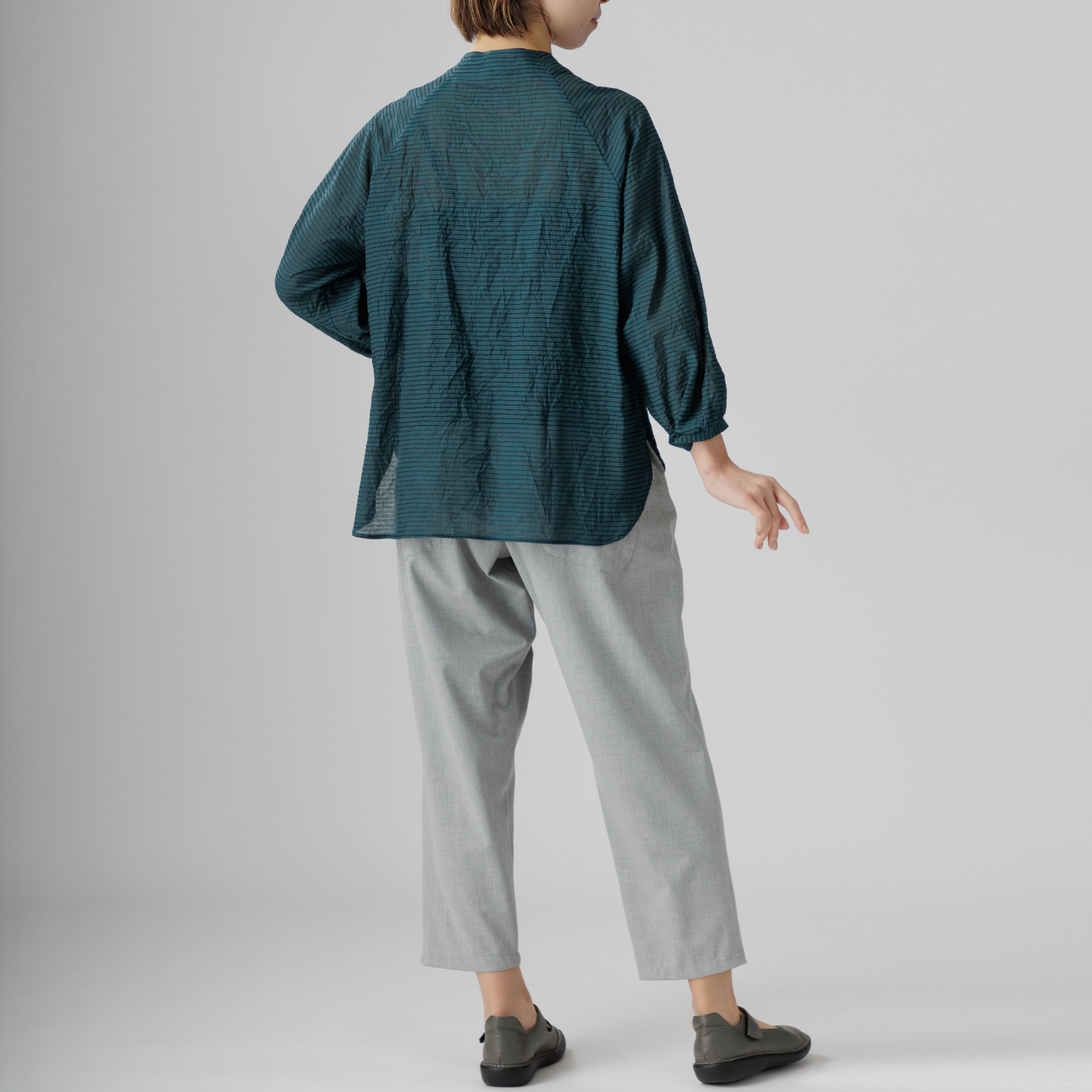こちらのブラウスは薄手の綿100%を使用した涼しげなタッチが特徴の新作アイテム。