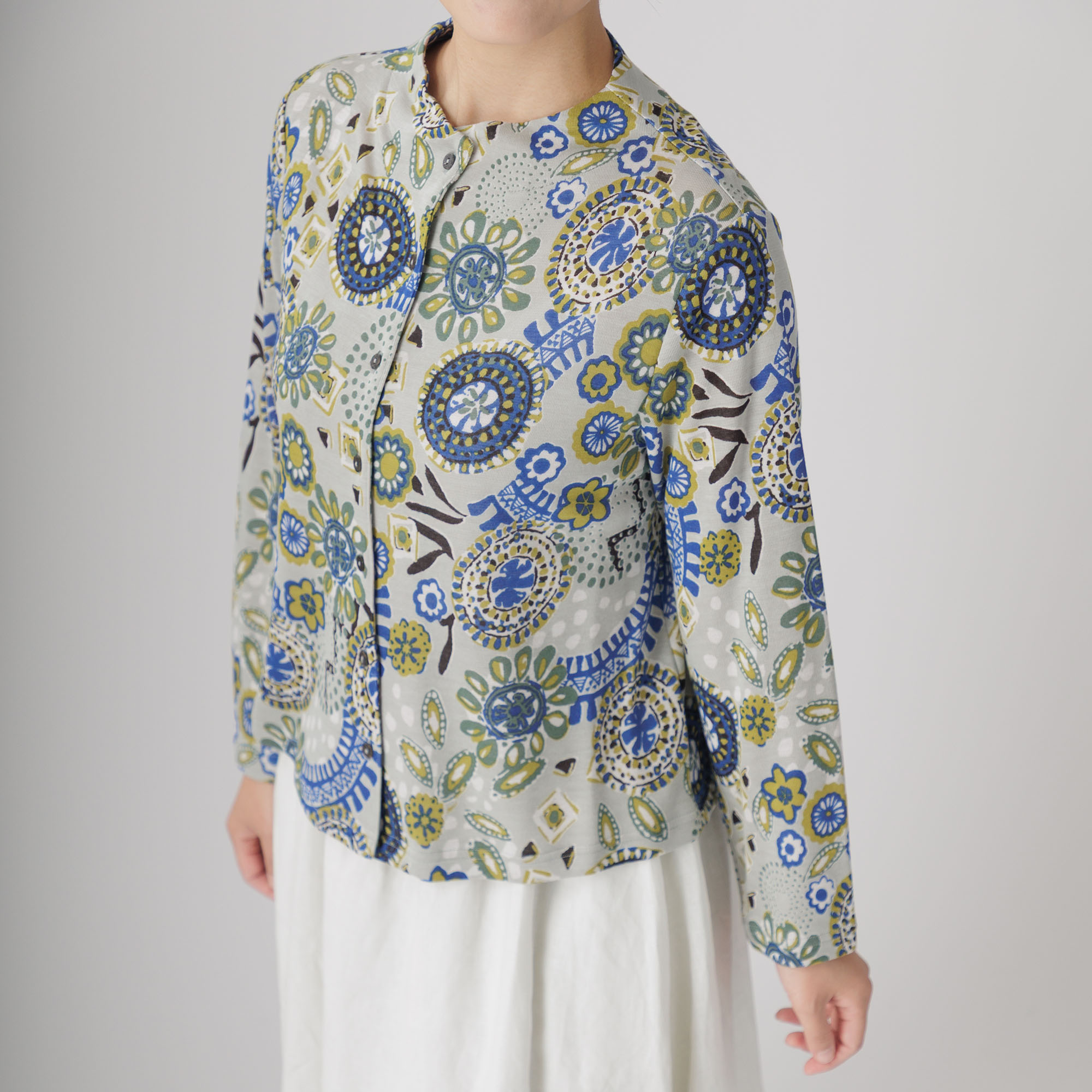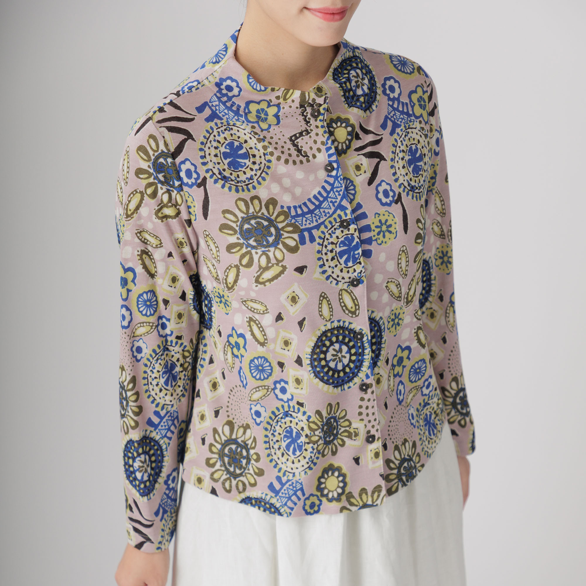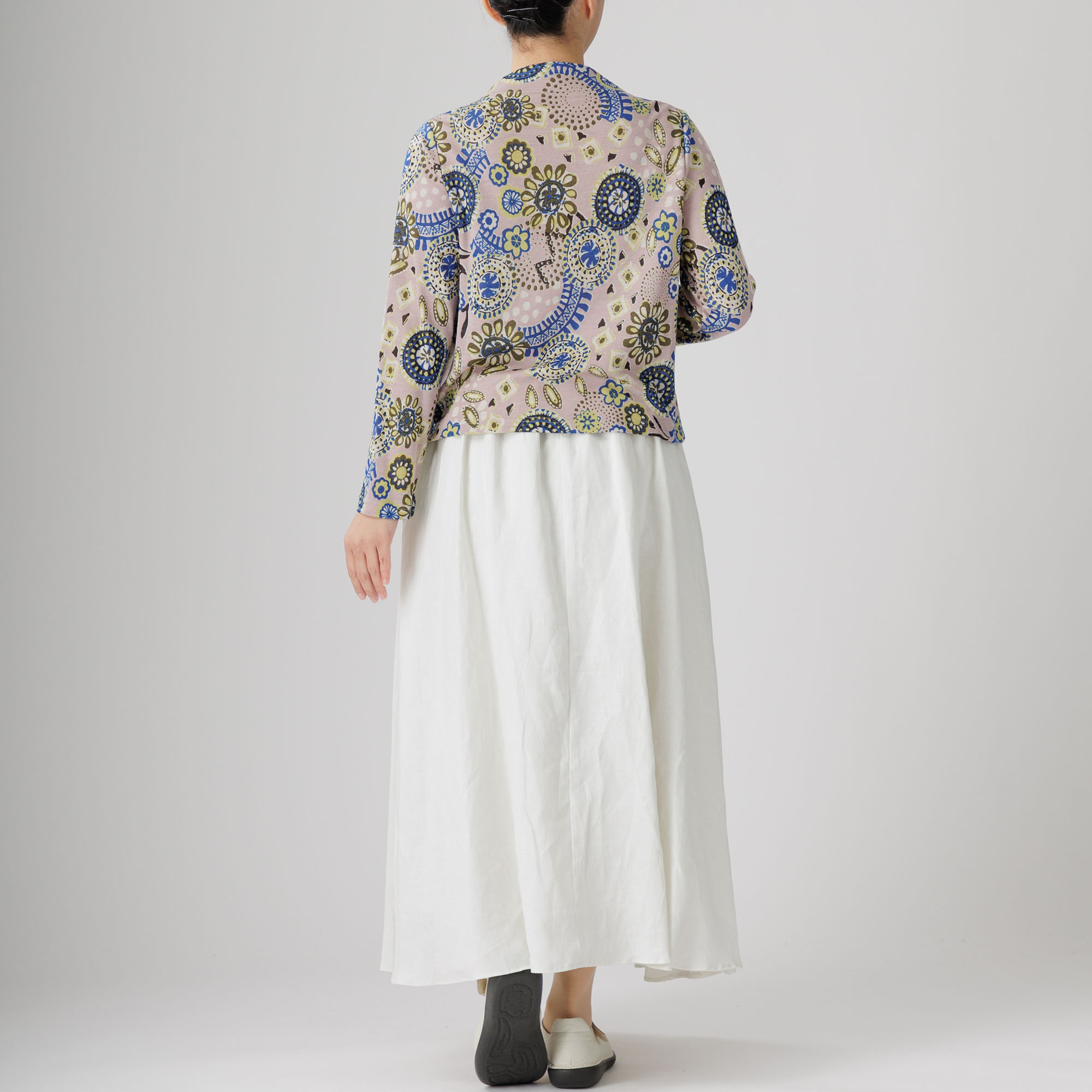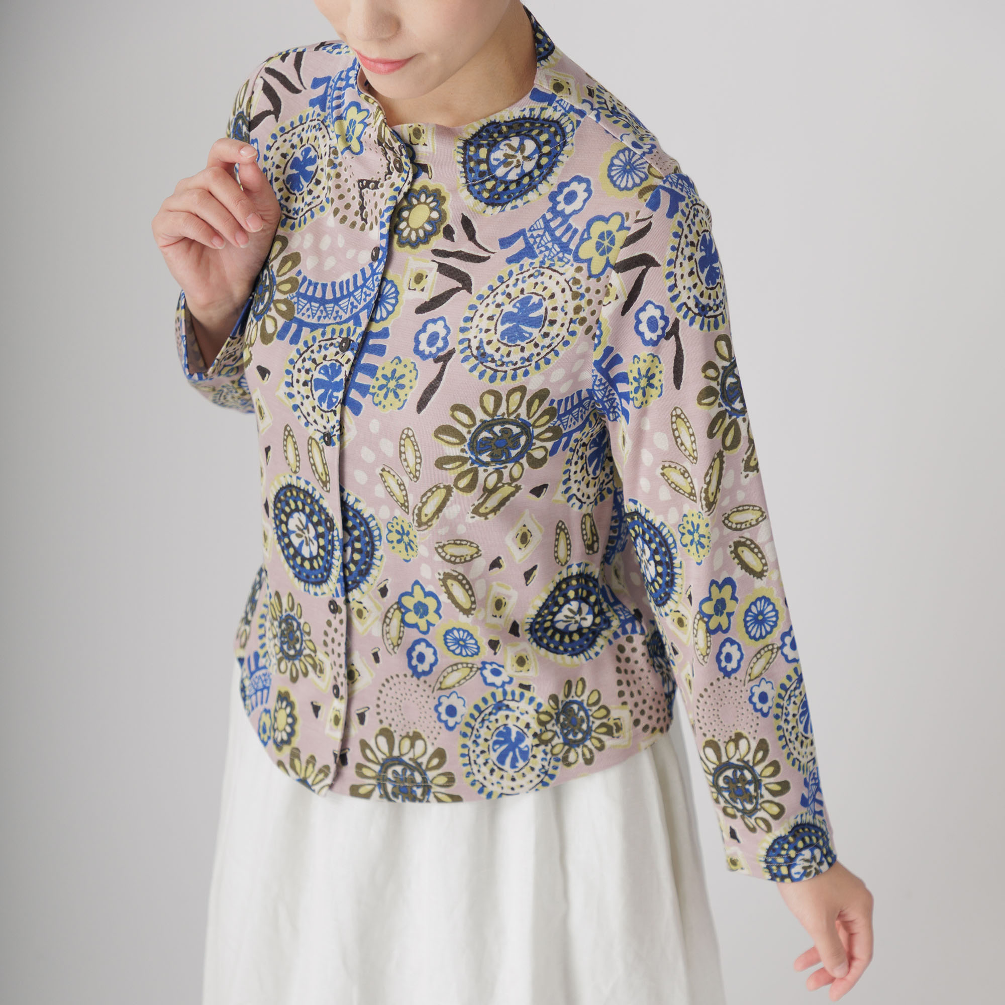 こちらは春の装いに最適な優しい色彩が楽しめる手捺染プリントカーディガンで、