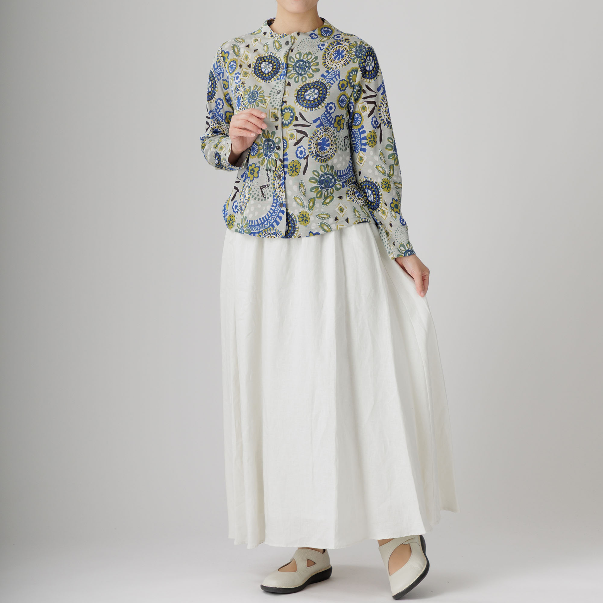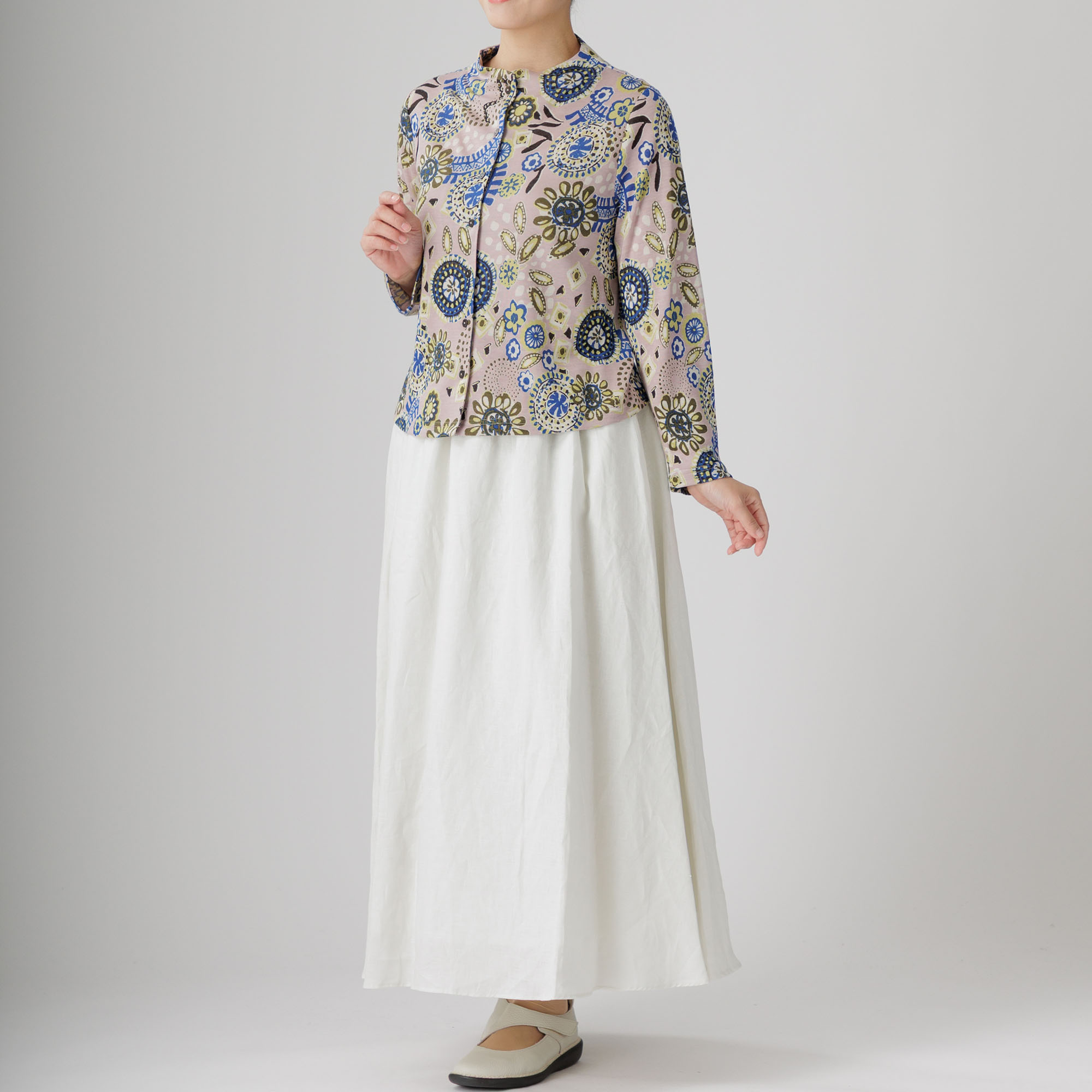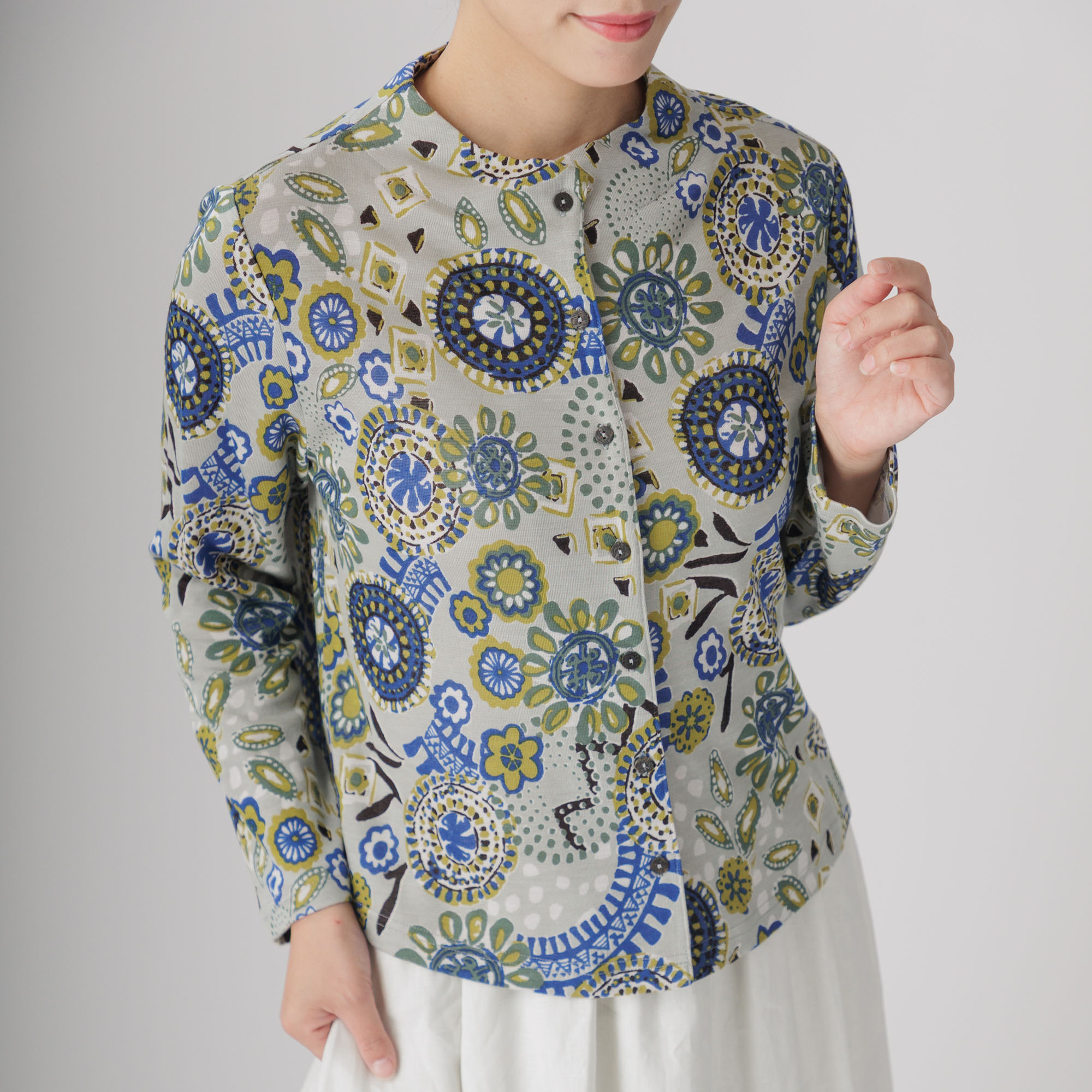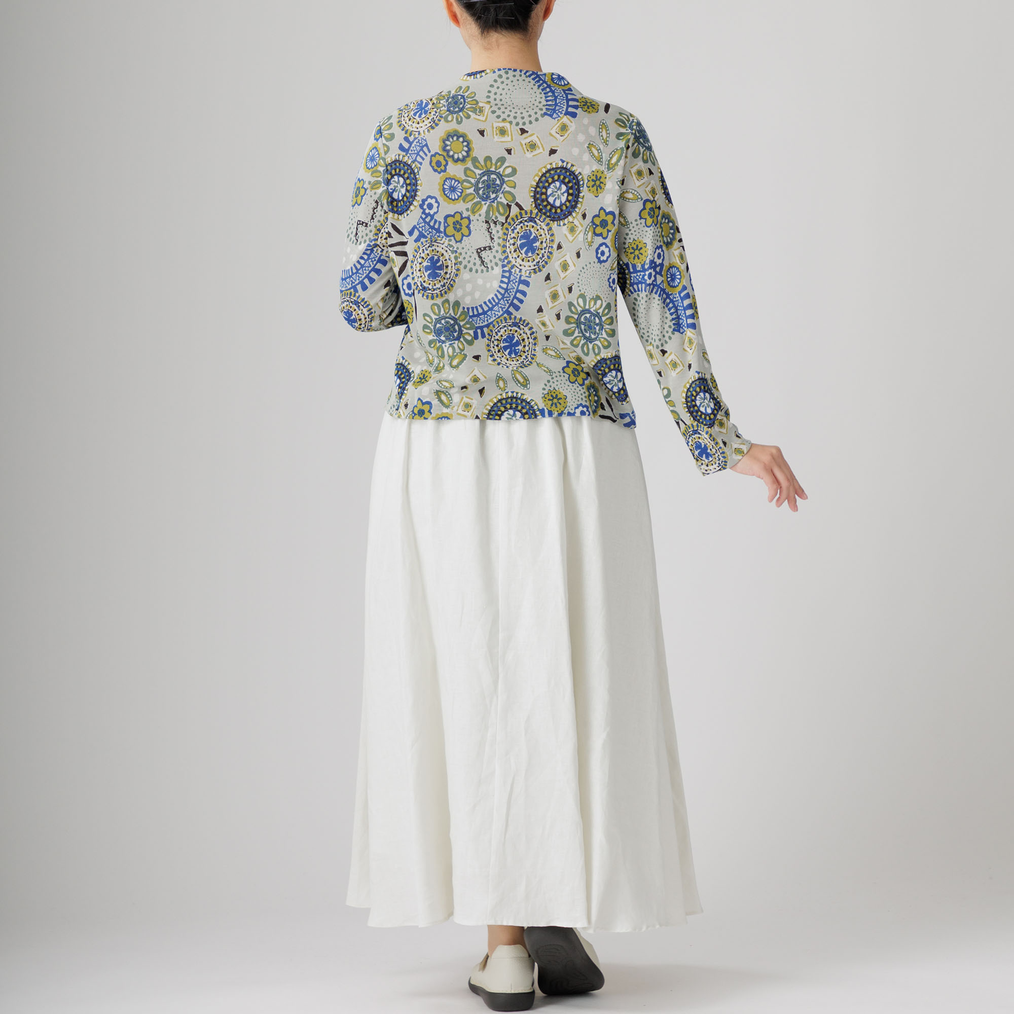 こちらは春の装いに最適な優しい色彩が楽しめる手捺染プリントカーディガンで、