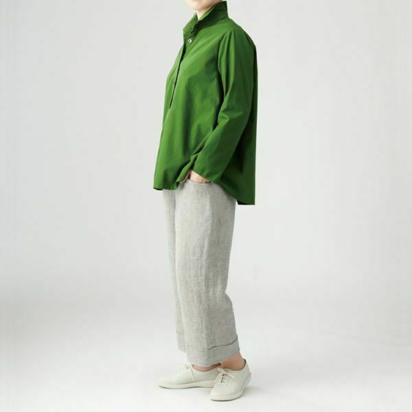 モスグリーン、パープル、イエローのブラウスモデル着用のパンツはコチラ