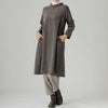 動きに合わせて生まれる自然なドレープと個性的なスタンドカラーがセンスを放ち、