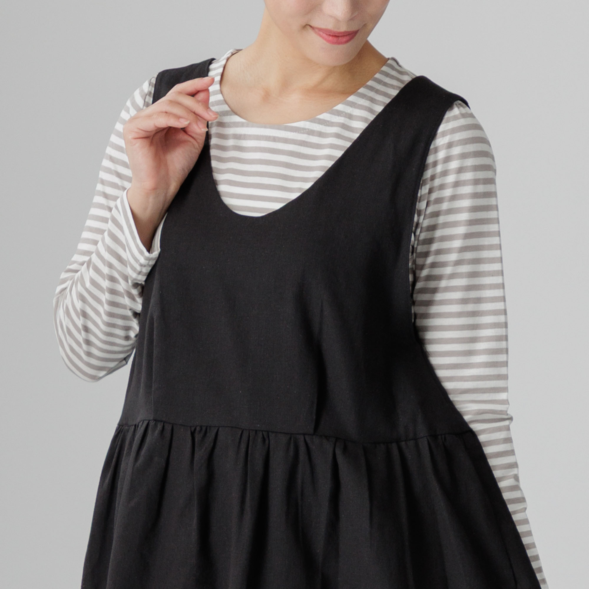 ボーダーインナーとの組み合わせがよりナチュラルな着姿を作ります。