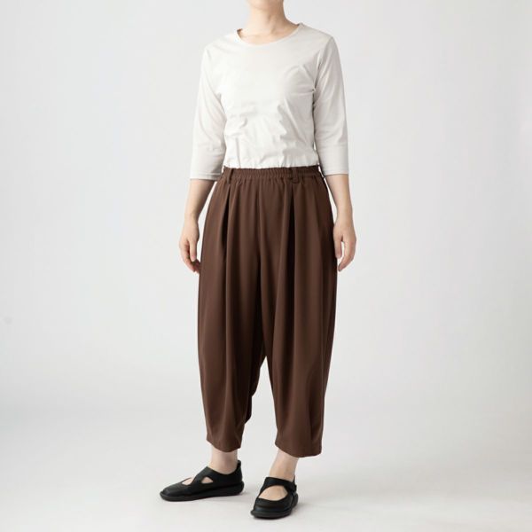優雅なドレープが個性を放つ、バルーンシルエットのパンツ。