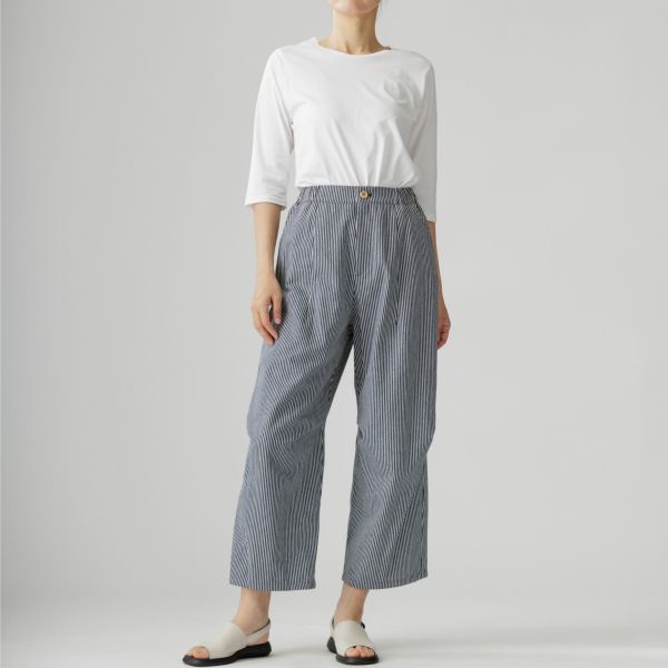 縦のストライプが脚をすっきりと長く見せてくれるのもおすすめのポイントです。