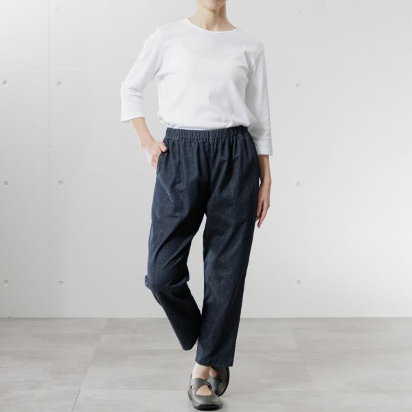 後ろポケットがスタイリッシュなソフトデニムの新作パンツ。