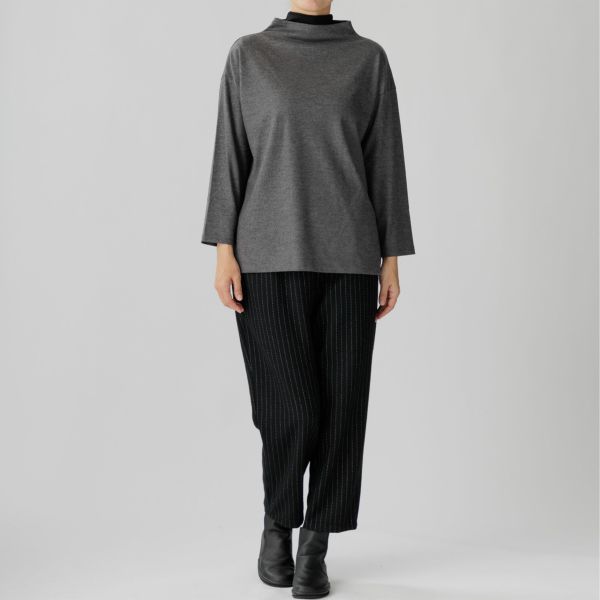 こちらのプルオーバーは、個性的な着姿を作るボトルネックや