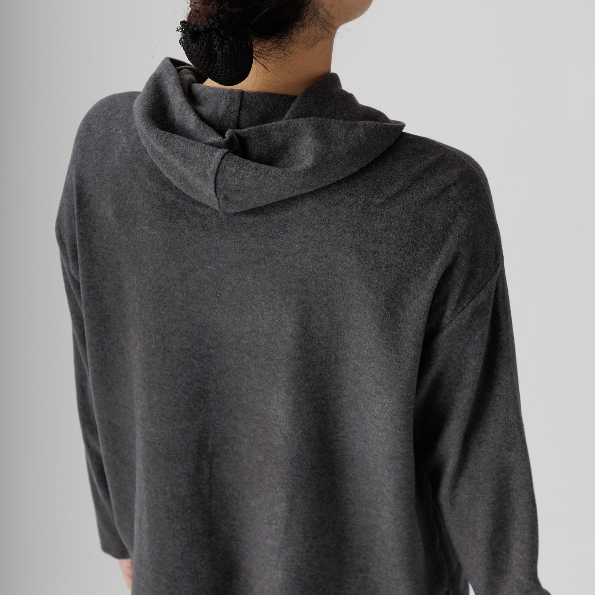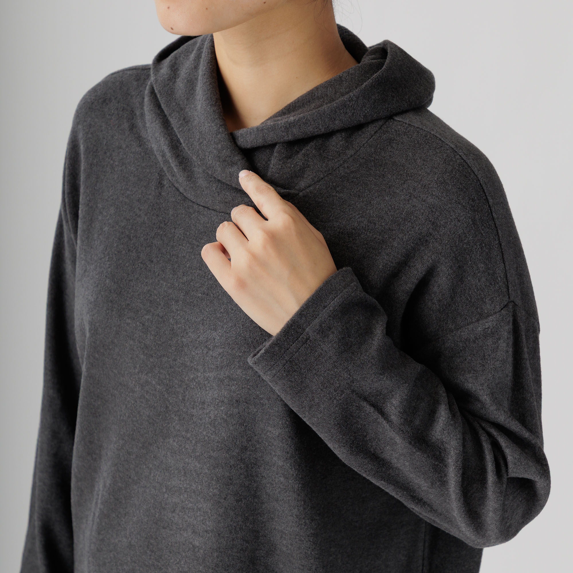 前襟がクロスした個性的なフードのデザインが存在感を放ち、