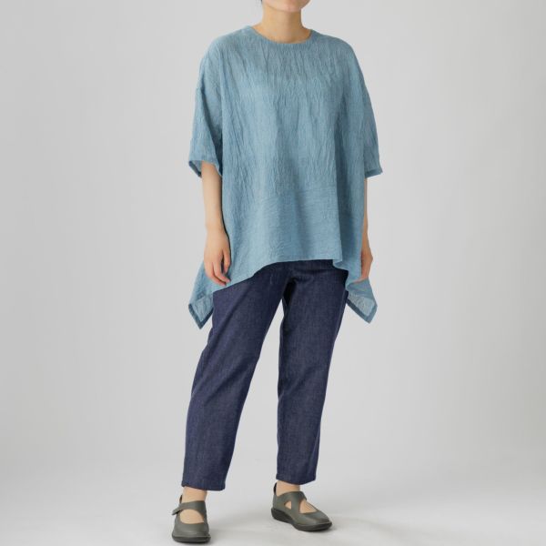 細やかなストライプ地の綿麻素材にシワ感を加えた