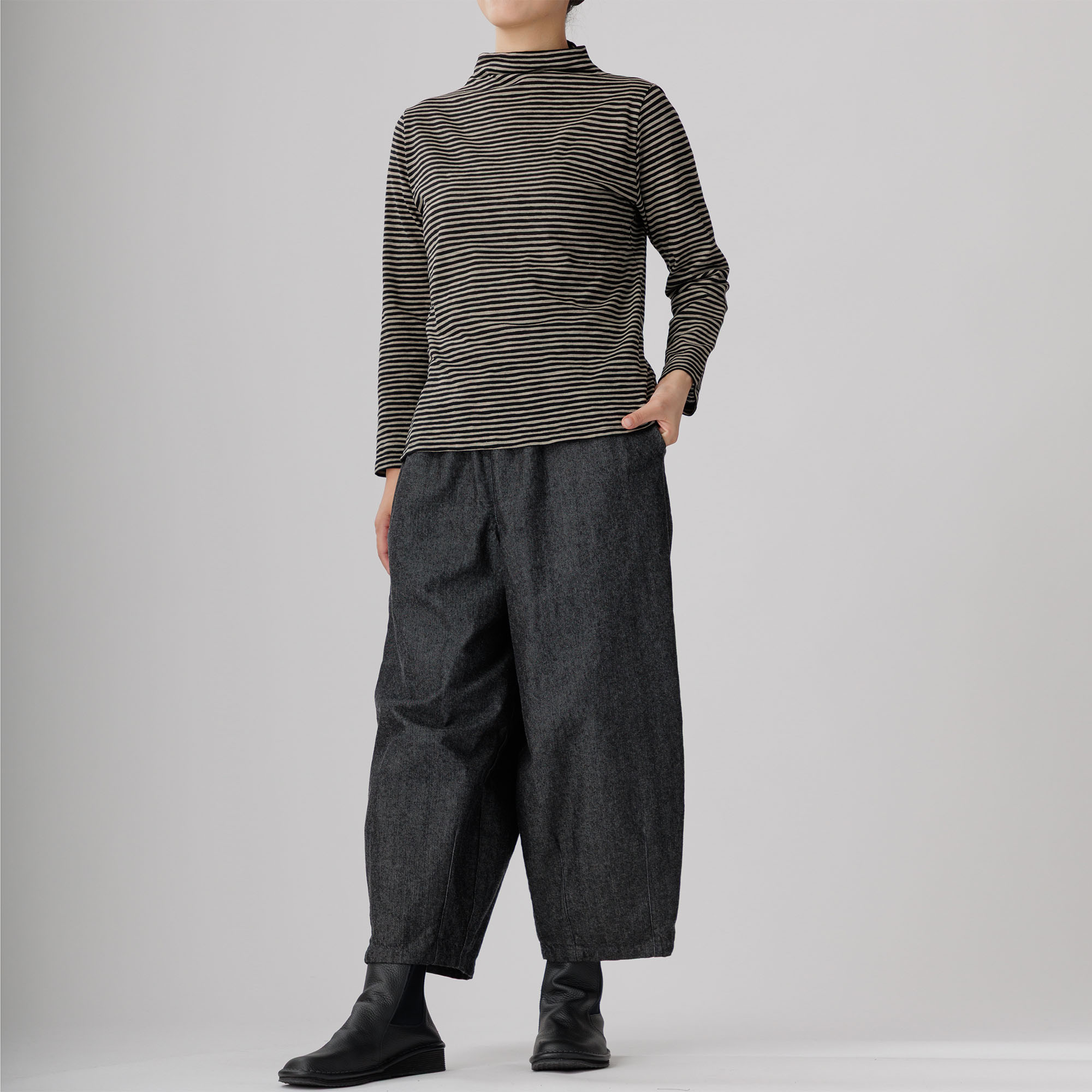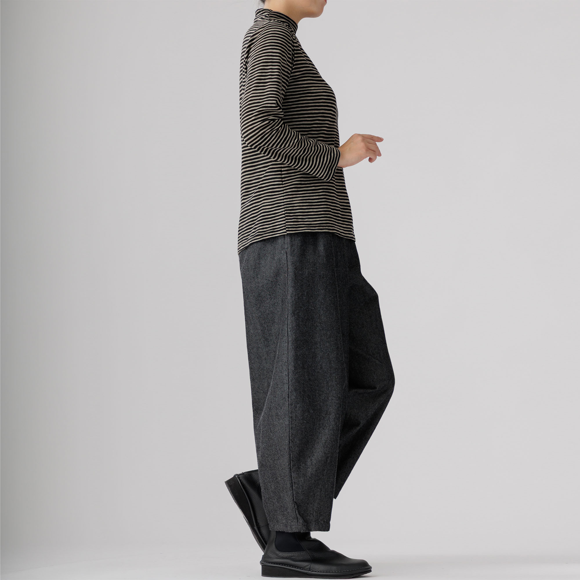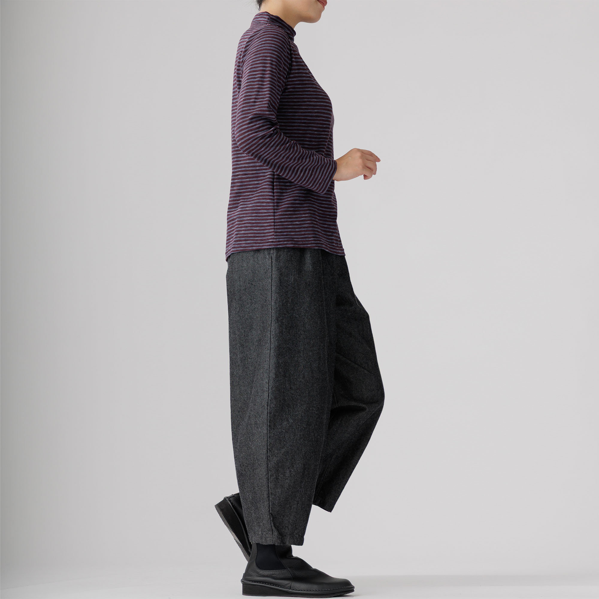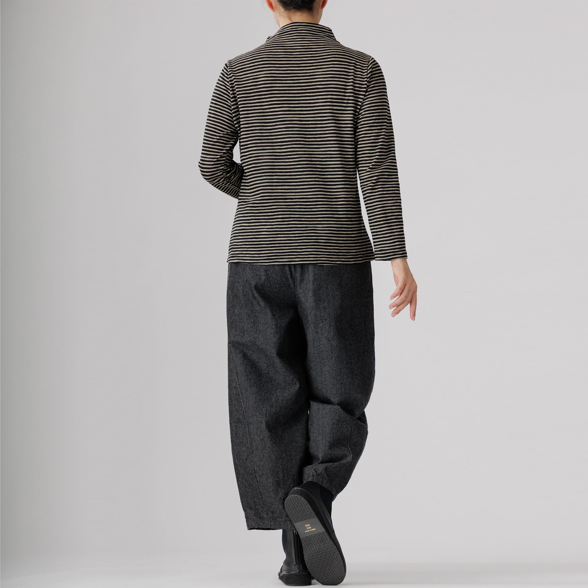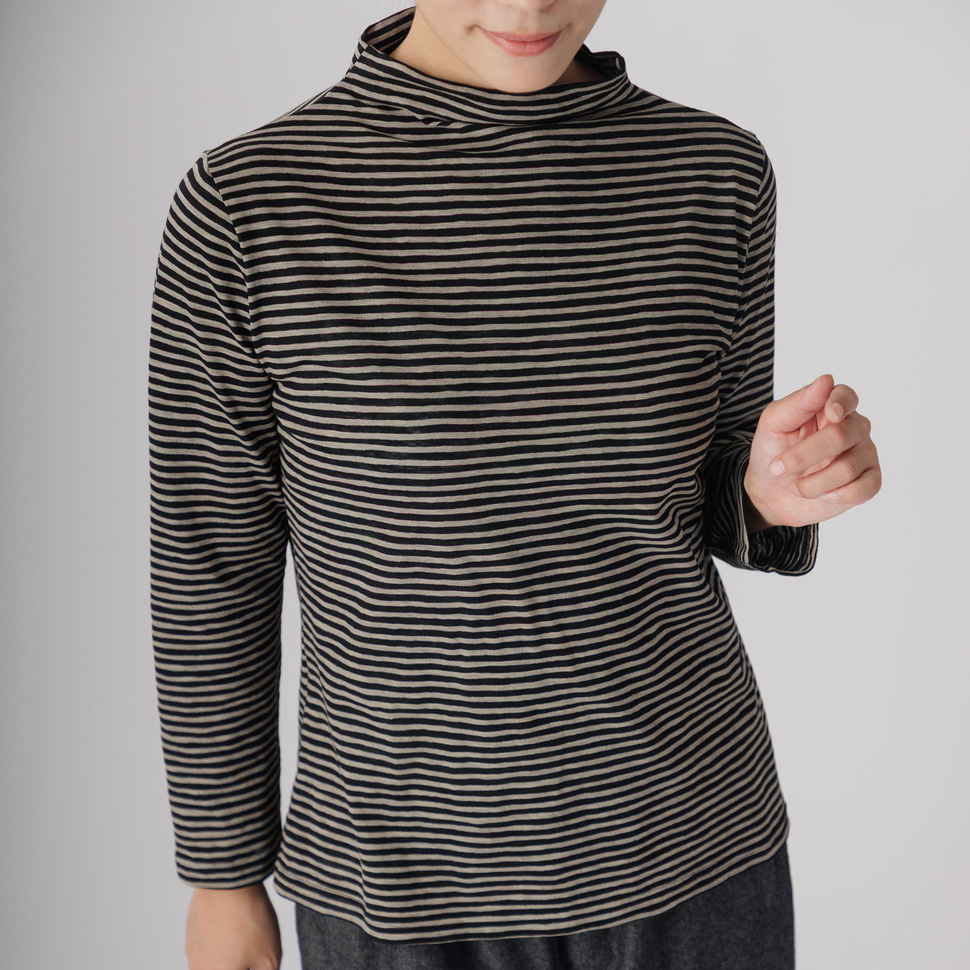 ナチュラルテイストあふれる杢調のストライプが味わい深く、