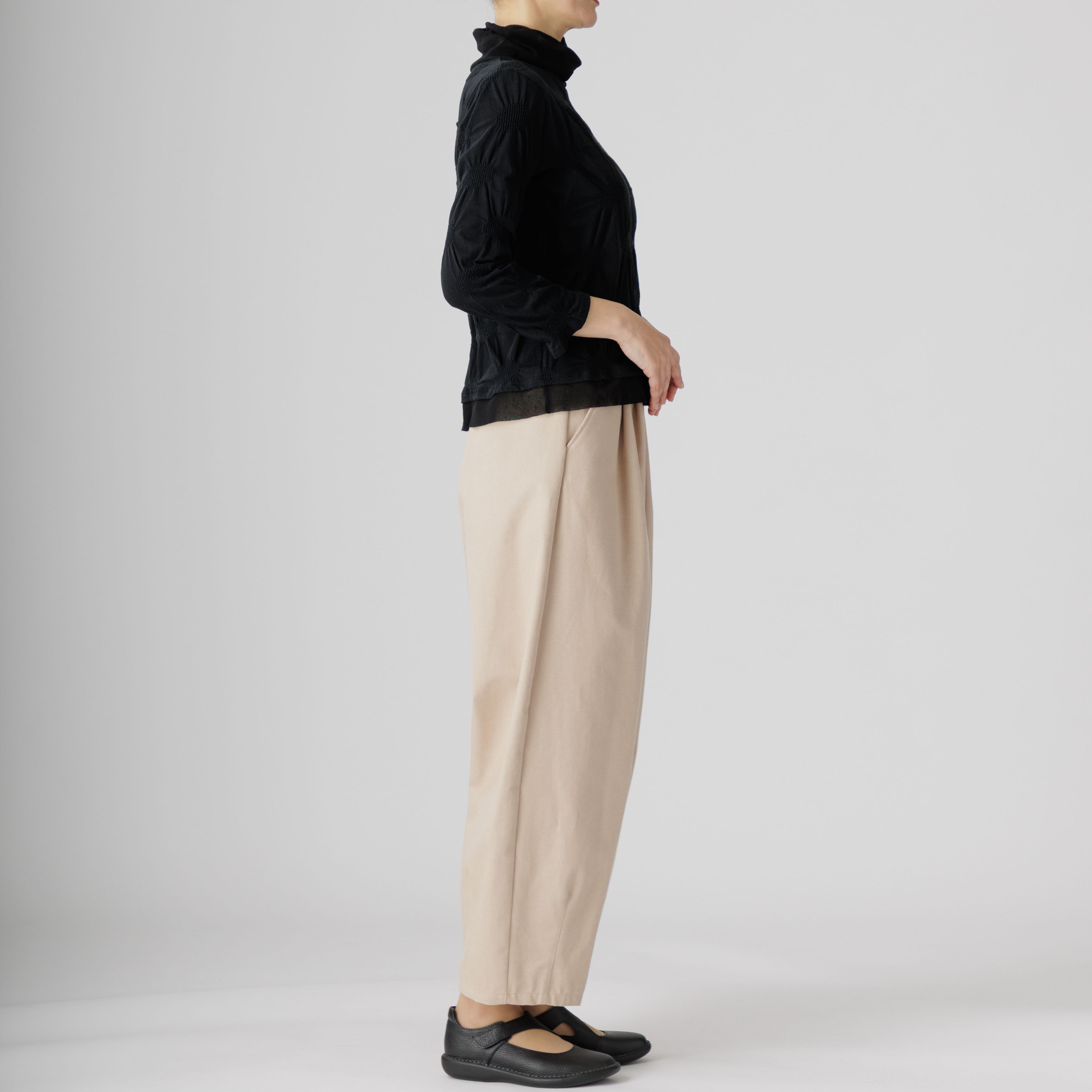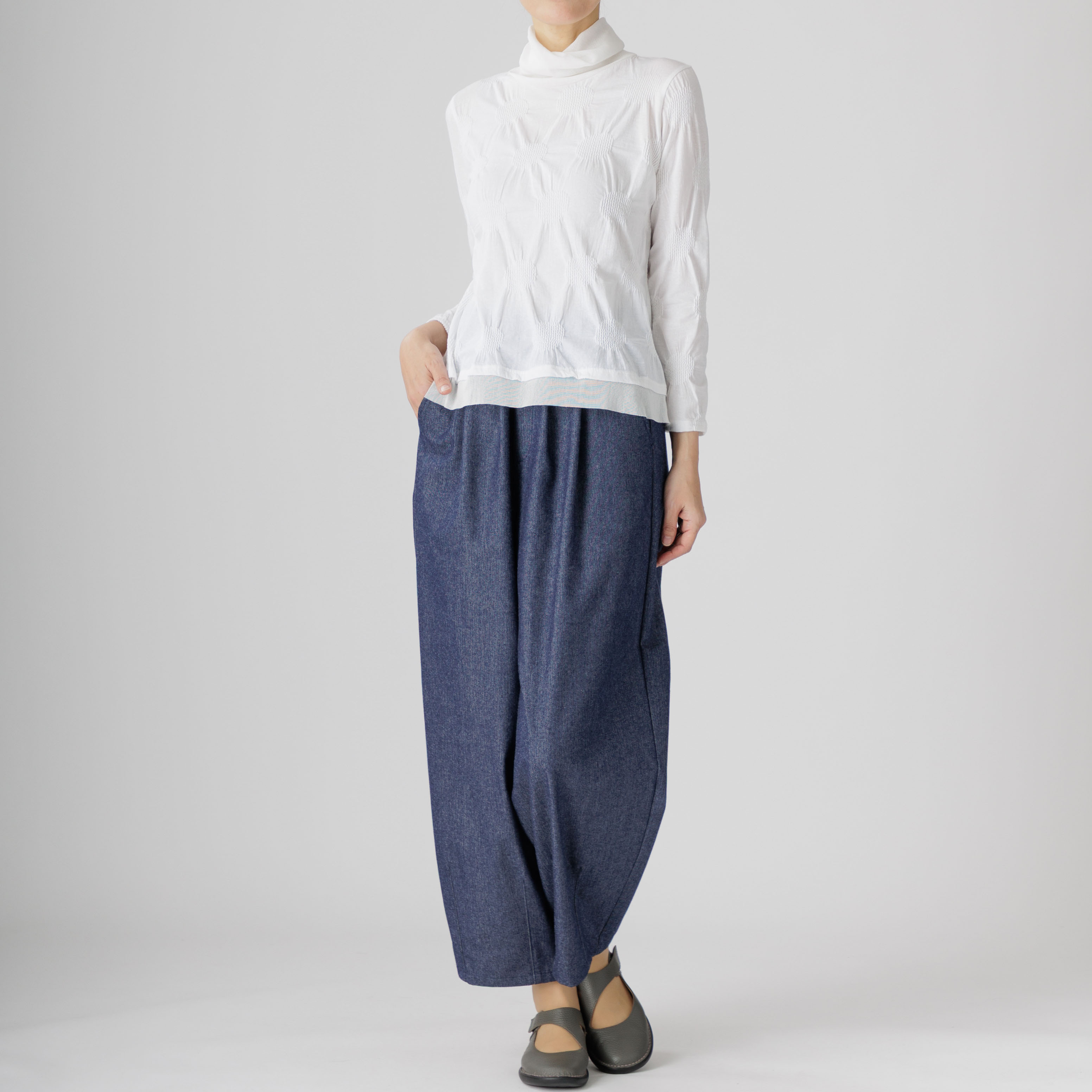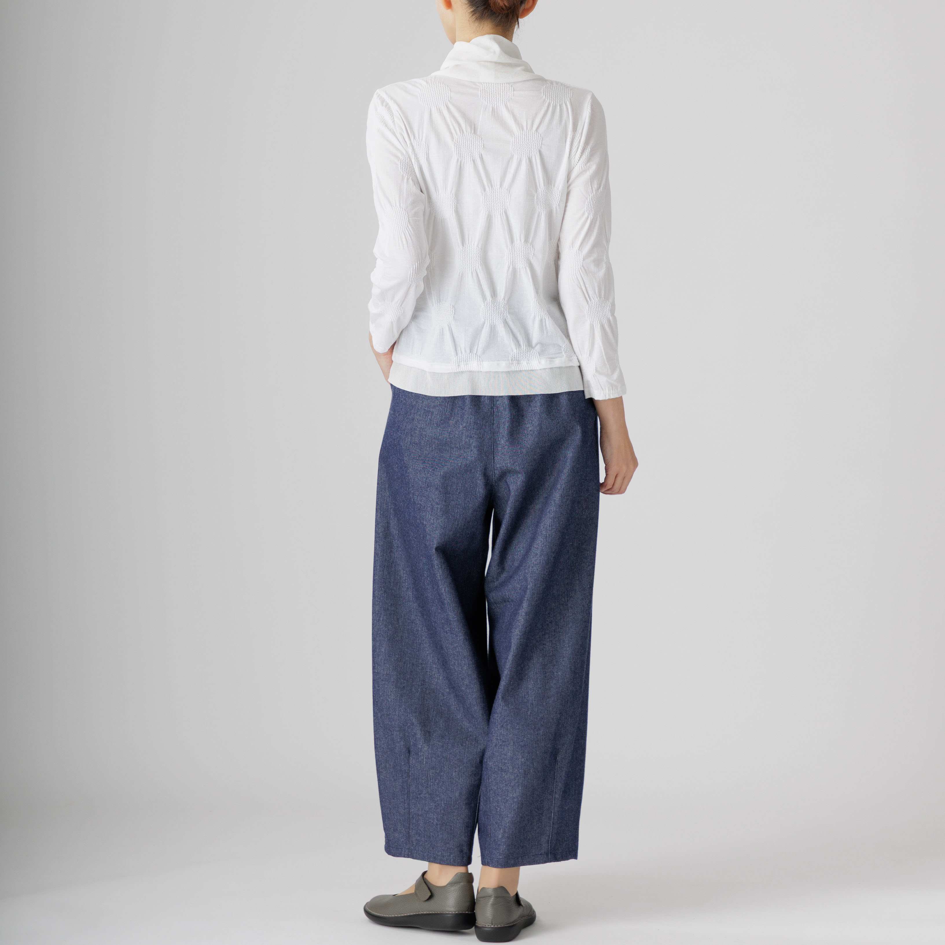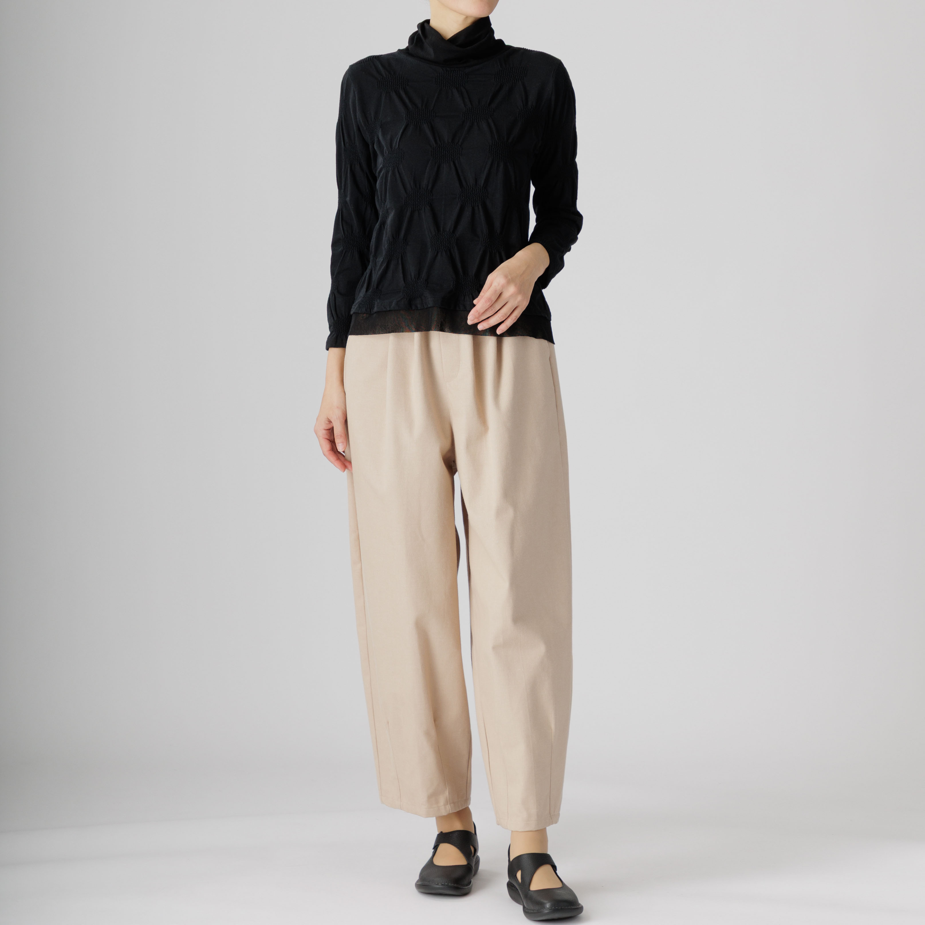 シャーリングで生み出した格子状に繋がった水玉模様が個性を放つ、
