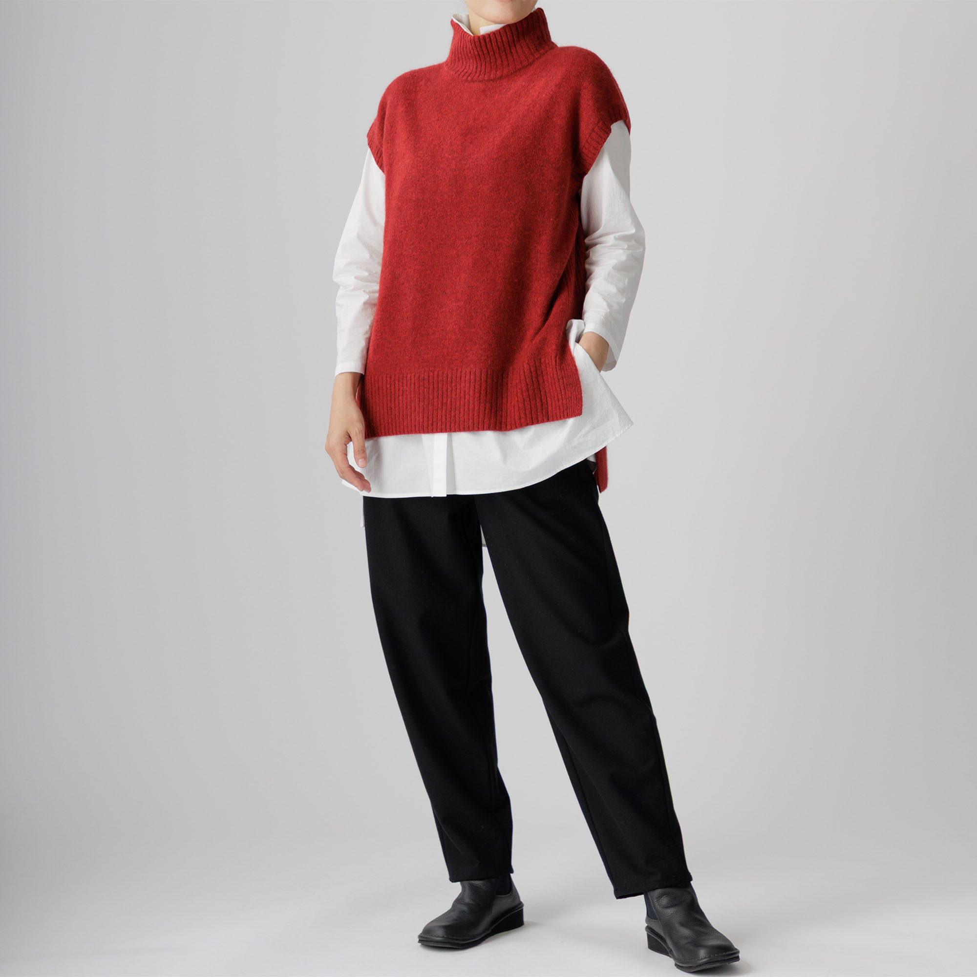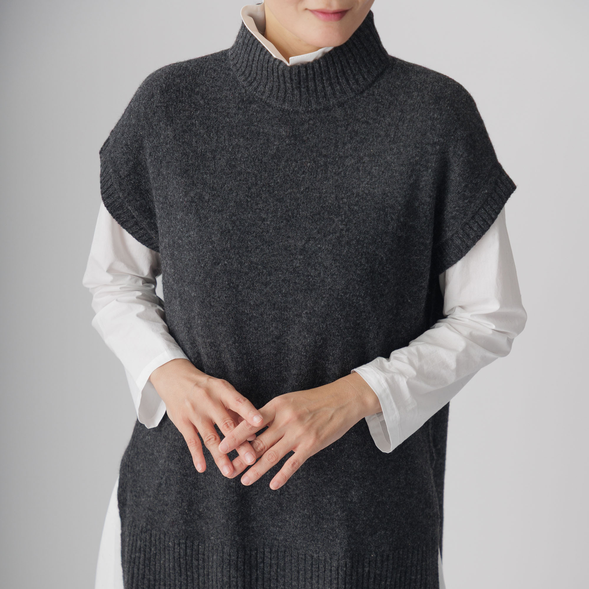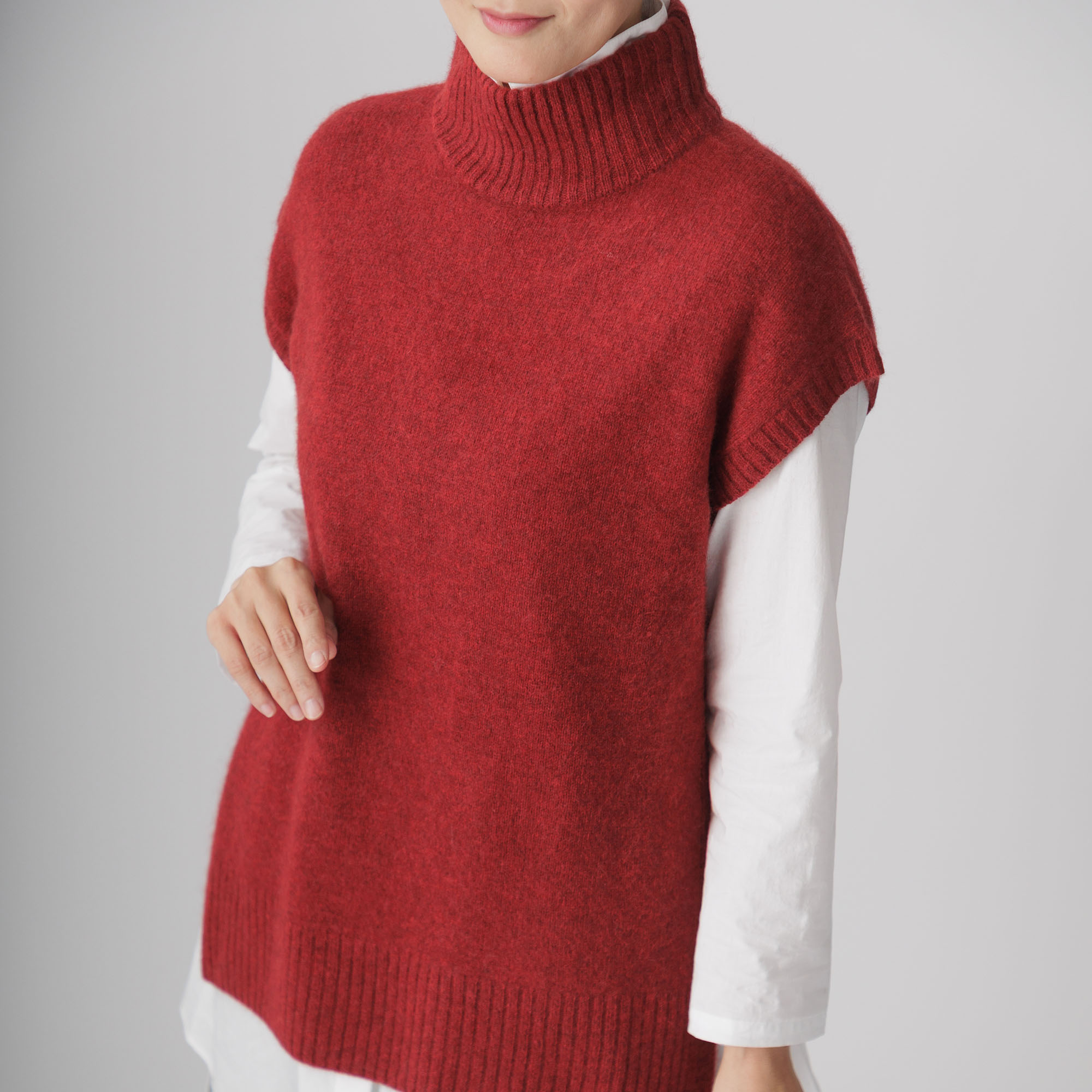 カシミヤと並ぶ高級素 材として人気のヤク100%チュニックベストがこちら。
