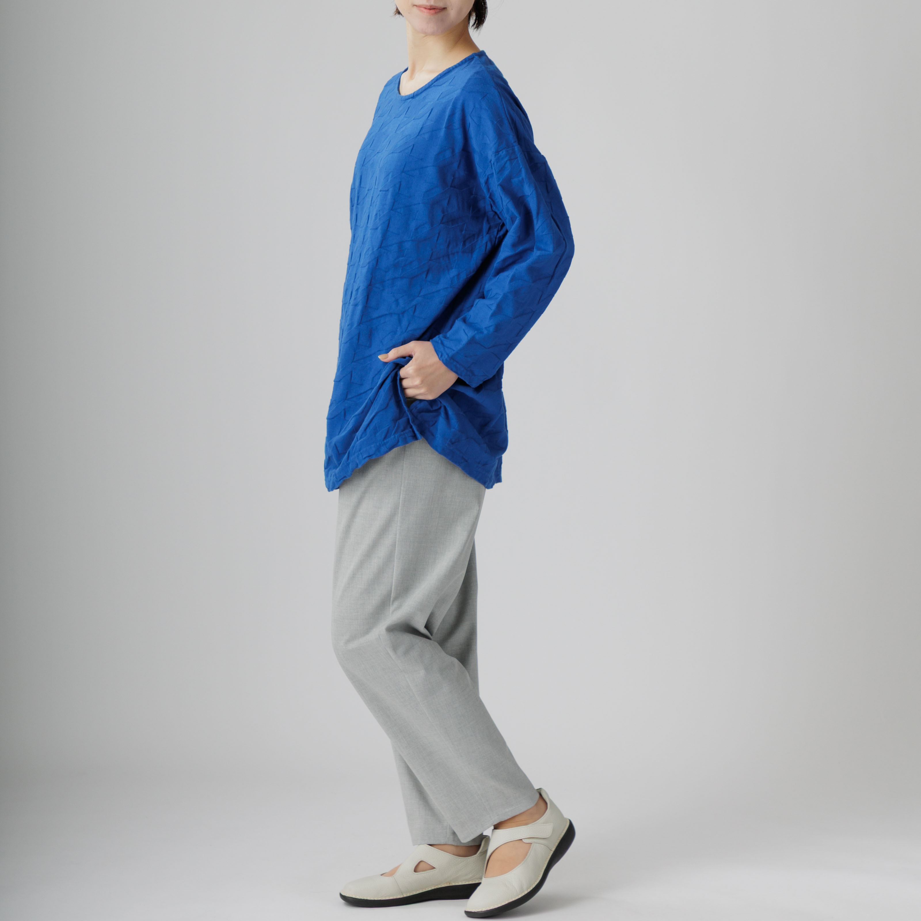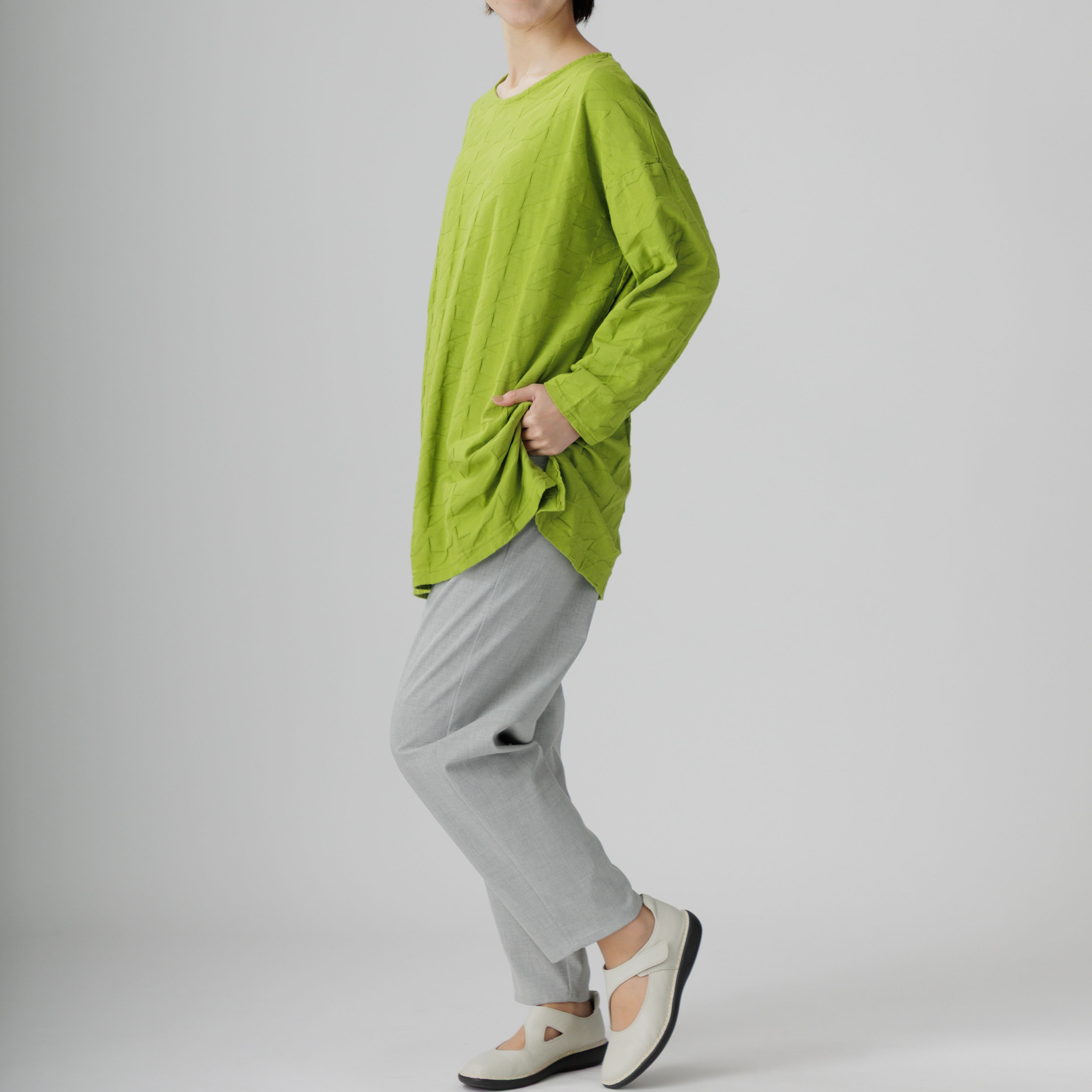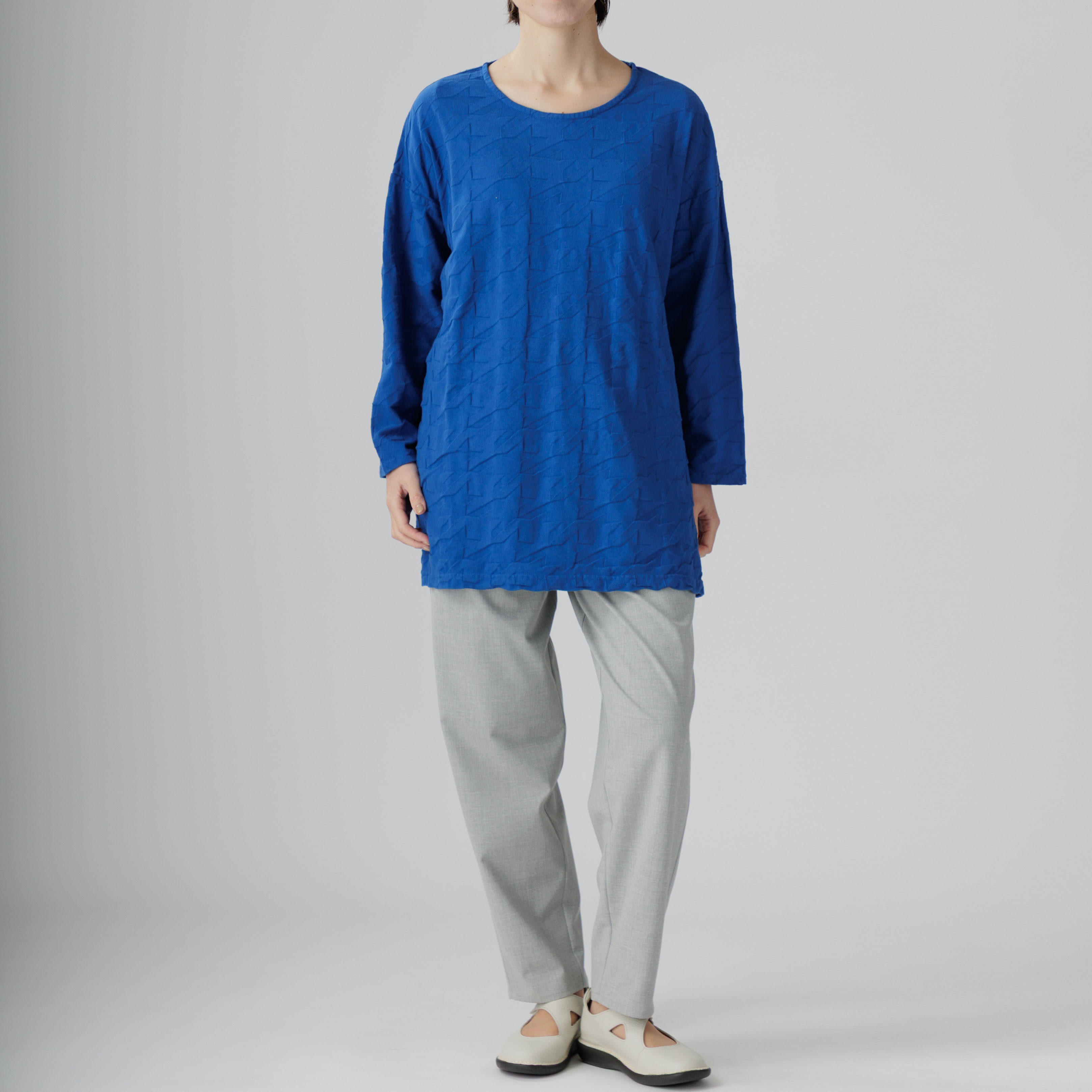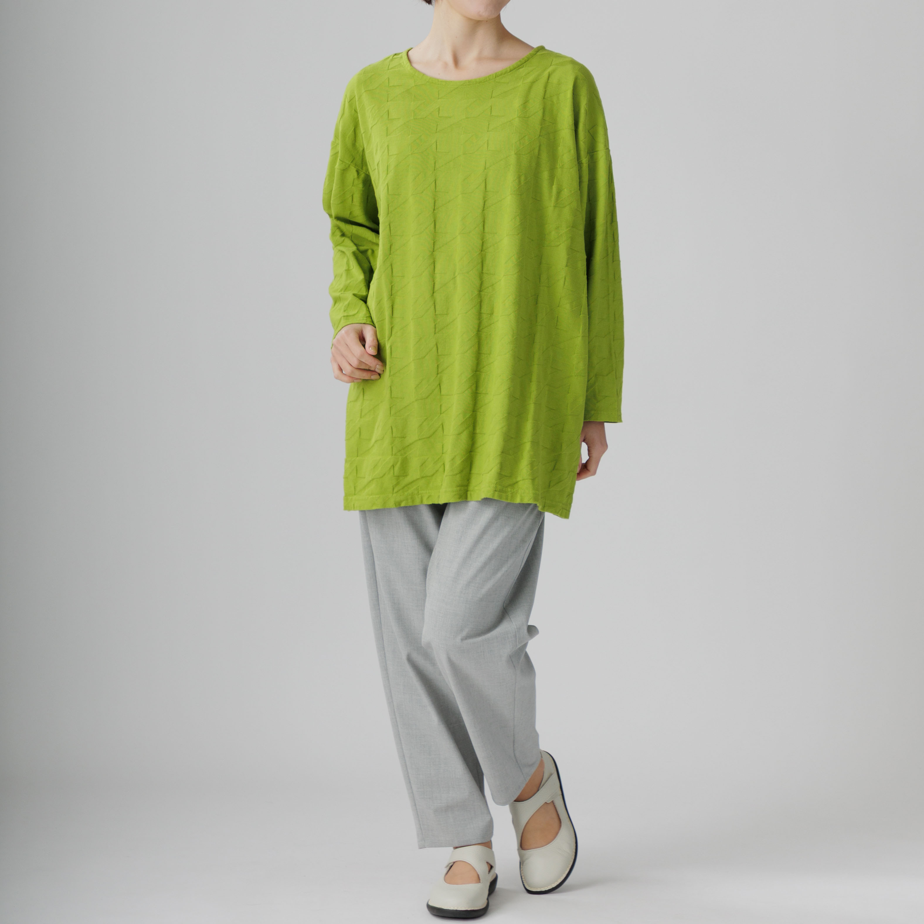 ゆったりとしたラインと綿100%の爽やかな着心地が魅力。